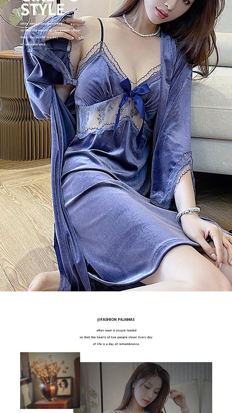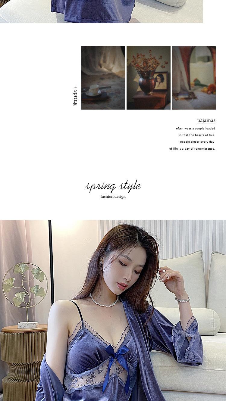 Pijama Otoño Terciopelo Dorado Sensación de Alta Gama Nuevo Sexy Camisón con Tirantes y Almohadilla en el Pecho Camisón Puro para traje