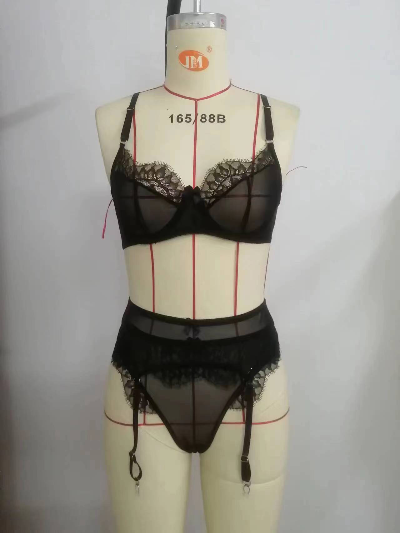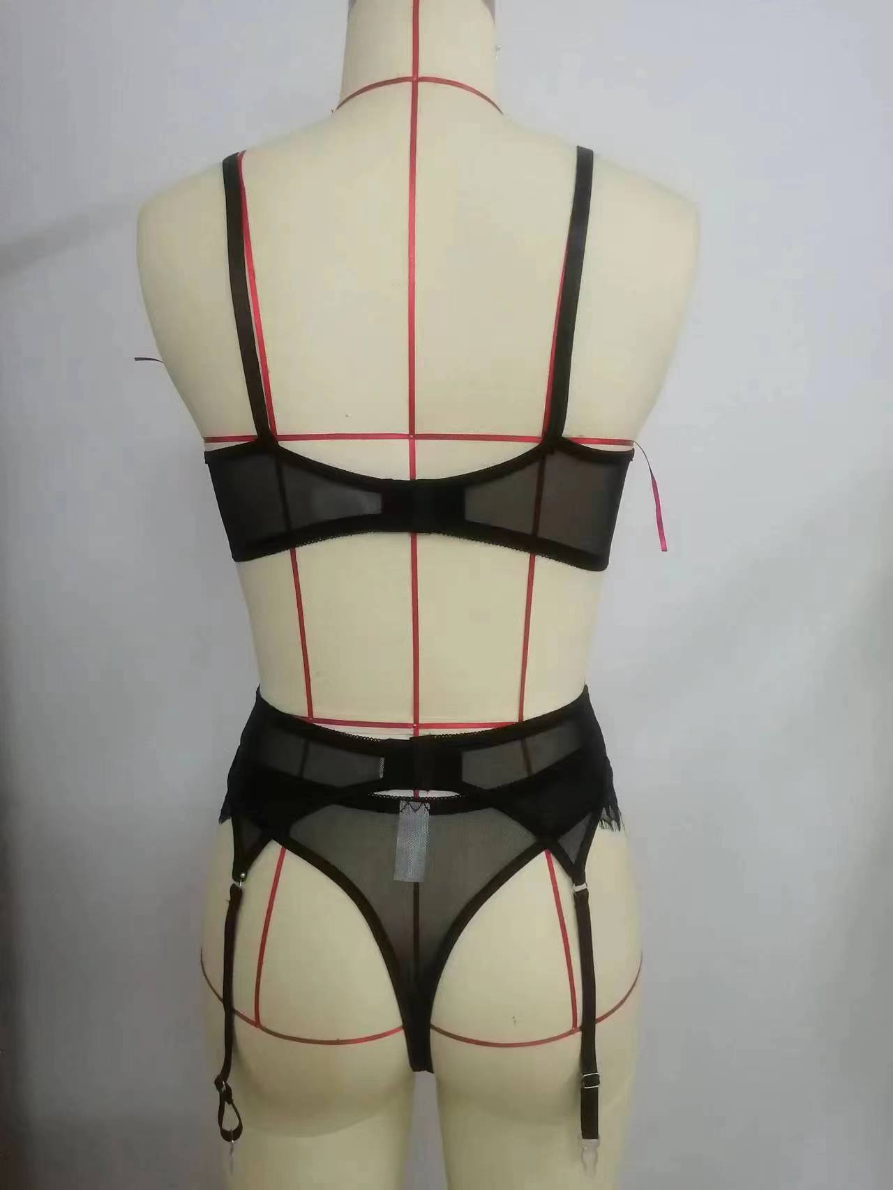 Lencería Liga europea y americana encaje mujer sexy Lencería traje dividido moldeador de cuerpo de tres piezas 1005