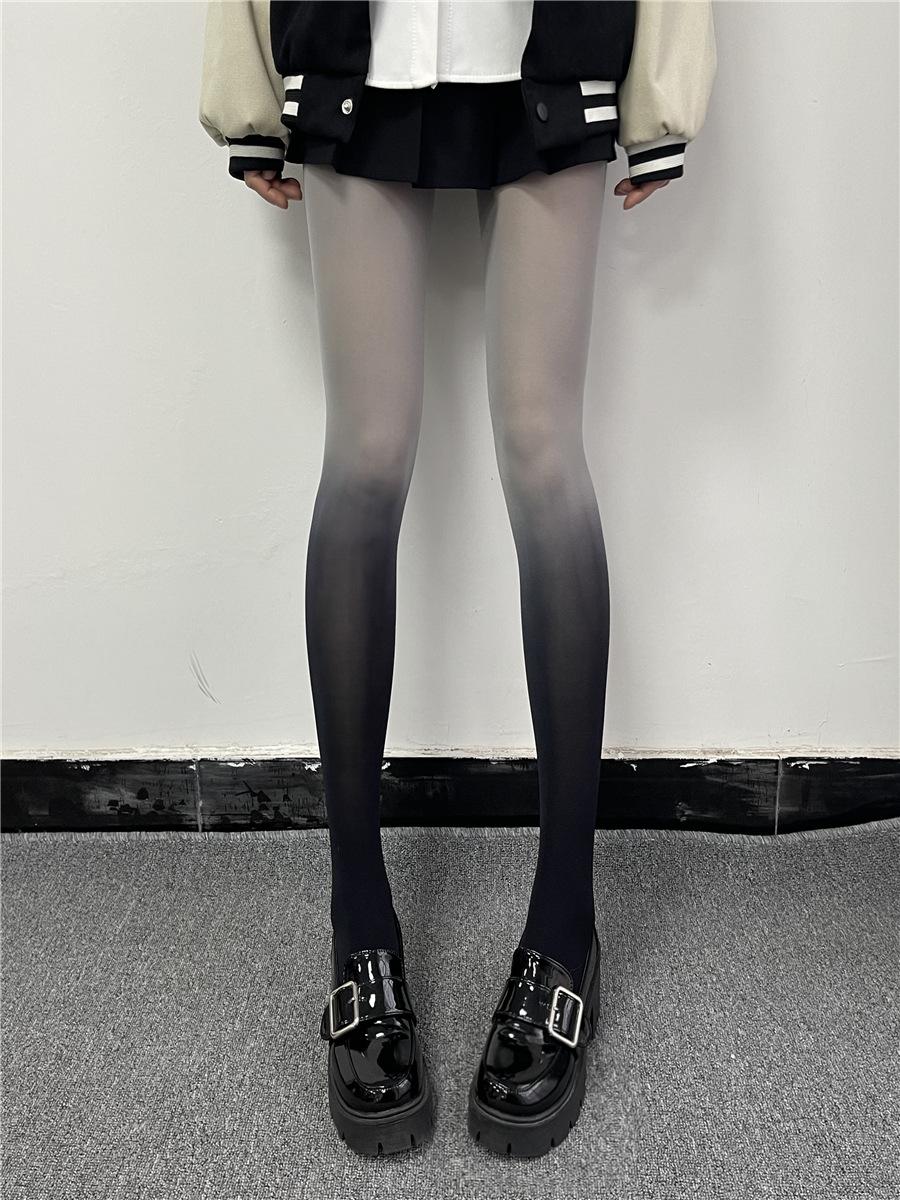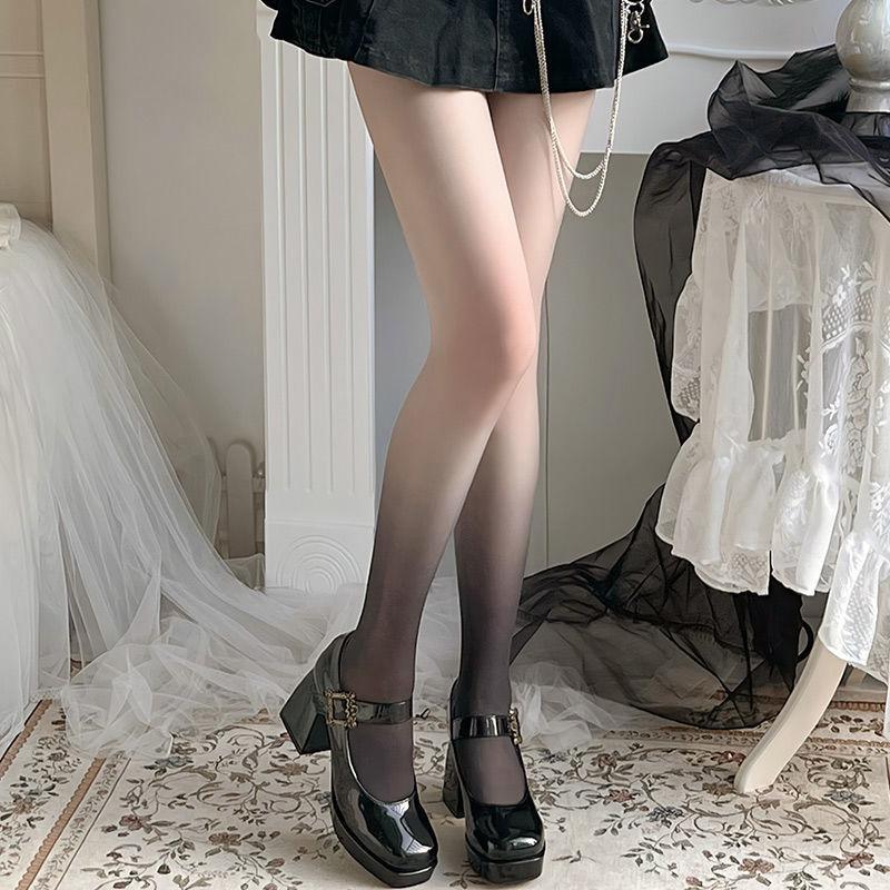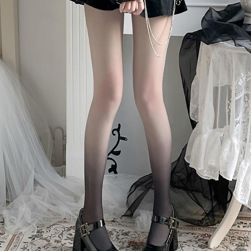 Medias de seda degradadas para mujer, sexys, de seda negra, blanca pura, de verano, ultrafinas, antigancho, de seda gris.