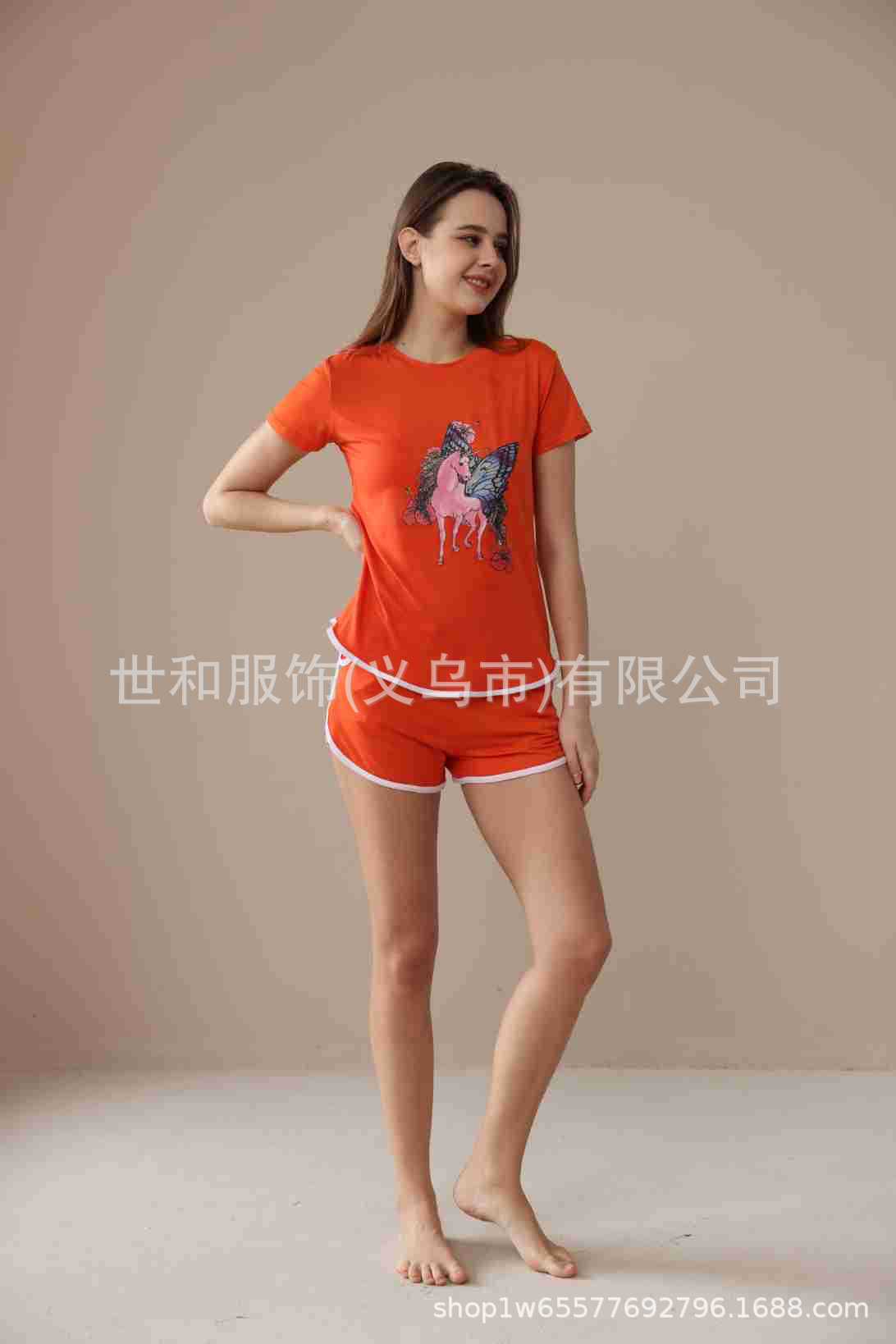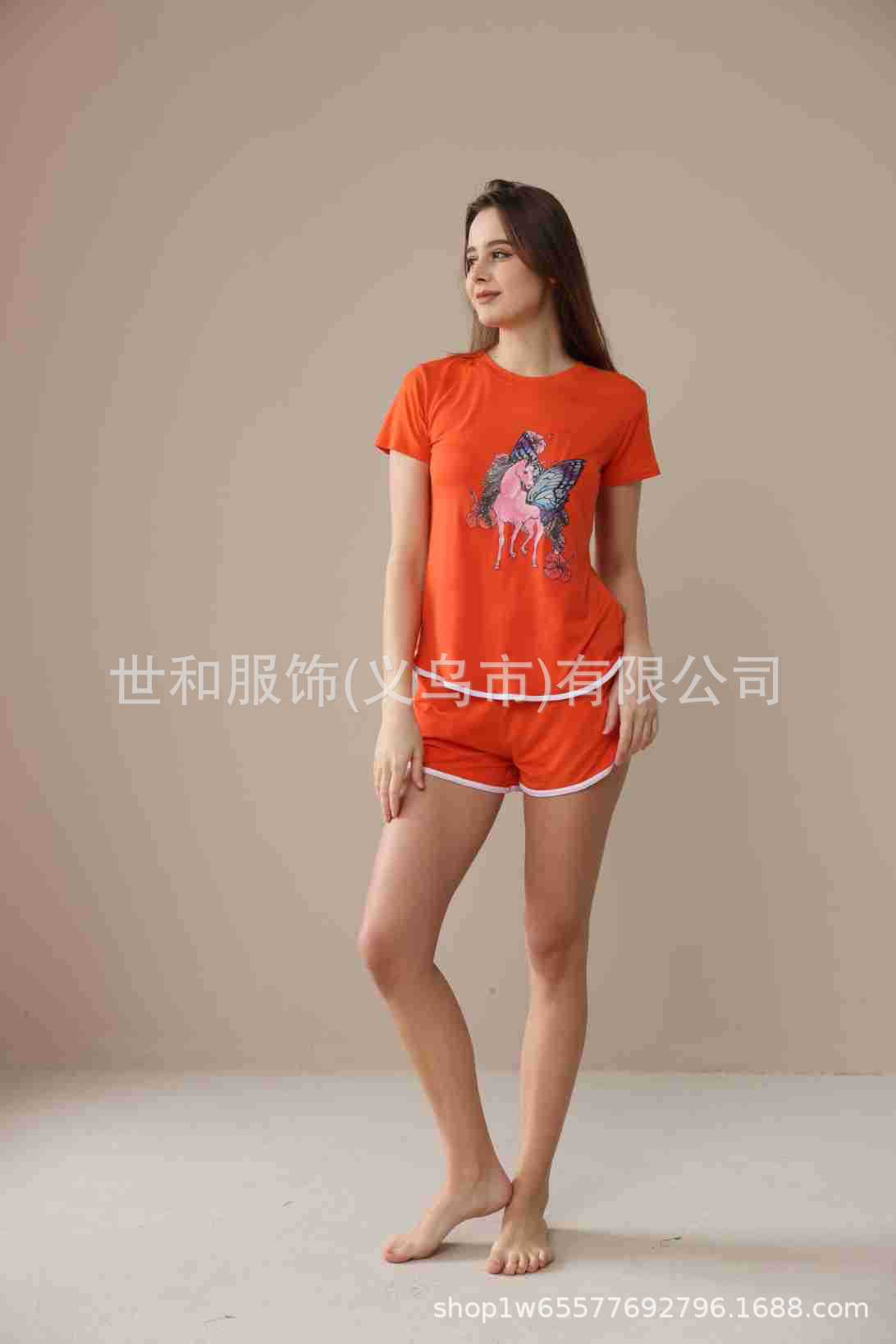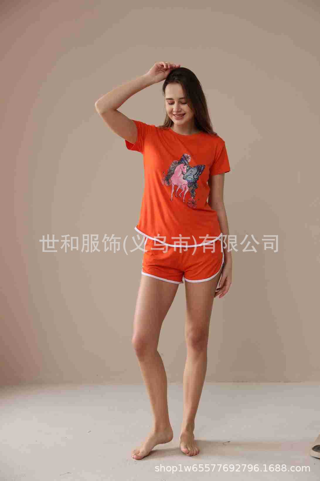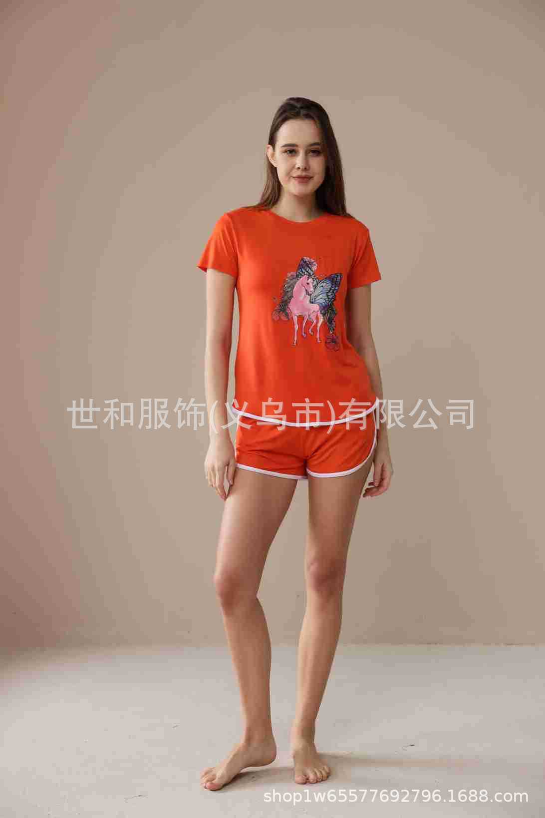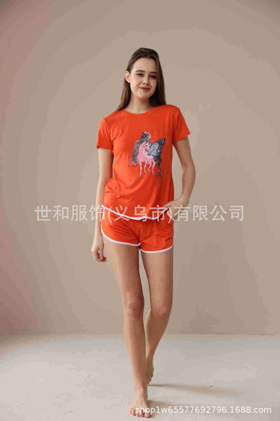 2026 Nuevo Comercio Exterior para Mujer Talla Grande Estampado Manga Corta Shorts Conjunto de Pijama con Bolsillos