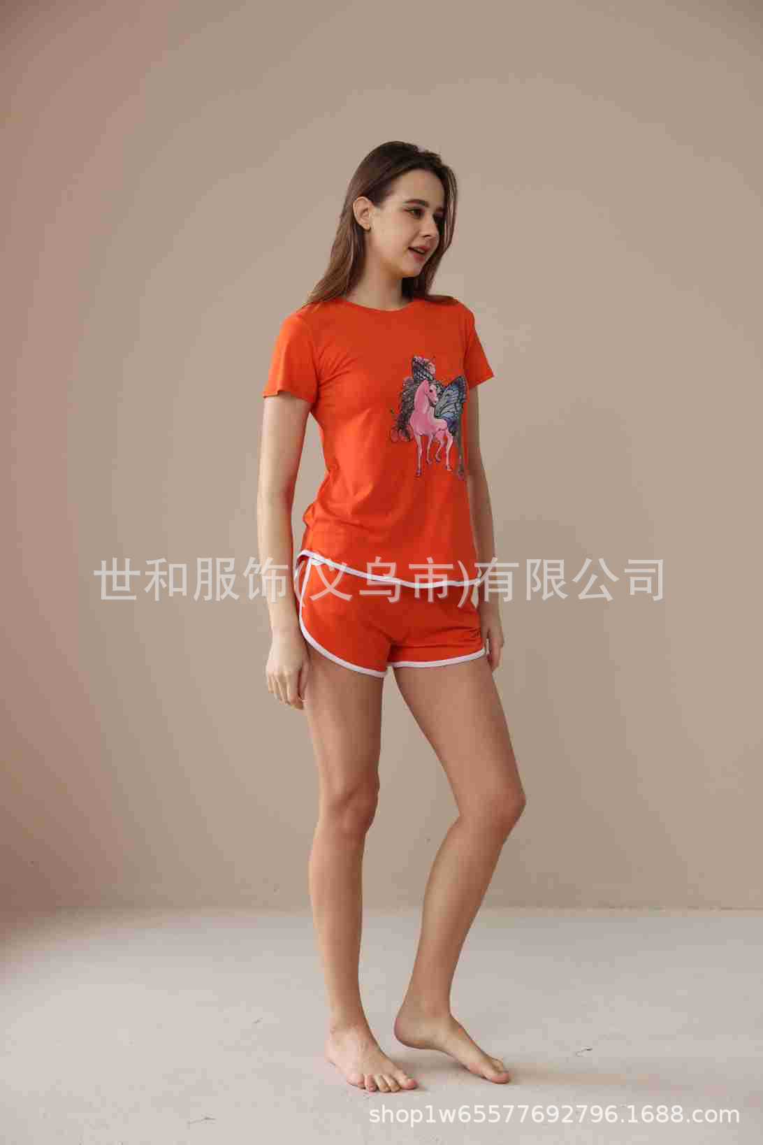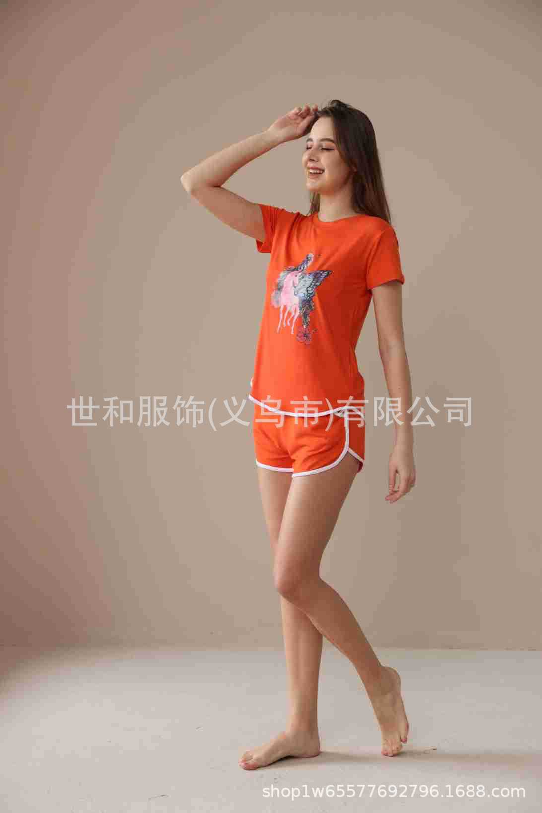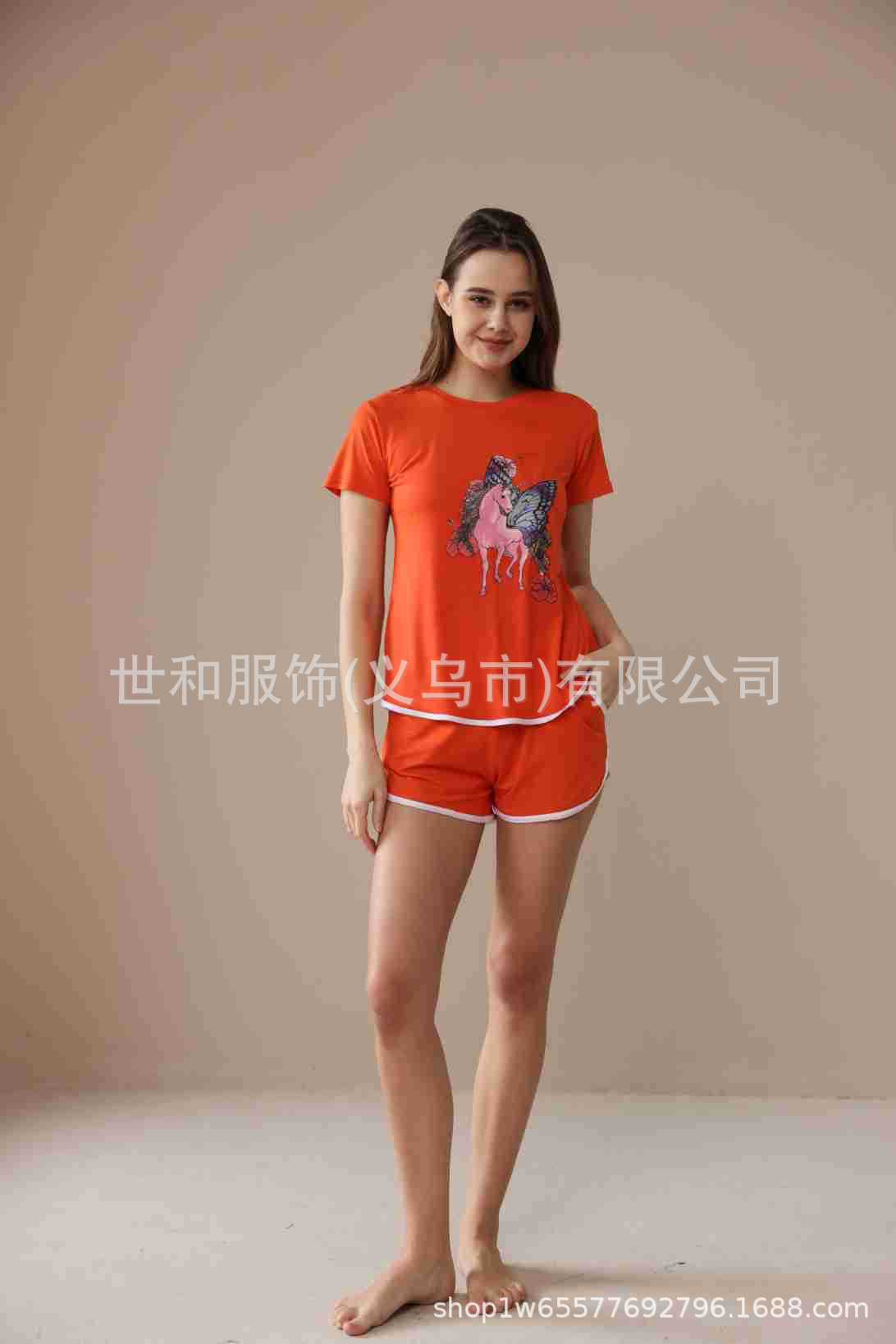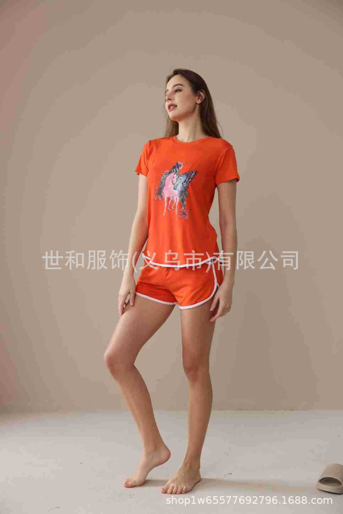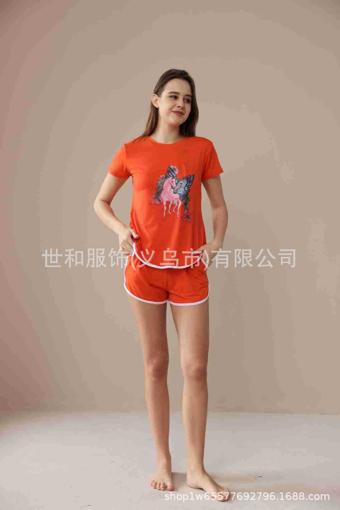2026 Nuevo Comercio Exterior para Mujer Talla Grande Estampado Manga Corta Shorts Conjunto de Pijama con Bolsillos
