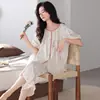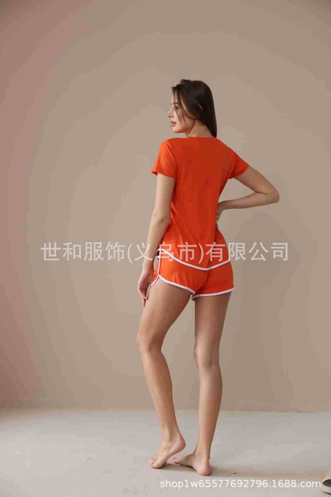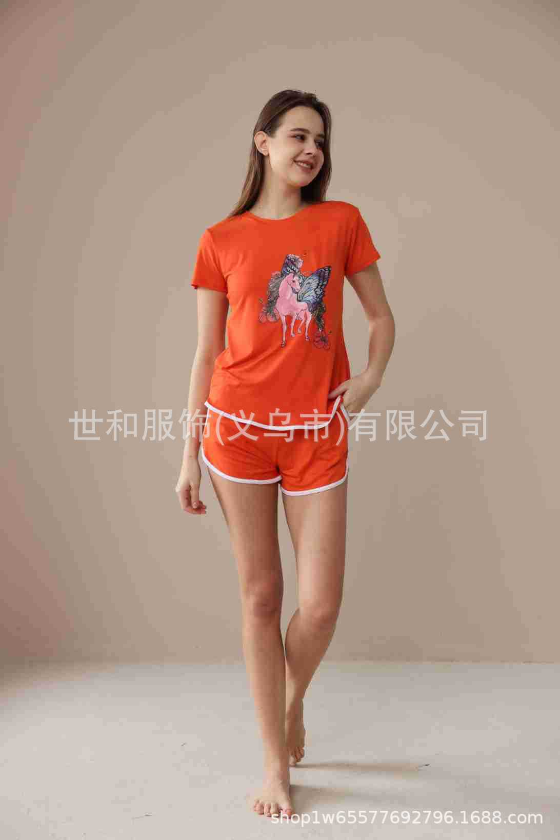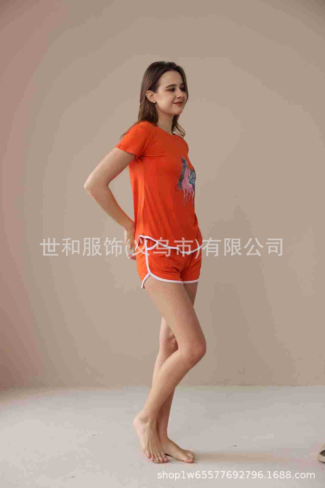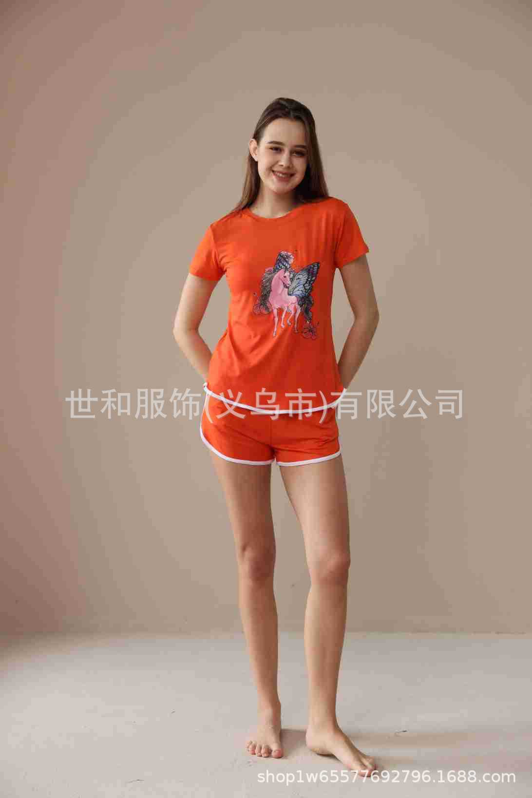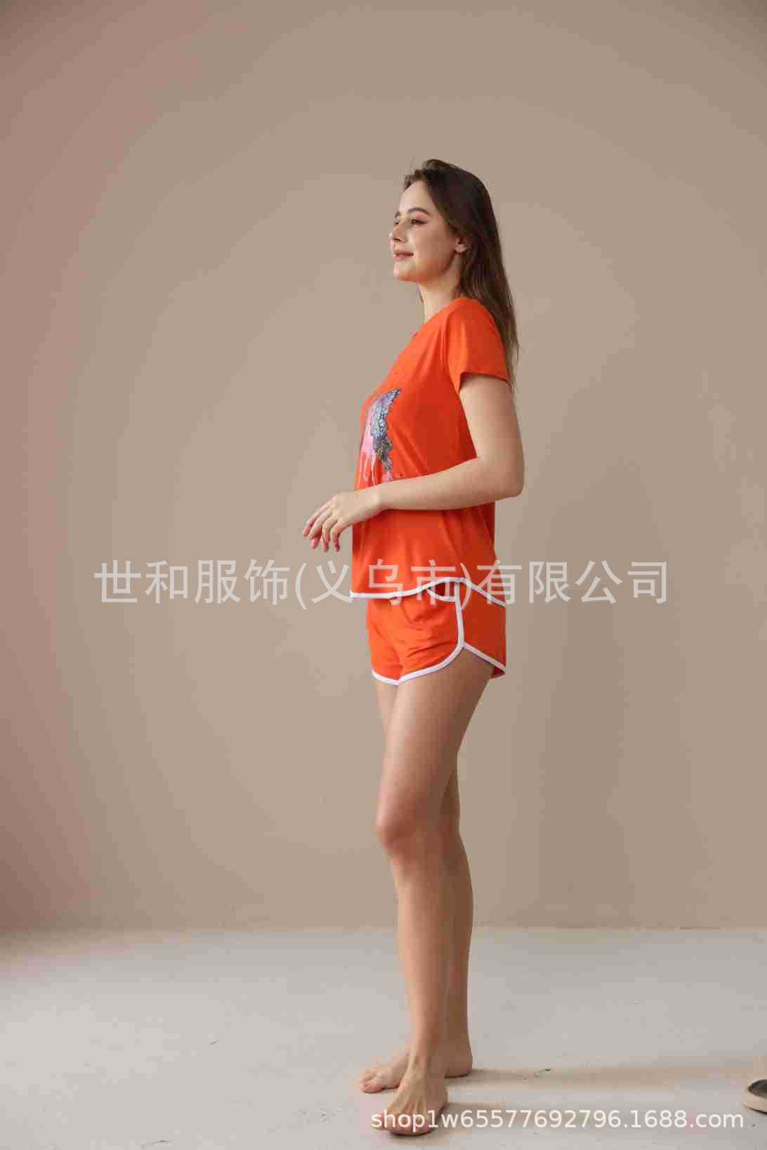 2026 Nuevo Comercio Exterior para Mujer Talla Grande Estampado Manga Corta Shorts Conjunto de Pijama con Bolsillos