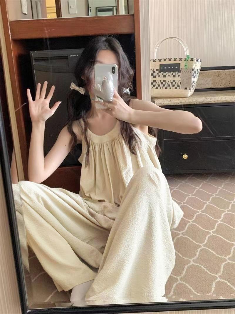 Pijama cárdigan de mujer 2024 nuevo verano lindo dos piezas pantalones cortos simple temporada de verano ropa de casa traje de mujer