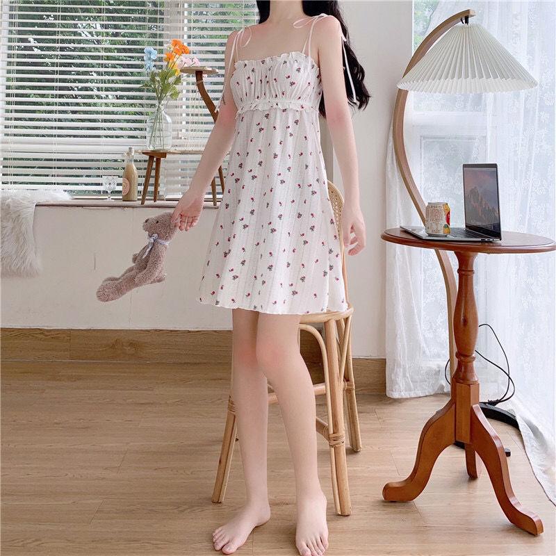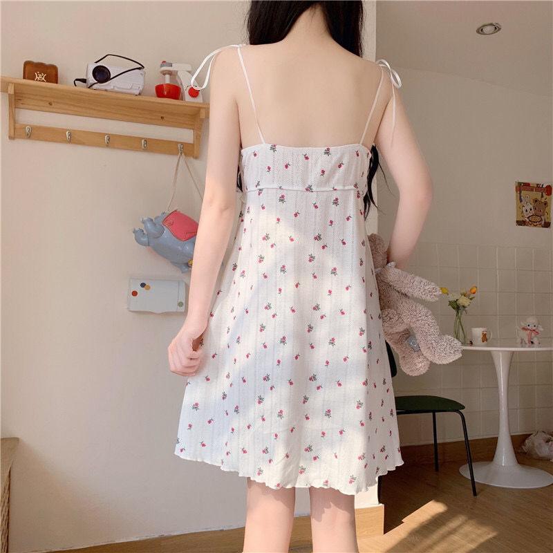 Camisón Floral para Mujer 2022 Verano Nuevo Estilo Coreano Casual Lindo Japonés Vestido Línea A Ropa para el Hogar Camisón de Tirantes