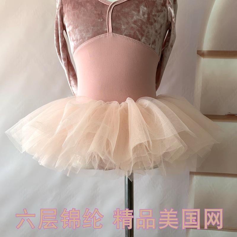 Falda de baile para niños, falda corta de seis capas, de nailon, de malla americana, tacto muy agradable, falda de ballet para niña