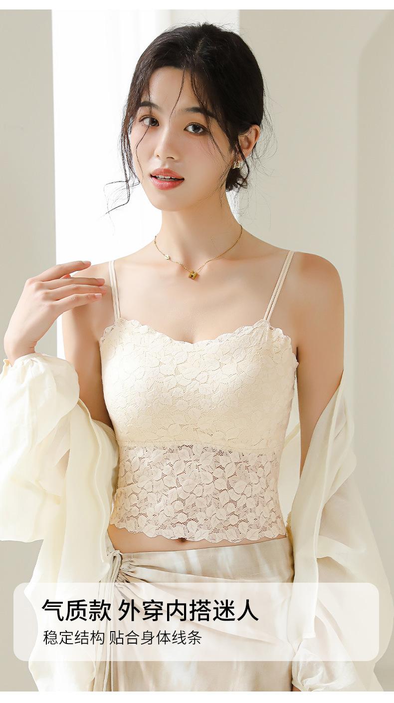 Ropa interior de encaje completo para el vientre, largo medio, espalda pura hermosa, para mujer, con copa desmontable, sexy, combinable con todo, tirante fino, chaleco para mujer