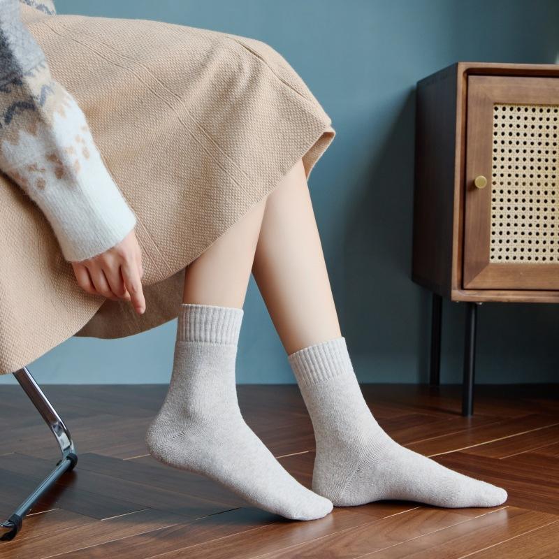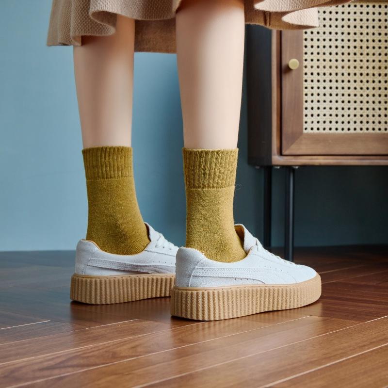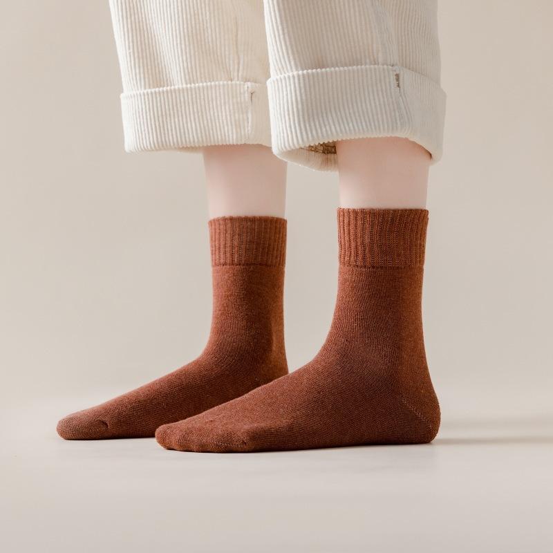 Calcetines gruesos de invierno de cintura alta para dama, de terciopelo cálido, felpa negra para el suelo
