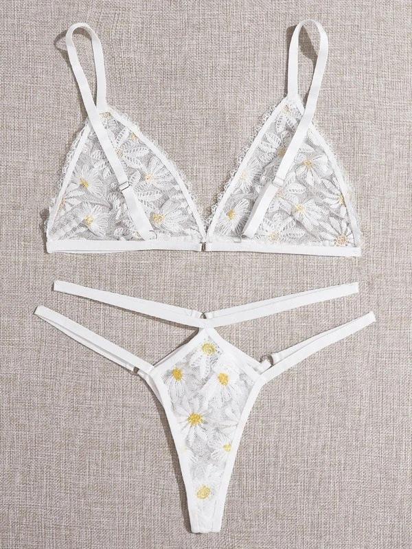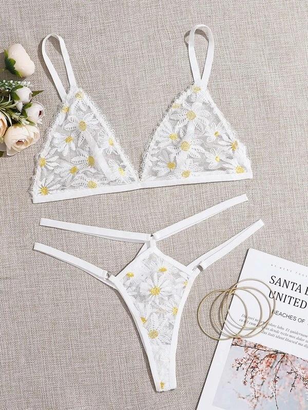 Suministro transfronterizo de Europa y Estados Unidos, comercio exterior, ropa interior sexy, conjunto de ropa interior sexy con estampado de tres puntos huecos para mujer