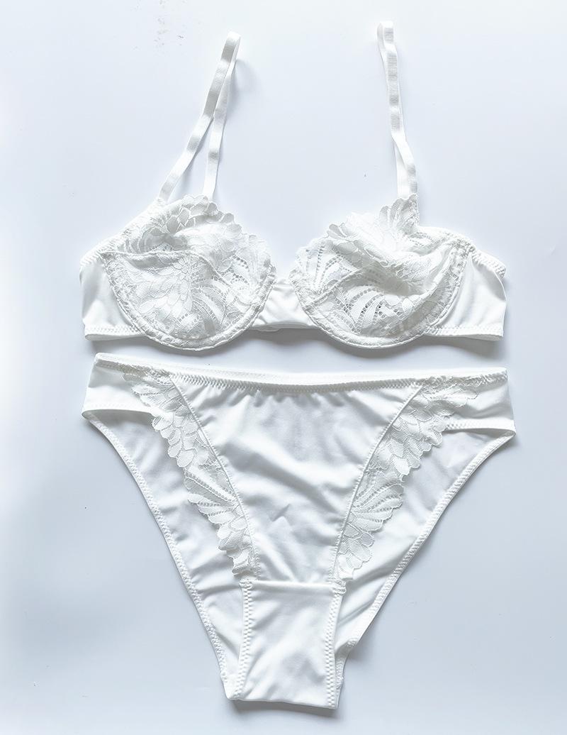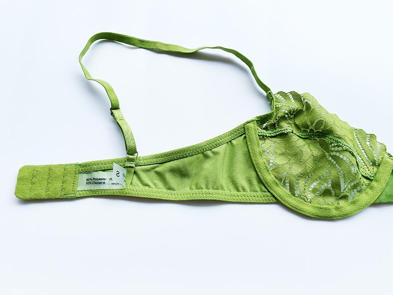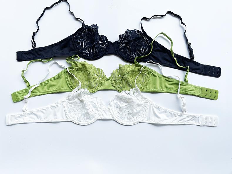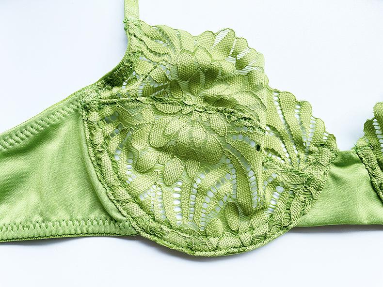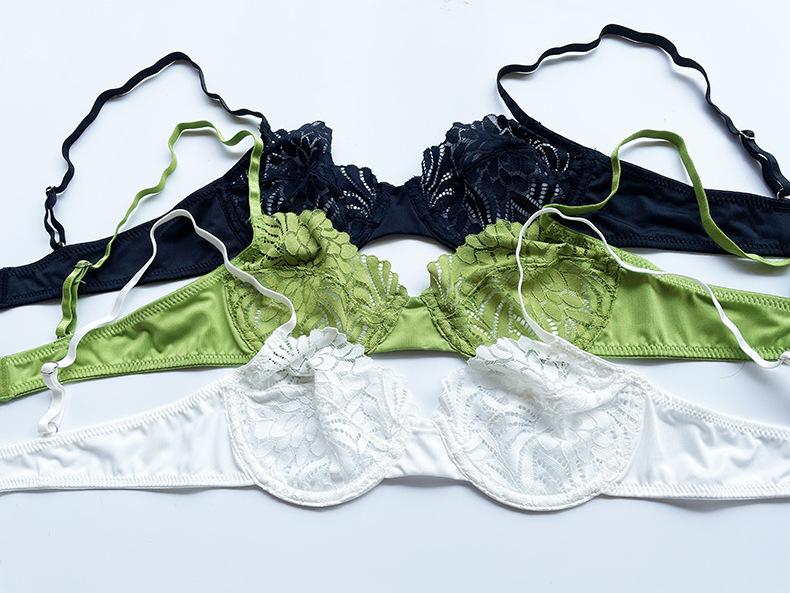 Conjunto de Sujetador Francés de Encaje Sexy Transpirable Fino Sin Esponja para Mujer Ropa Interior Sexy Muestra Pechos Grandes Pequeños