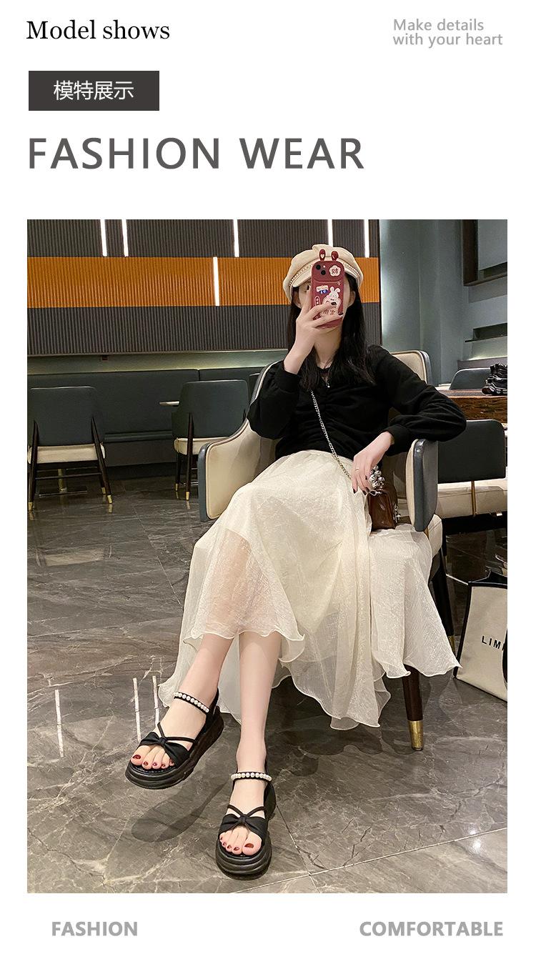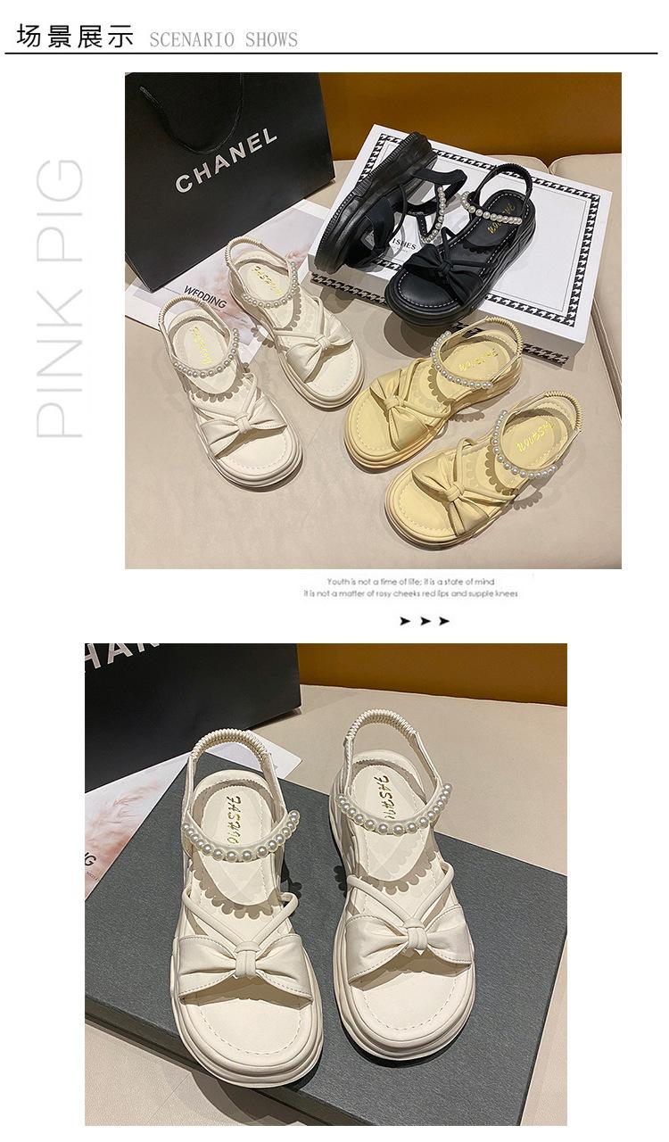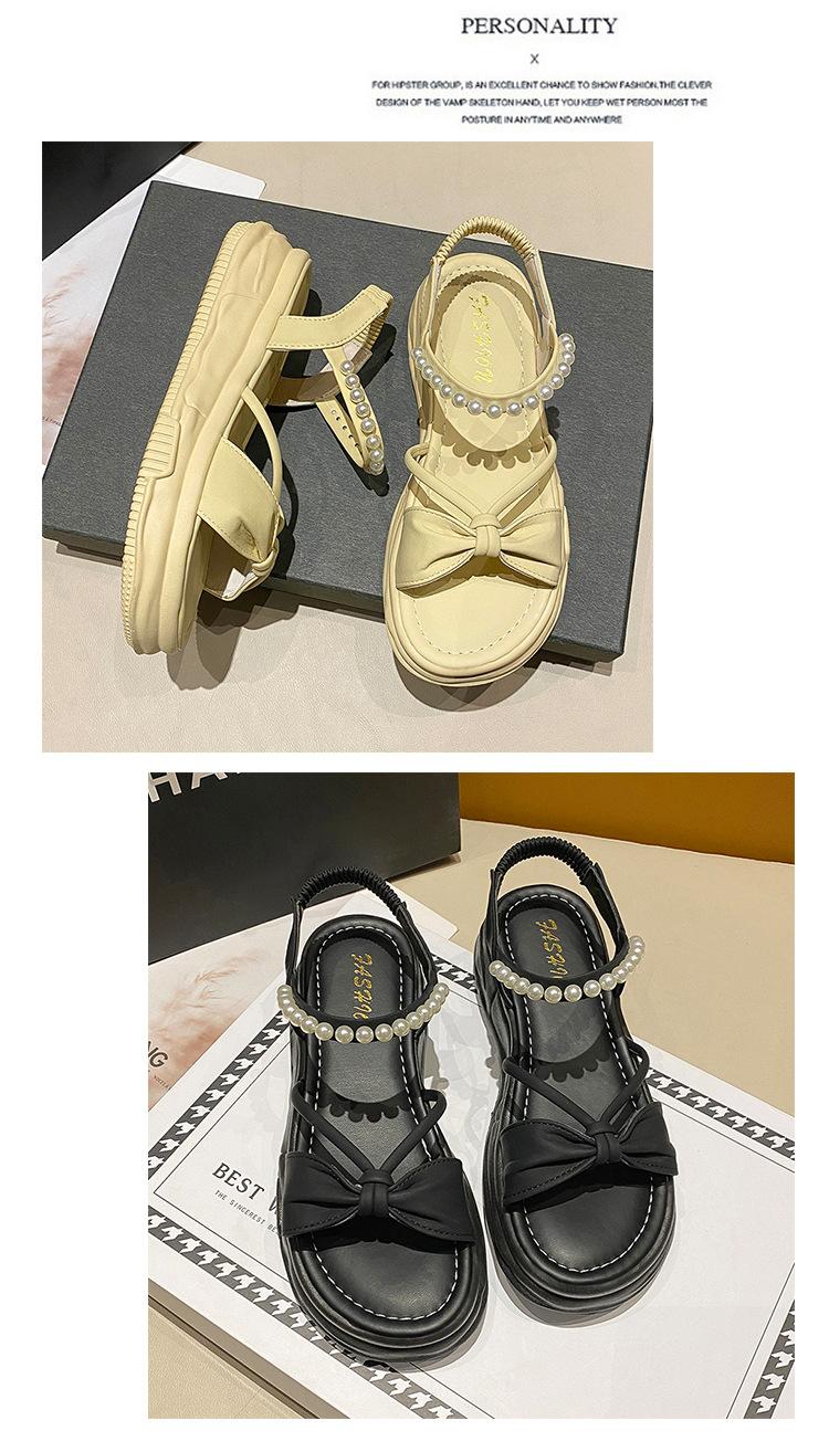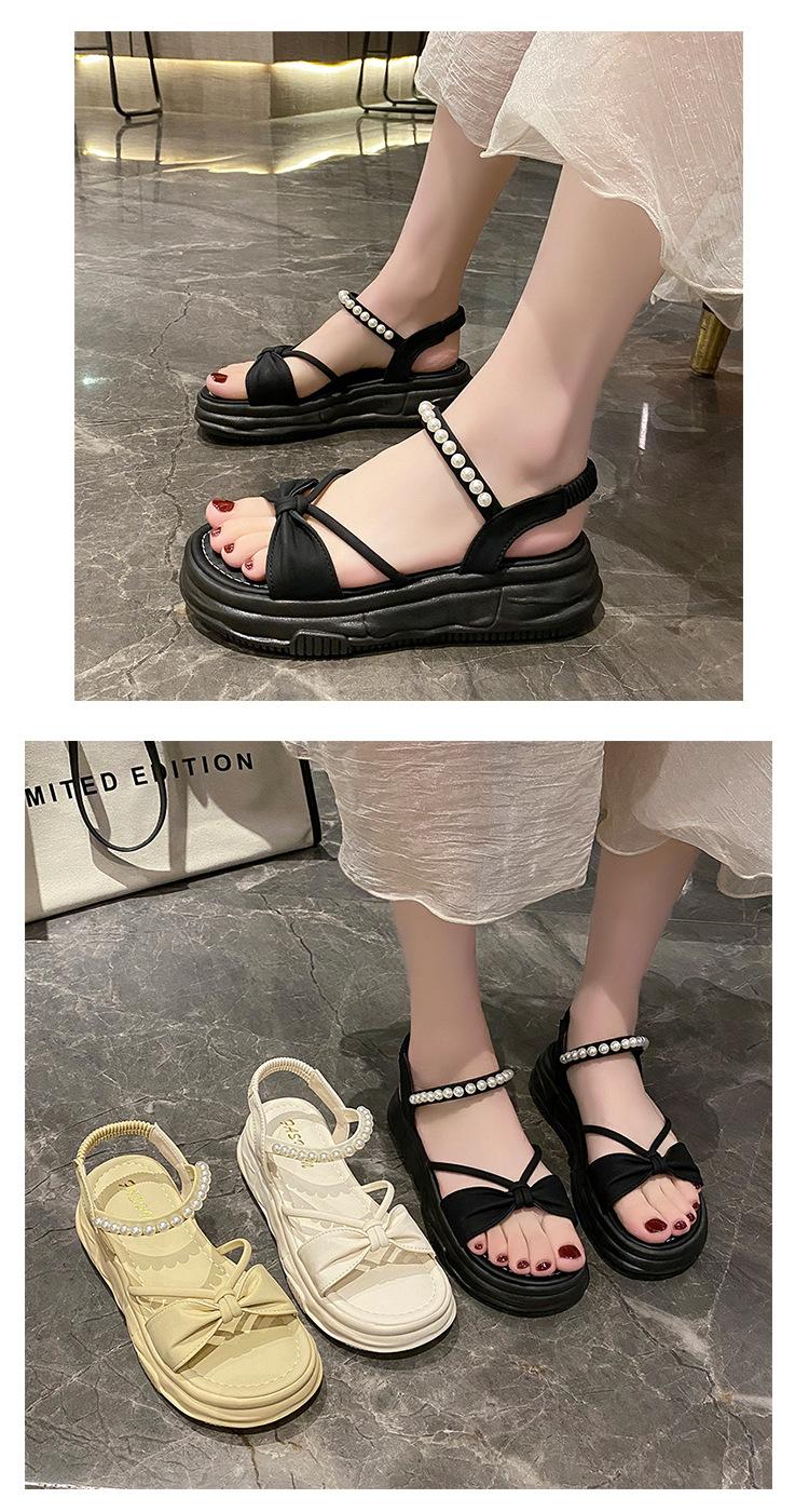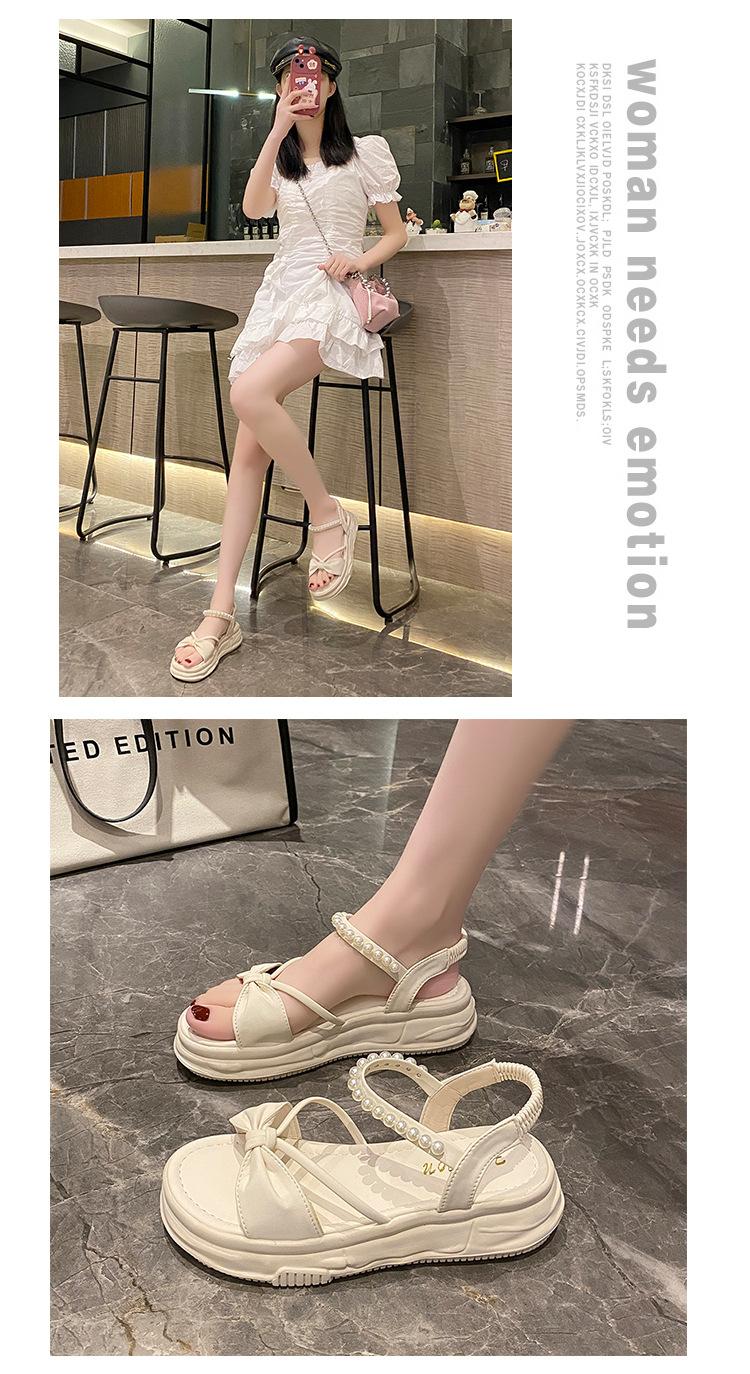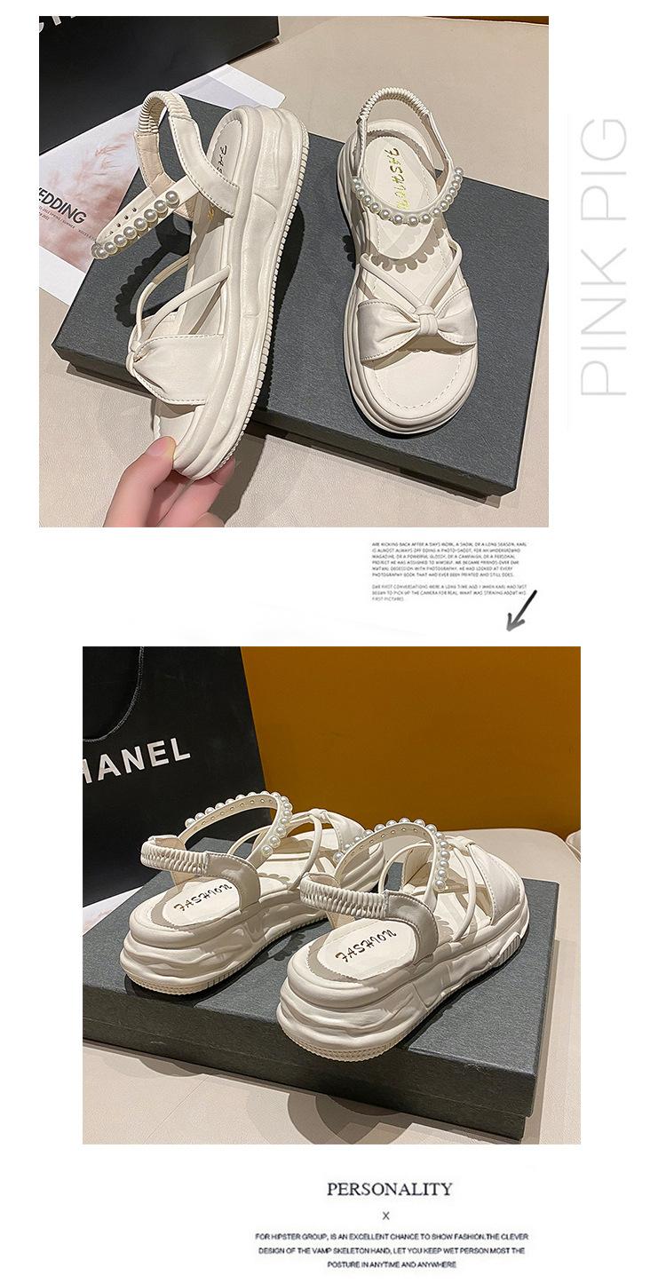 Sandalias de Verano para Mujer para Uso en Exteriores, 2025 Nuevas Sandalias de Playa Versátiles de Moda Casual con Perlas y Suela Gruesa de Talla Grande