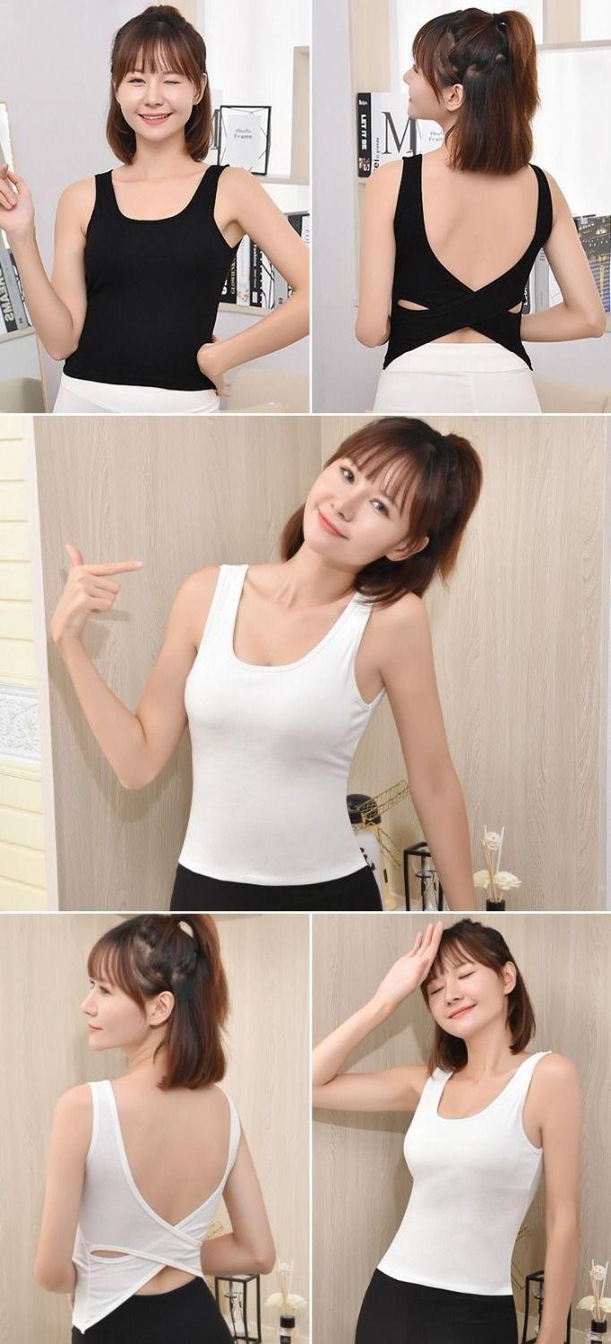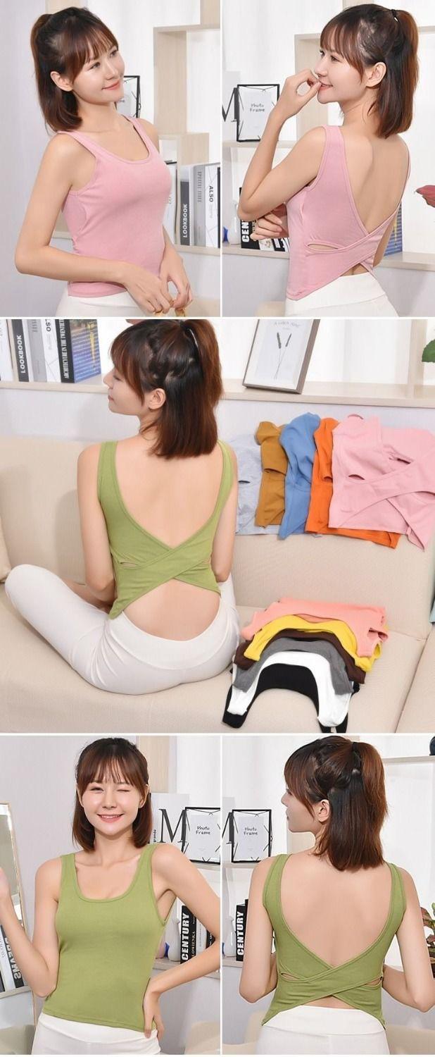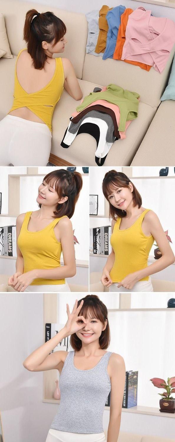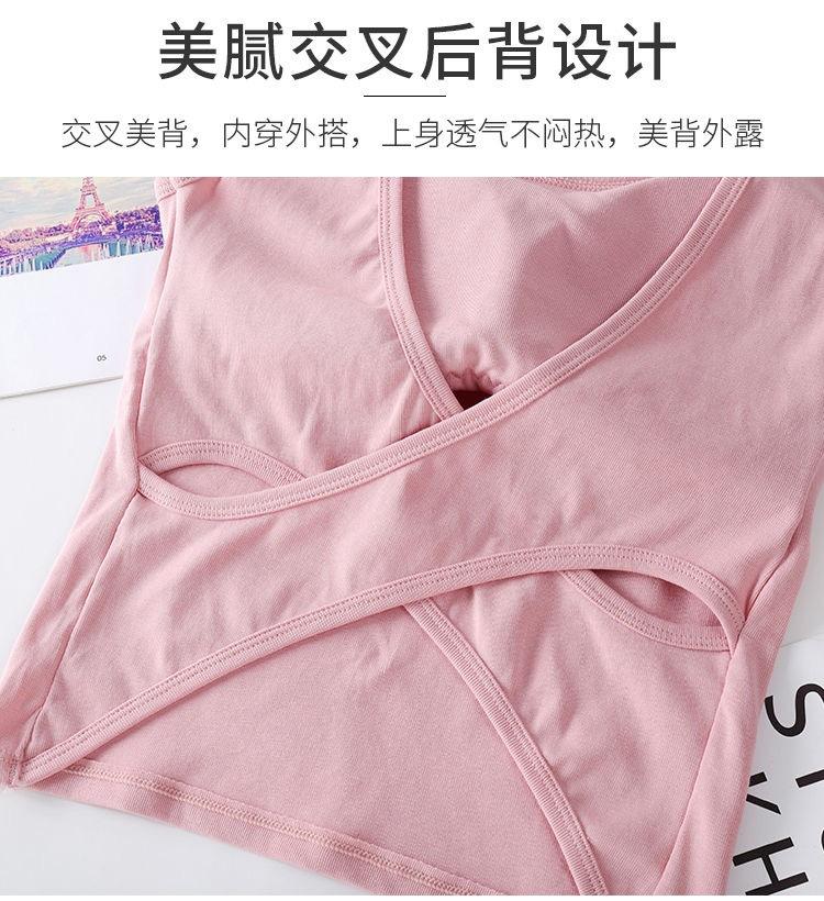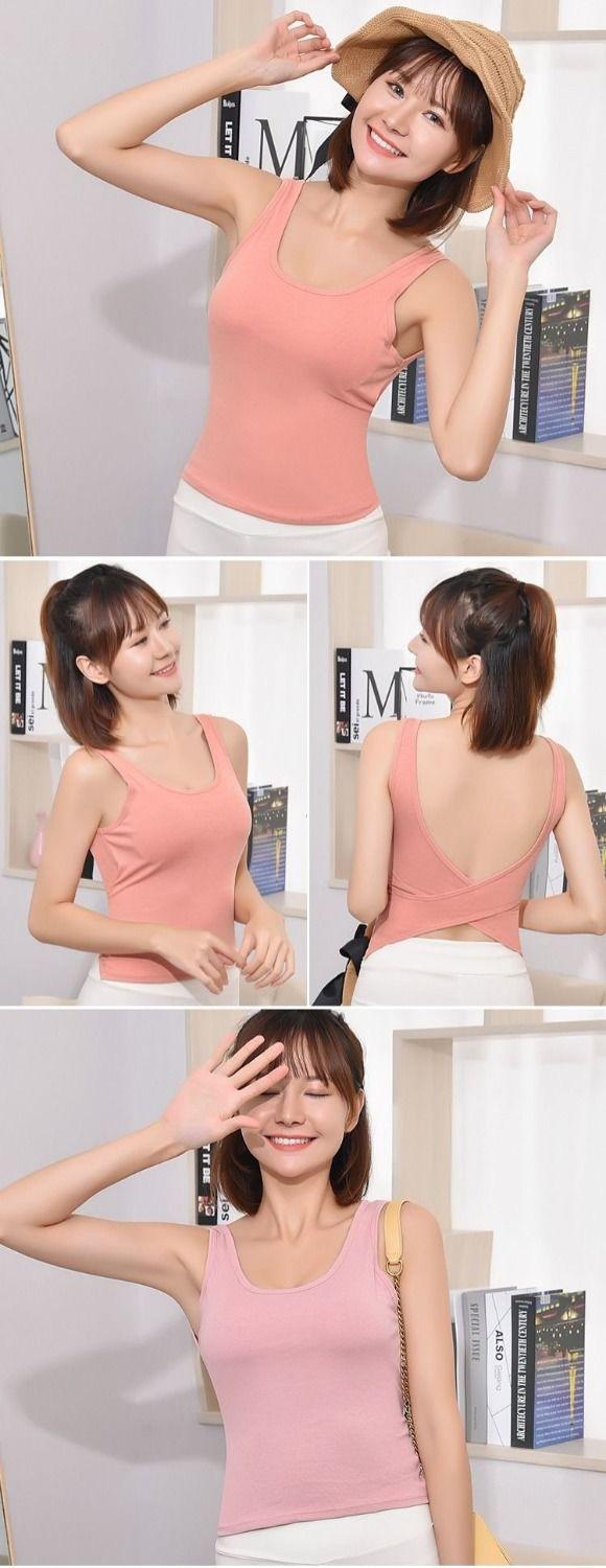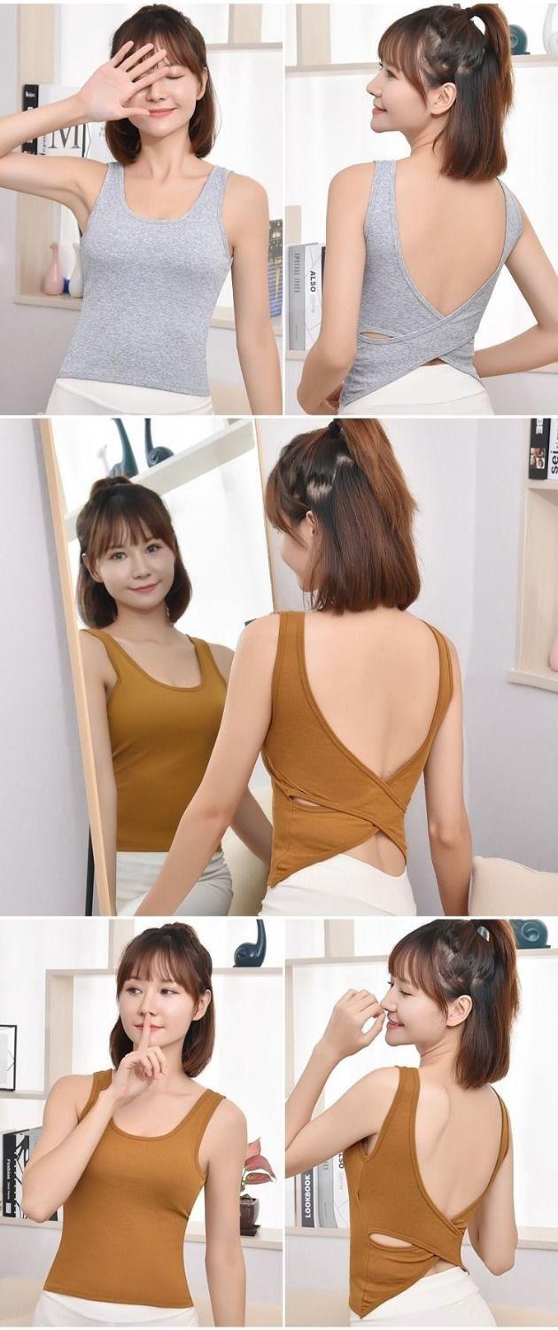 Camisola de Algodón Puro con Hermosa Espalda Cruzada Descubierta, Chaleco de Cuello Cuadrado con Almohadilla en el Pecho para Verano, Ropa Exterior, Look Adelgazante, Top sin Mangas para Fondo
