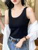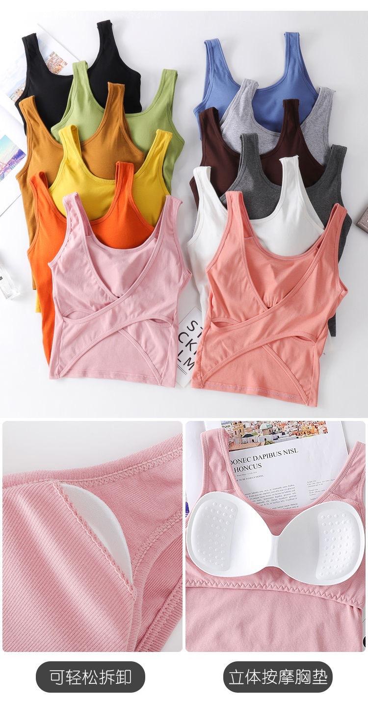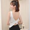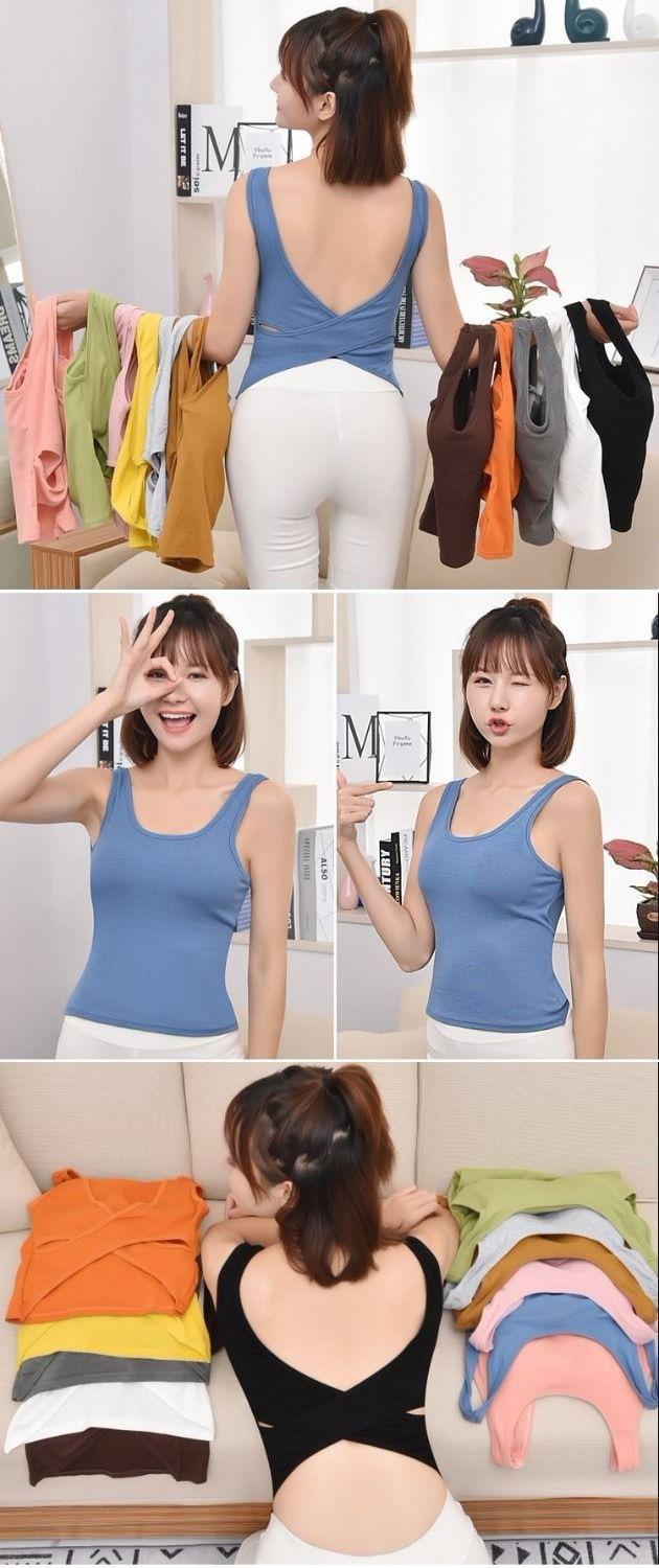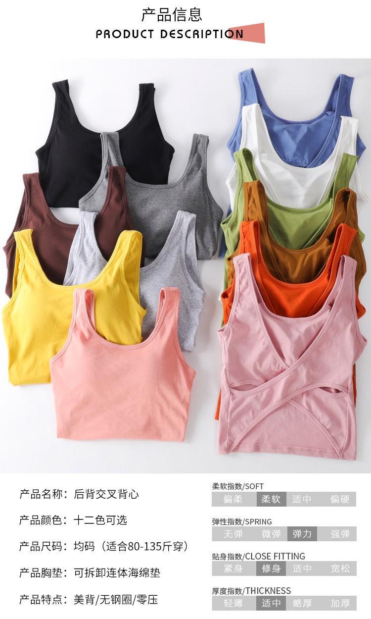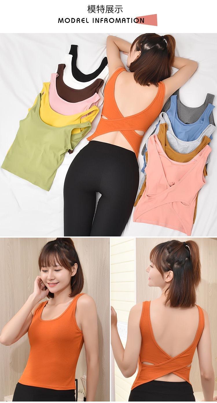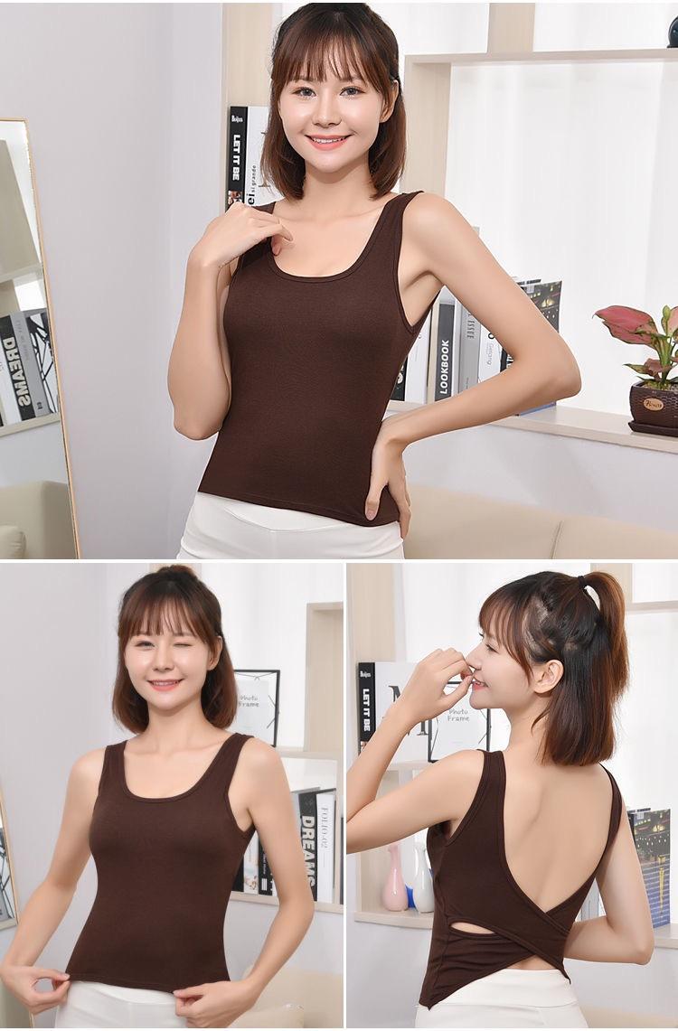 Camisola de Algodón Puro con Hermosa Espalda Cruzada Descubierta, Chaleco de Cuello Cuadrado con Almohadilla en el Pecho para Verano, Ropa Exterior, Look Adelgazante, Top sin Mangas para Fondo