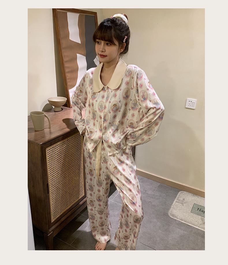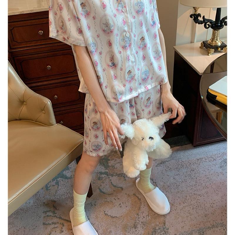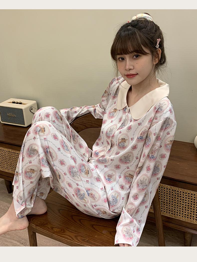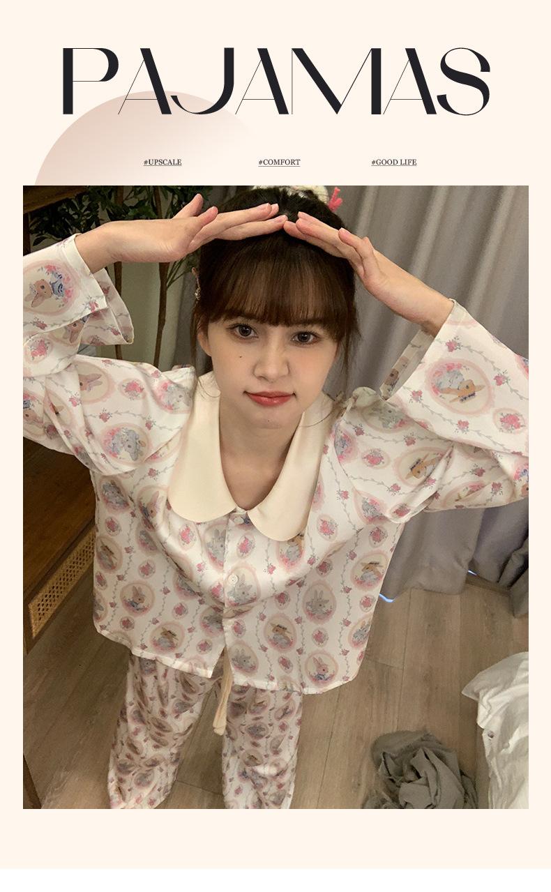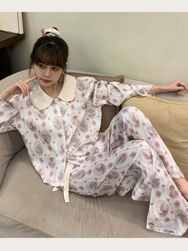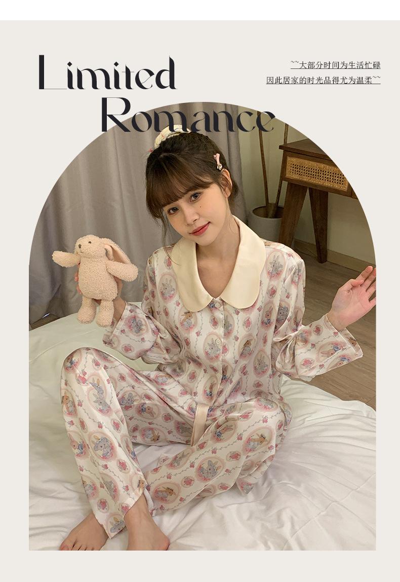 Pijama Conejo Wonderland Francés Lindo Seda Manga Larga Primavera y Verano Ropa para el Hogar Usable Set Dropshipping
