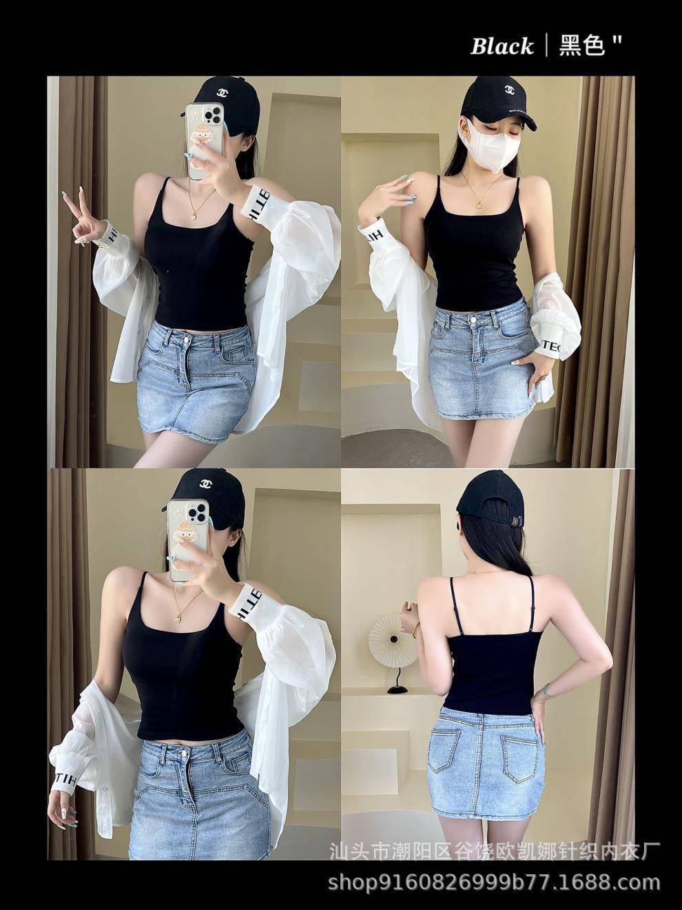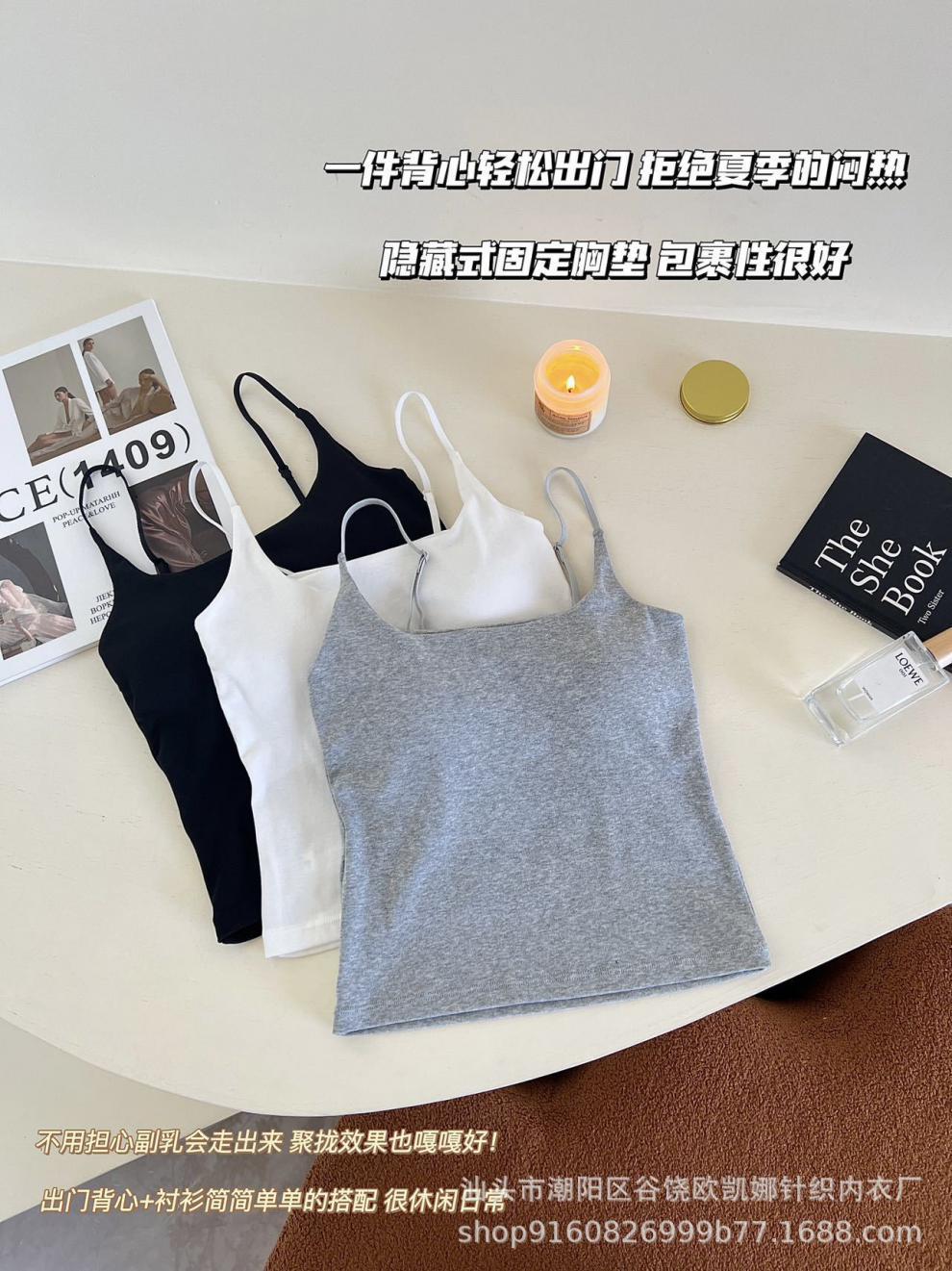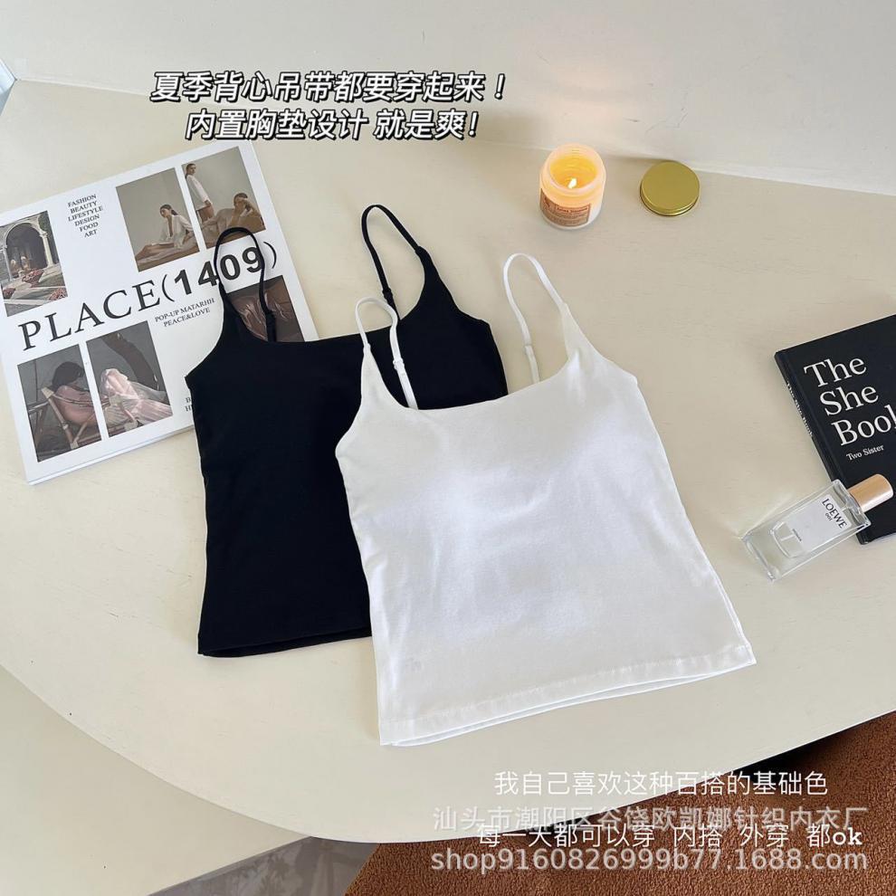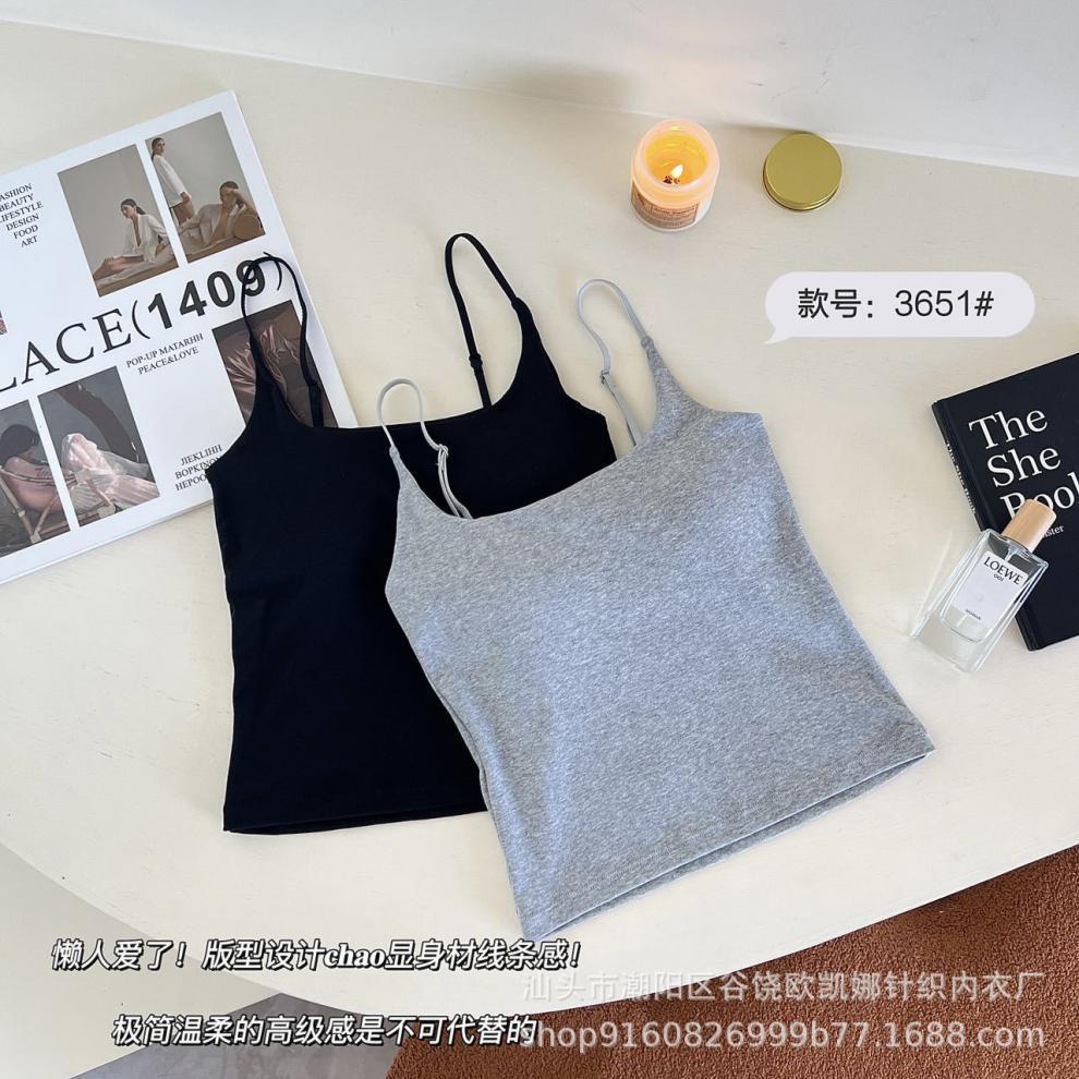 Camisola de algodón puro para mujer, nuevo estilo, ropa interior de una pieza con base interior y almohadilla fija para el pecho, prenda exterior sexy para chica, top de otoño