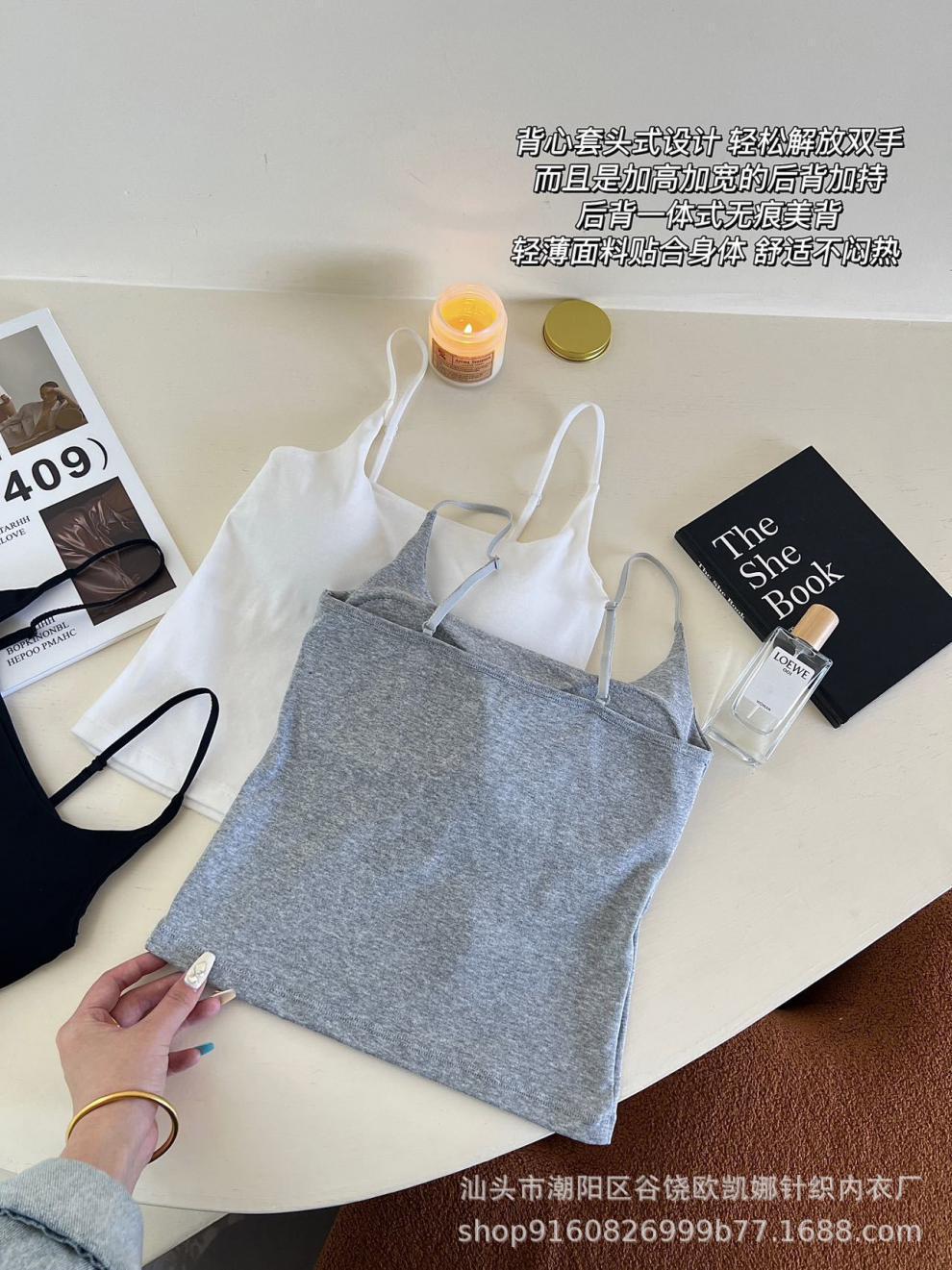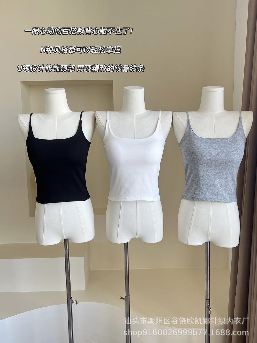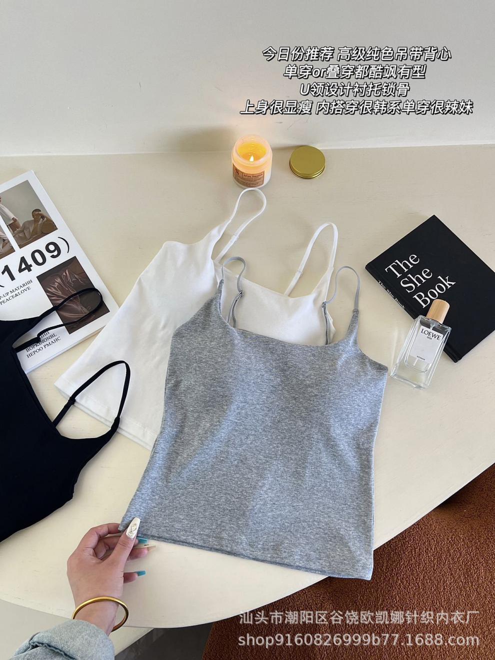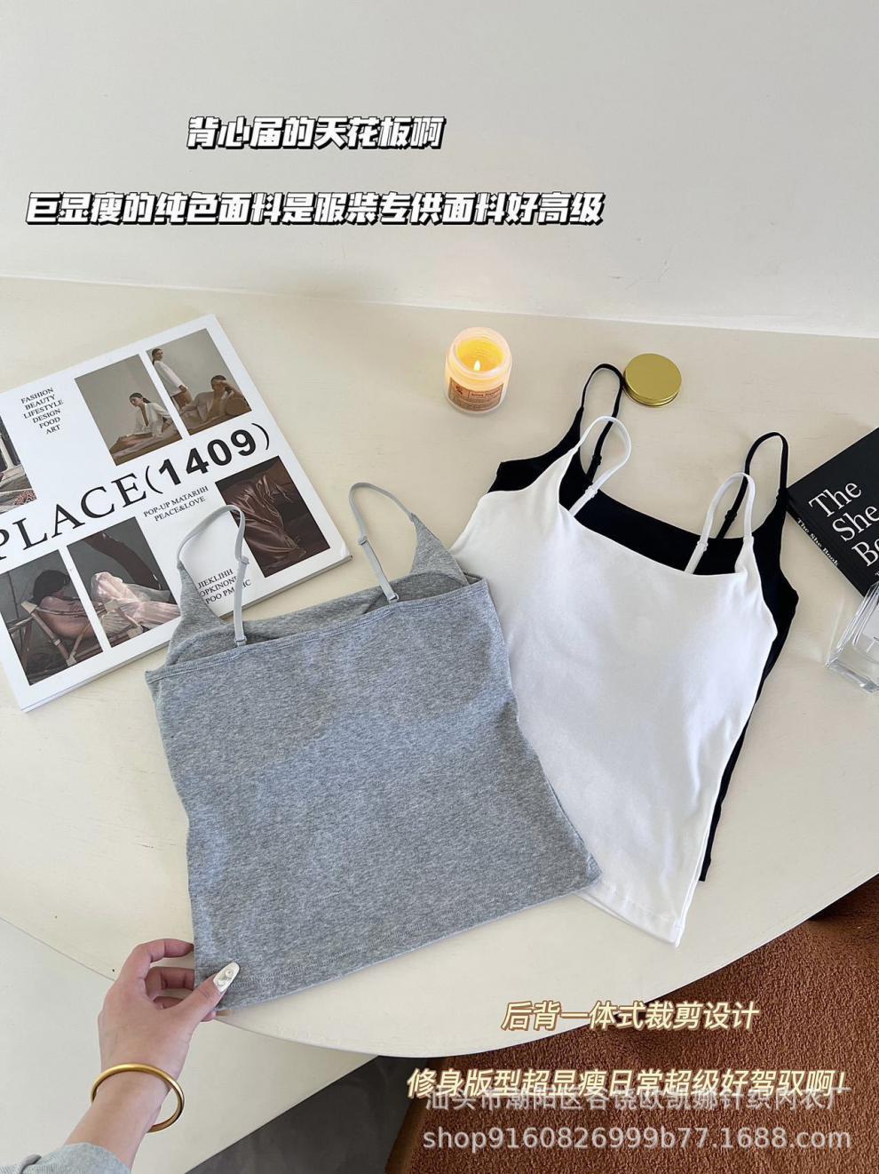 Camisola de algodón puro para mujer, nuevo estilo, ropa interior de una pieza con base interior y almohadilla fija para el pecho, prenda exterior sexy para chica, top de otoño
