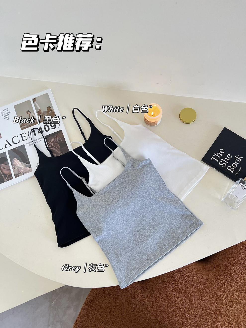 White (with hanger), Grey (with hangers), Black (with hanger), Skin color (with hanger)