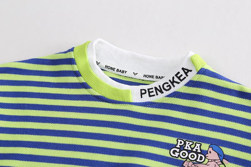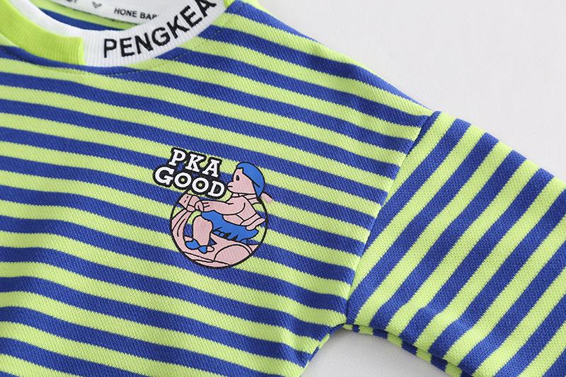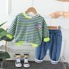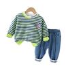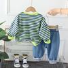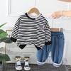 Traje de otoño para niño 2023, nuevo y elegante traje de dos piezas de manga larga a rayas para bebé, primavera y otoño, moda infantil.