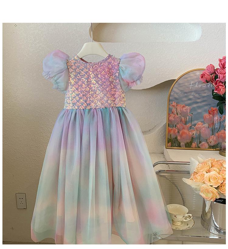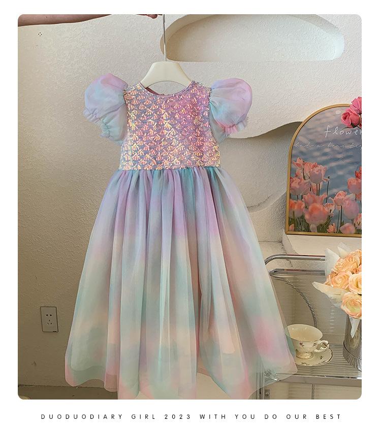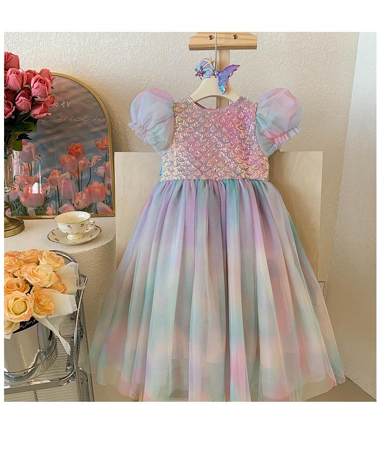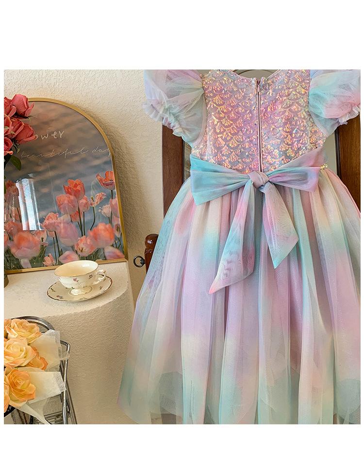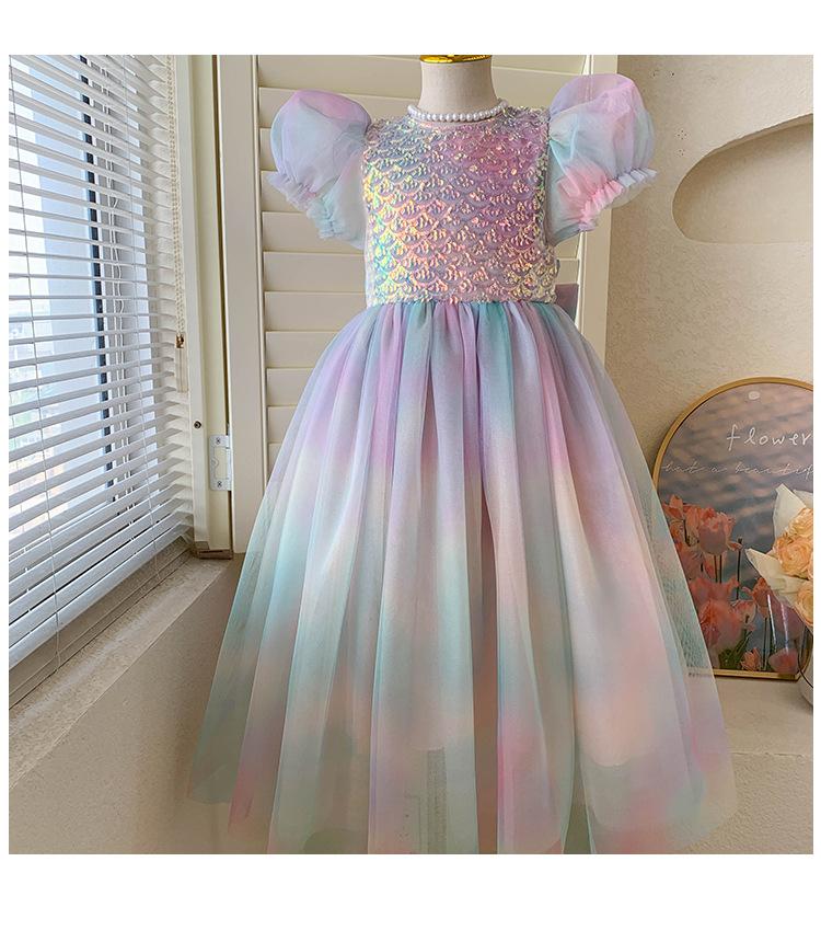 Vestido de princesa sirena para niña, vestido de verano para niña, elegante vestido de princesa con contraste degradado.