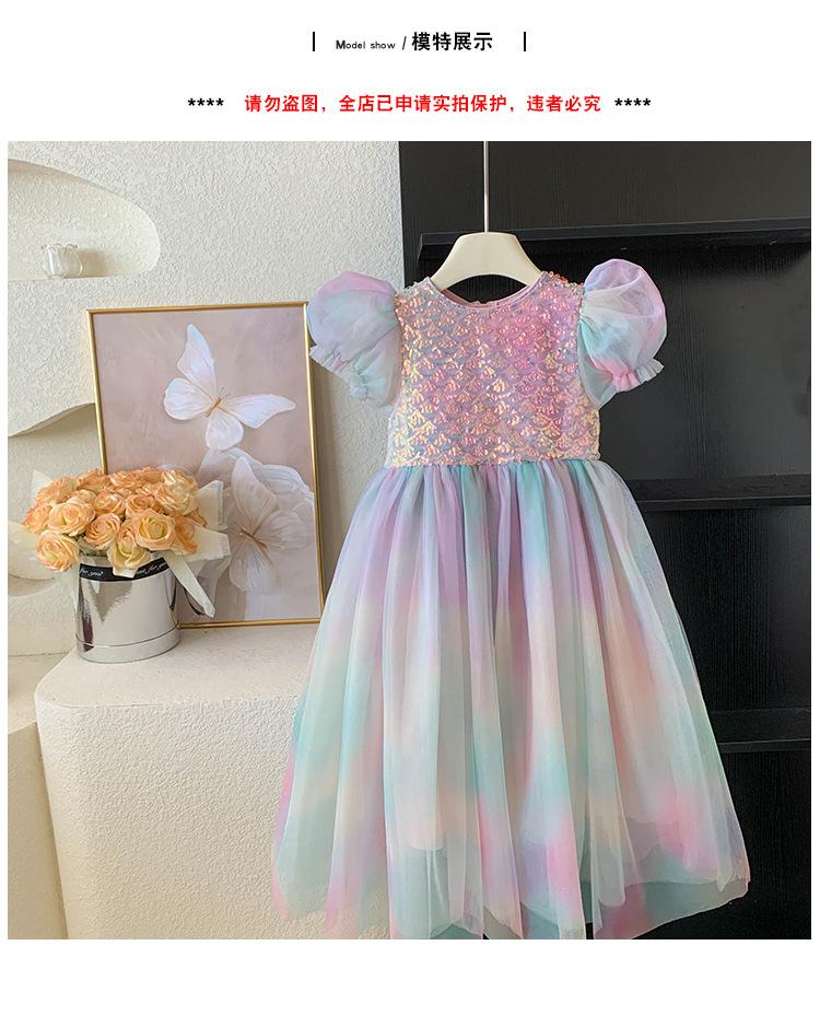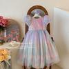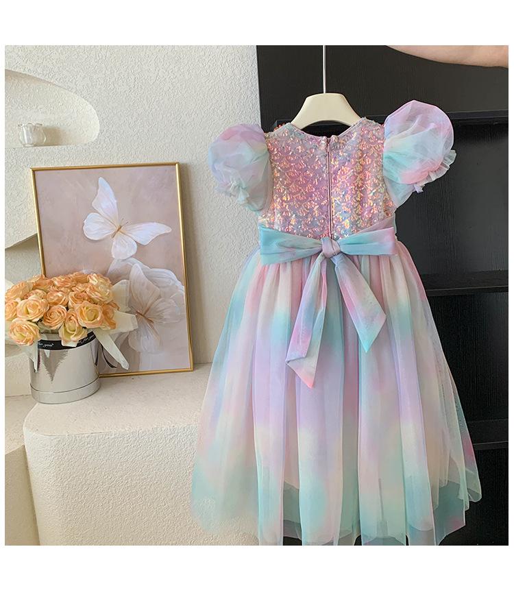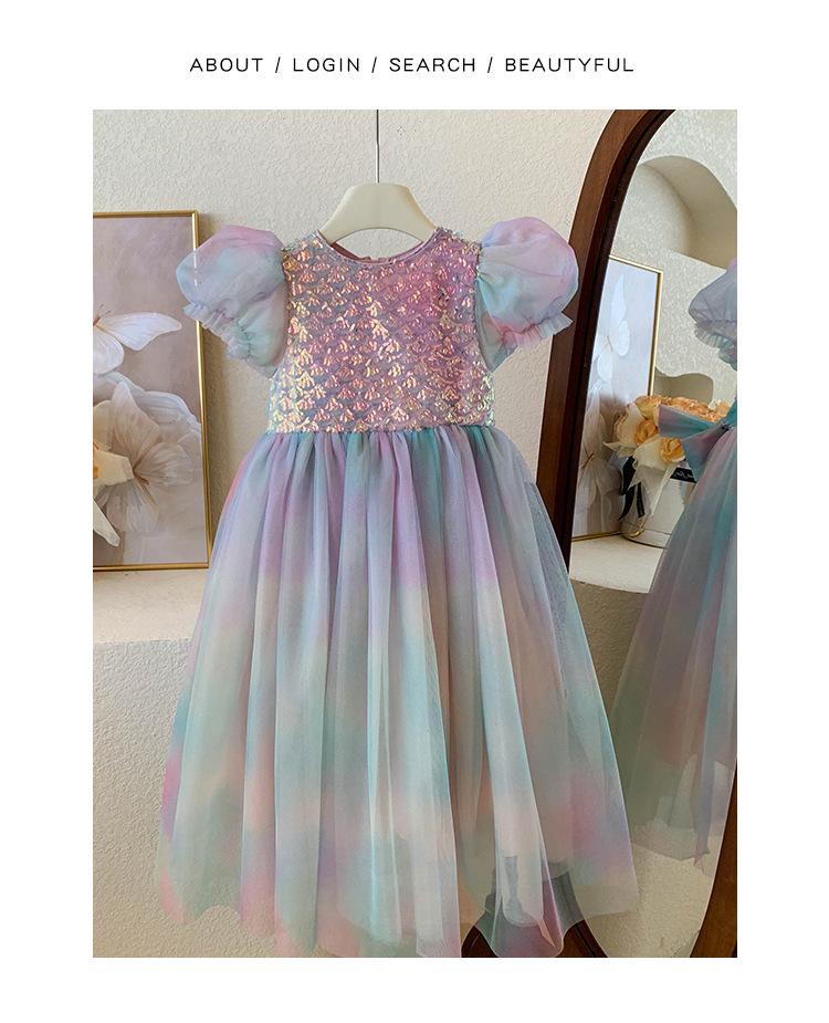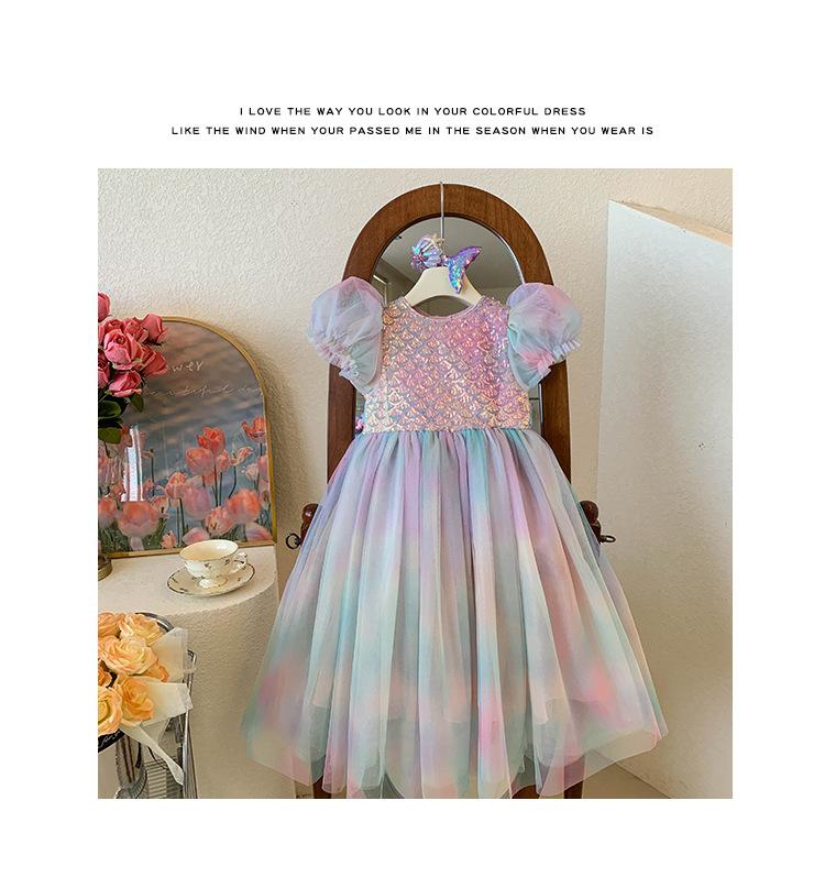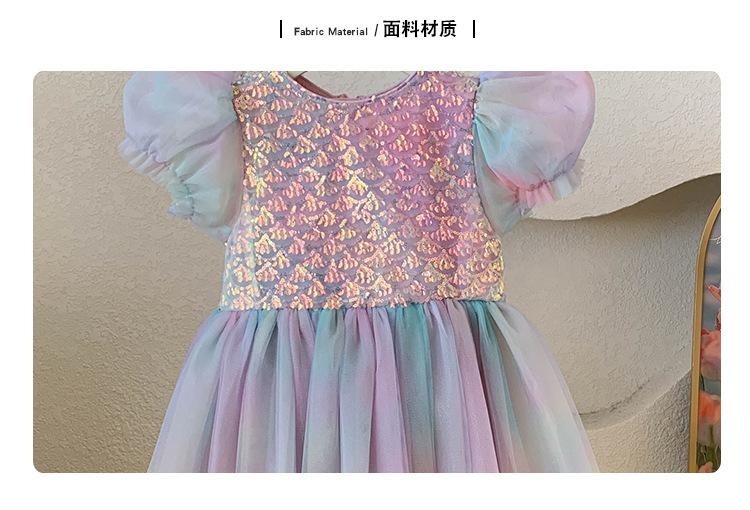 Vestido de princesa sirena para niña, vestido de verano para niña, elegante vestido de princesa con contraste degradado.