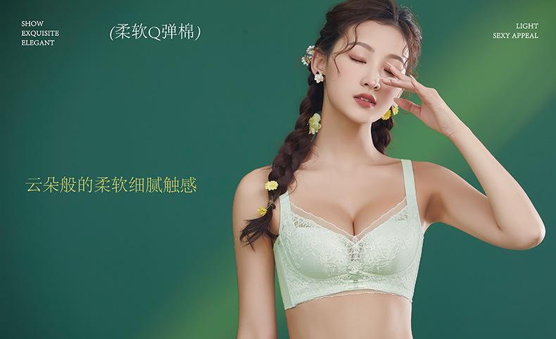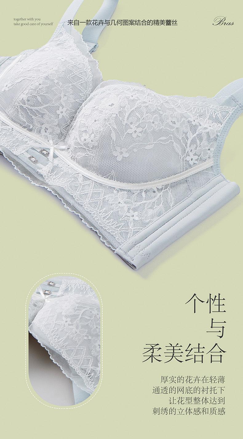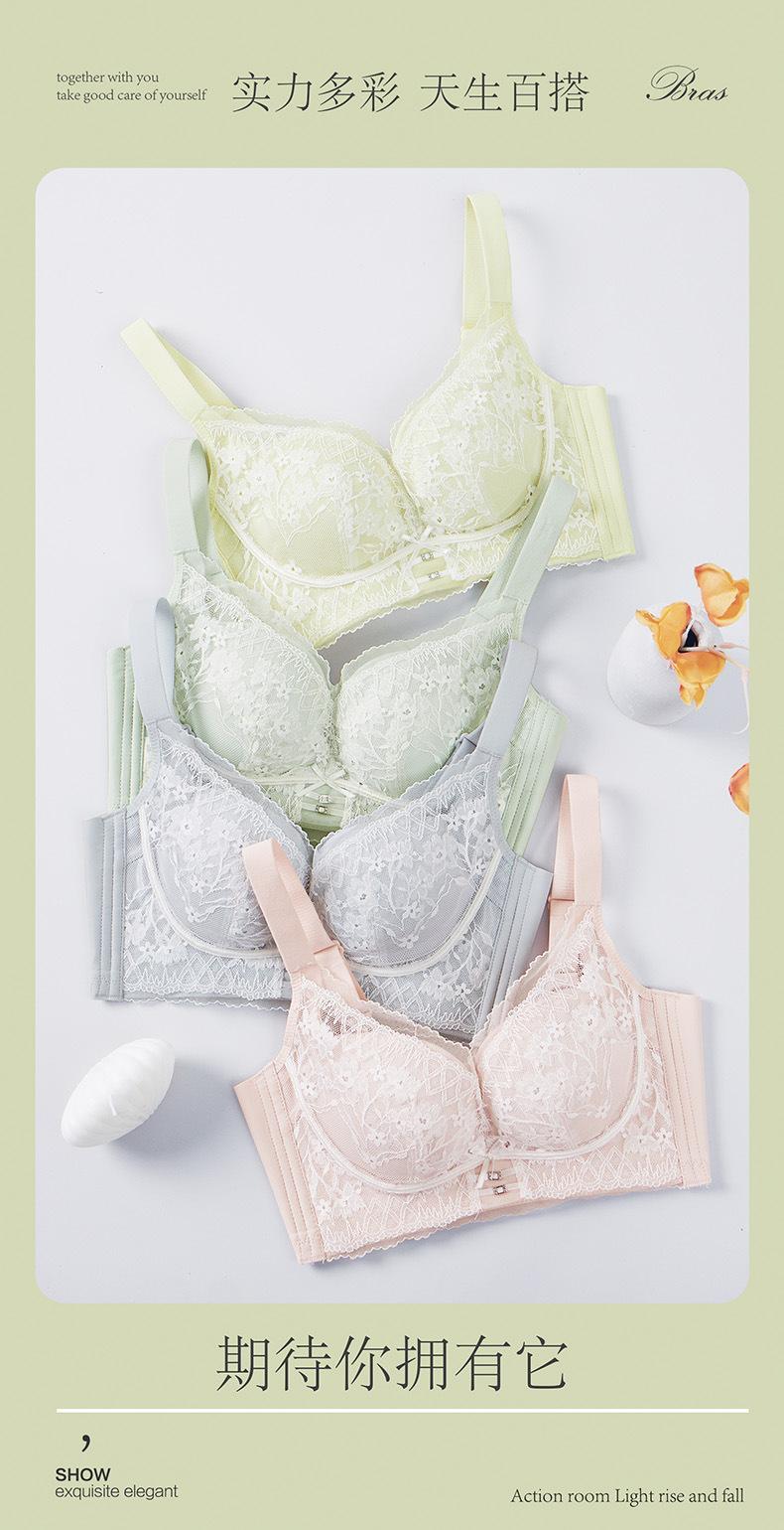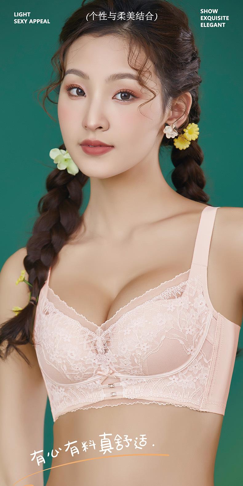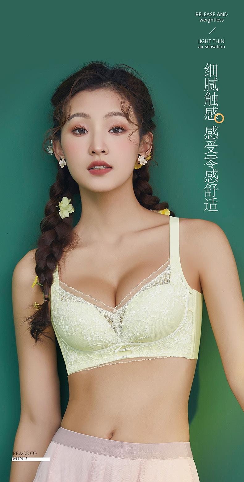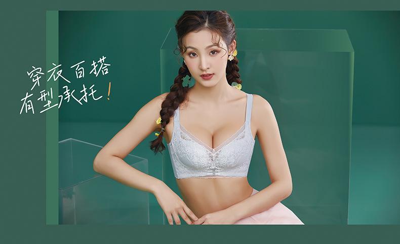 2297 Gran Venta Ropa Interior para Mujer Delgada Primavera y Verano Pecho Pequeño Push-Up Anticaída Encaje Sin Imán Sin Varillas