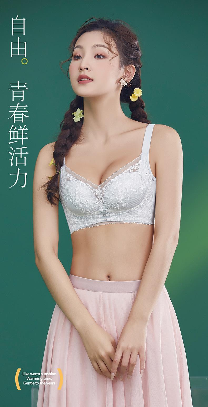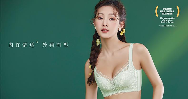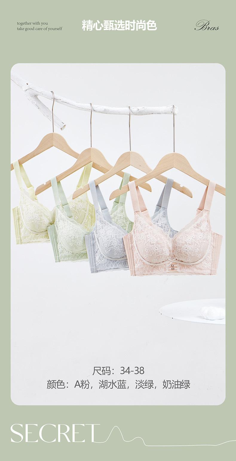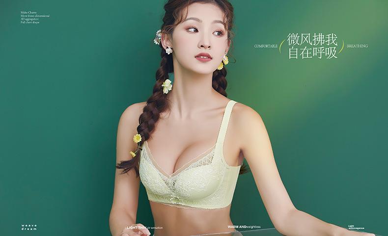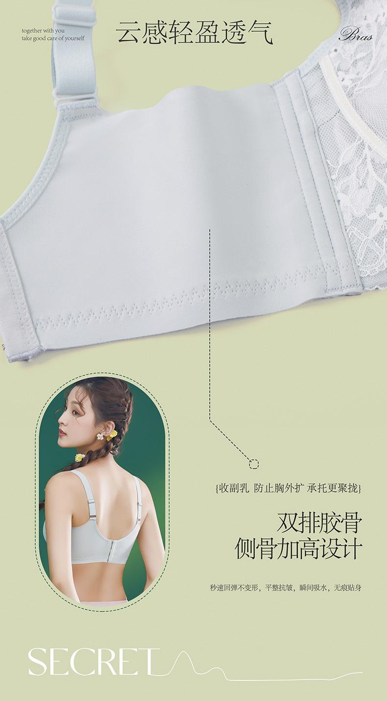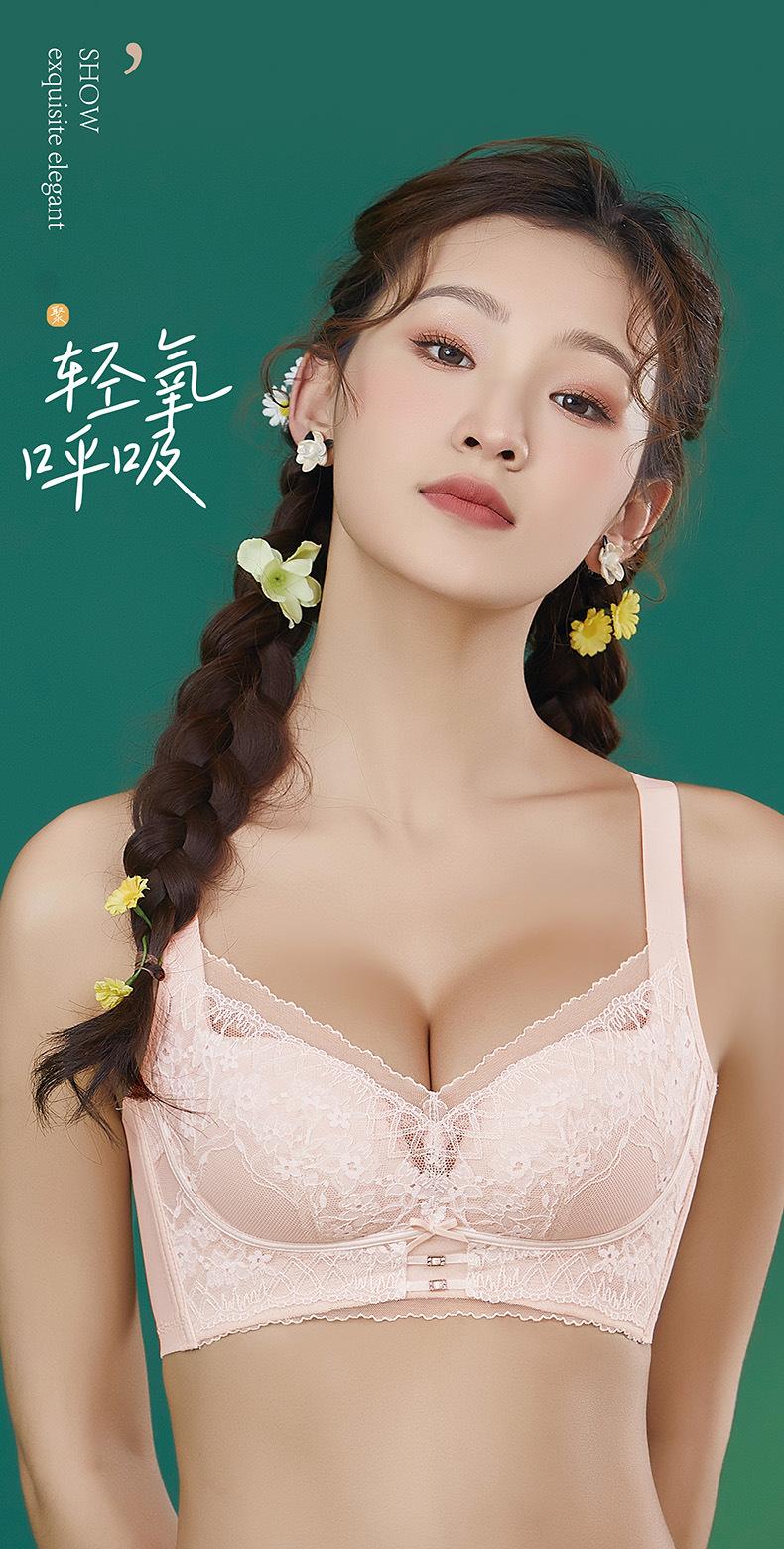 2297 Gran Venta Ropa Interior para Mujer Delgada Primavera y Verano Pecho Pequeño Push-Up Anticaída Encaje Sin Imán Sin Varillas