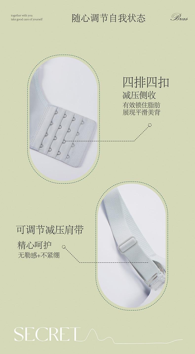 Gather, Breathable, Upper support, Adjustable type, Comfortable, Side closure, Breast collection