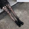 Calcetines de tirantes, medias de malla negras sexys, base de encaje fino japonés para mujer, medias de perspectiva de una pieza antideslizantes para mujer
