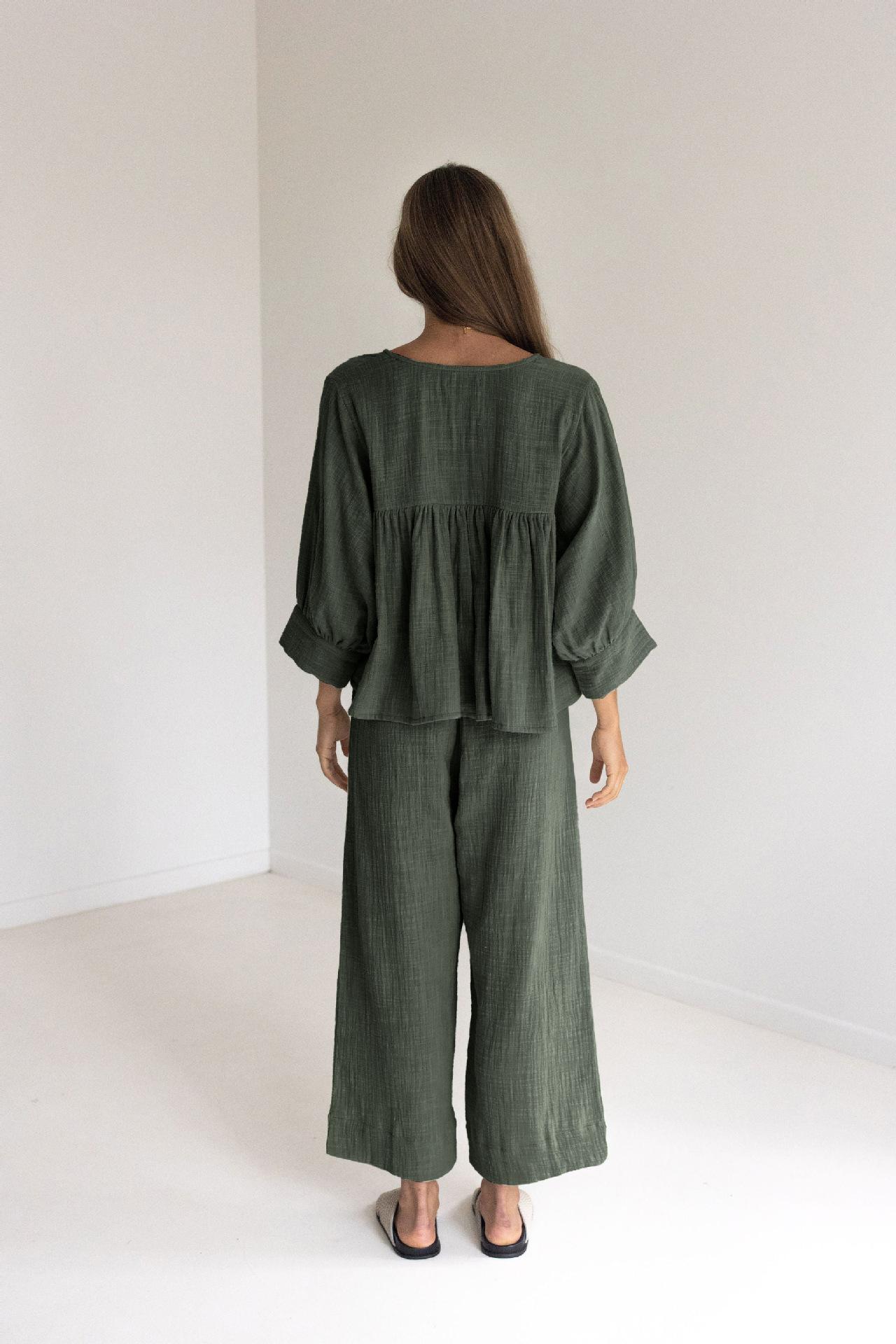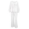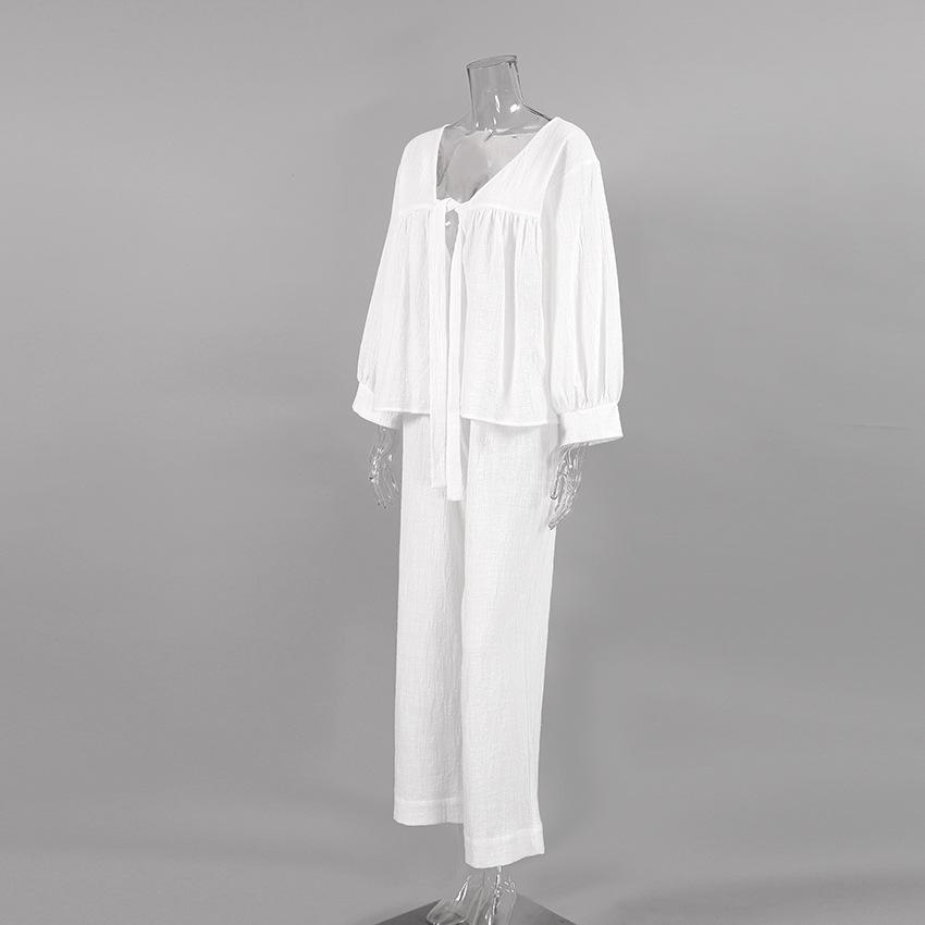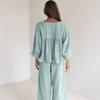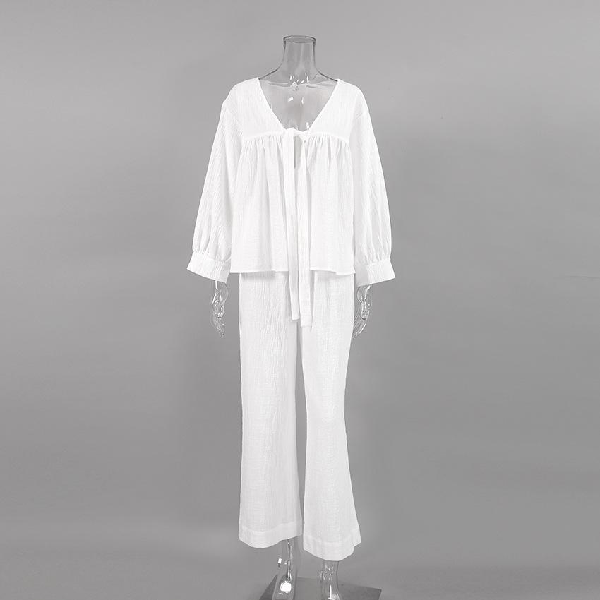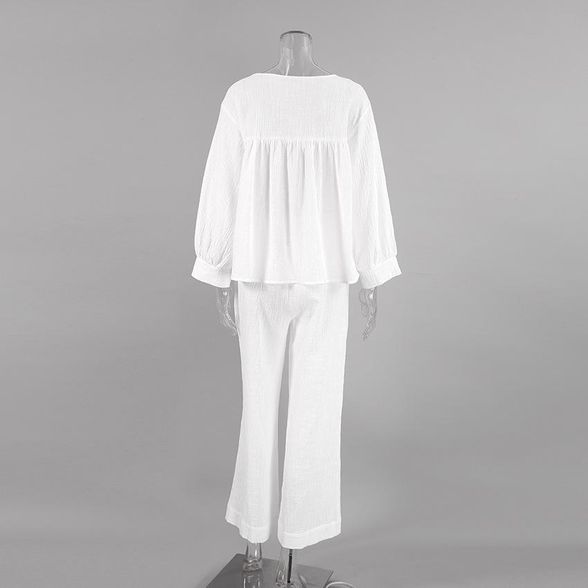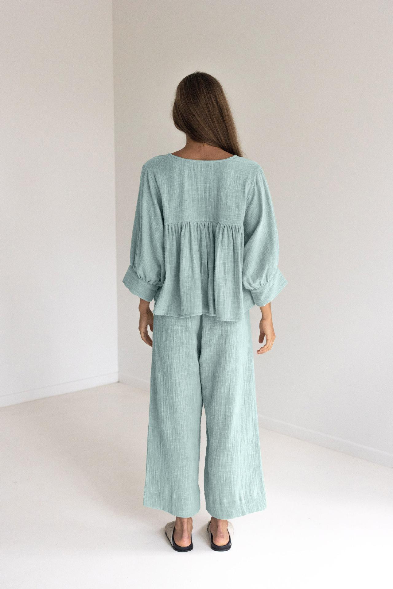 Pijama de dos piezas de manga larga holgado azul cómodo de algodón puro para otoño e invierno de 2023, venta al por mayor transfronteriza, ropa para el hogar
