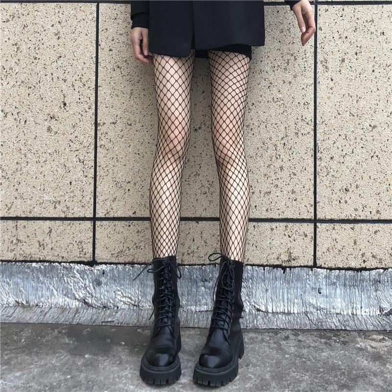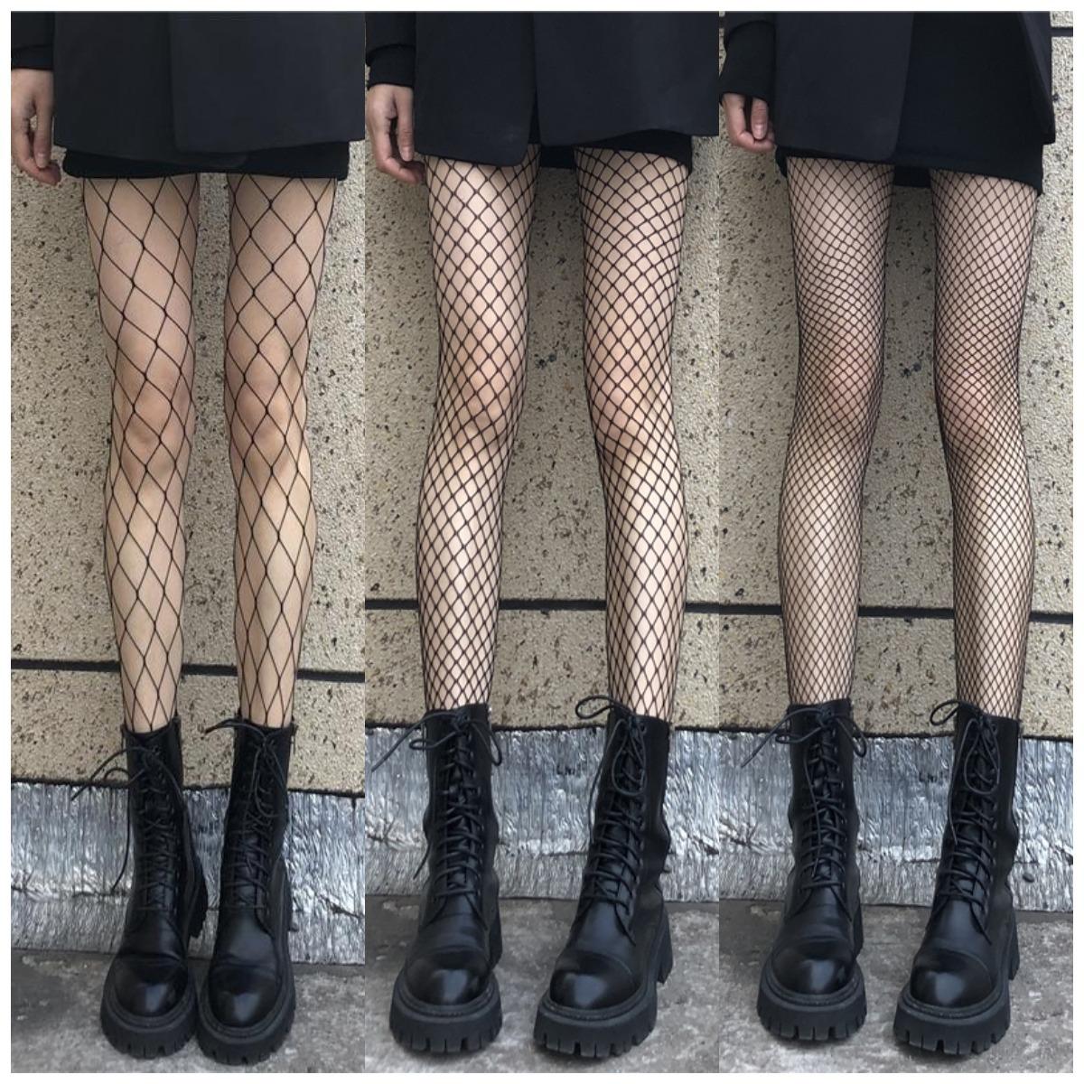 Mu Ruan medias de red de seda negra medias para mujer ins medias de red delgadas sexys de moda negro jk encaje verano otoño e invierno medias