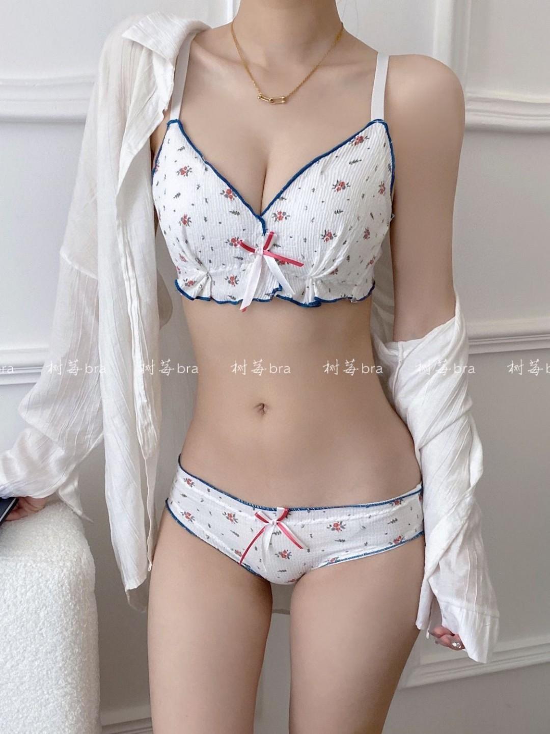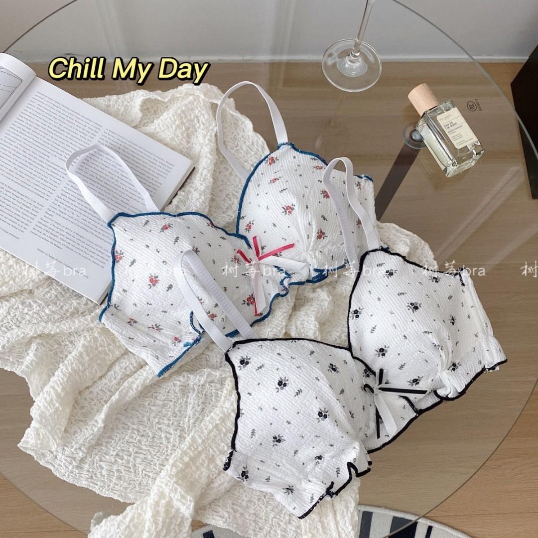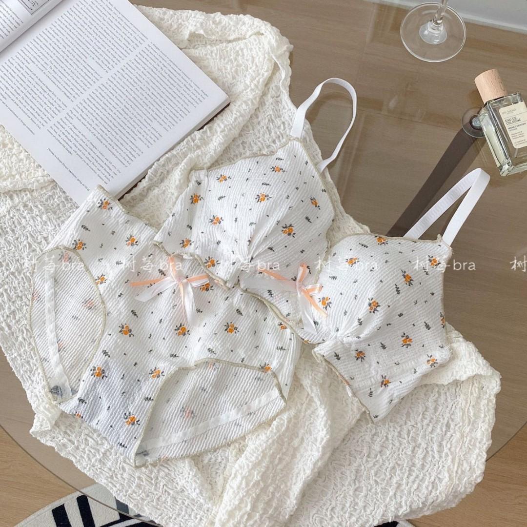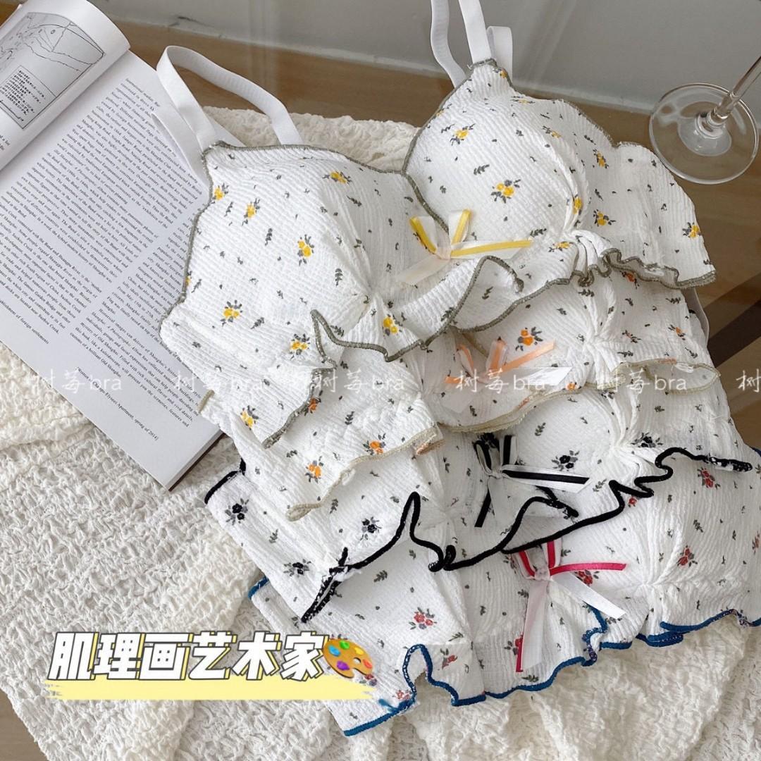 Conjunto de brasier de niña linda japonesa original, dulce con volantes, cómodo, inalámbrico, ropa interior de brasier retro