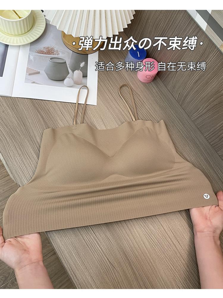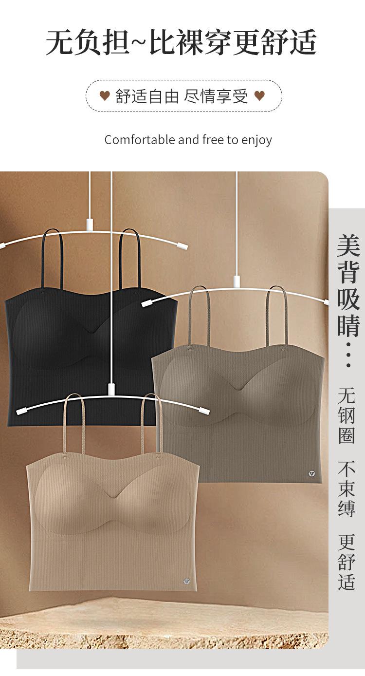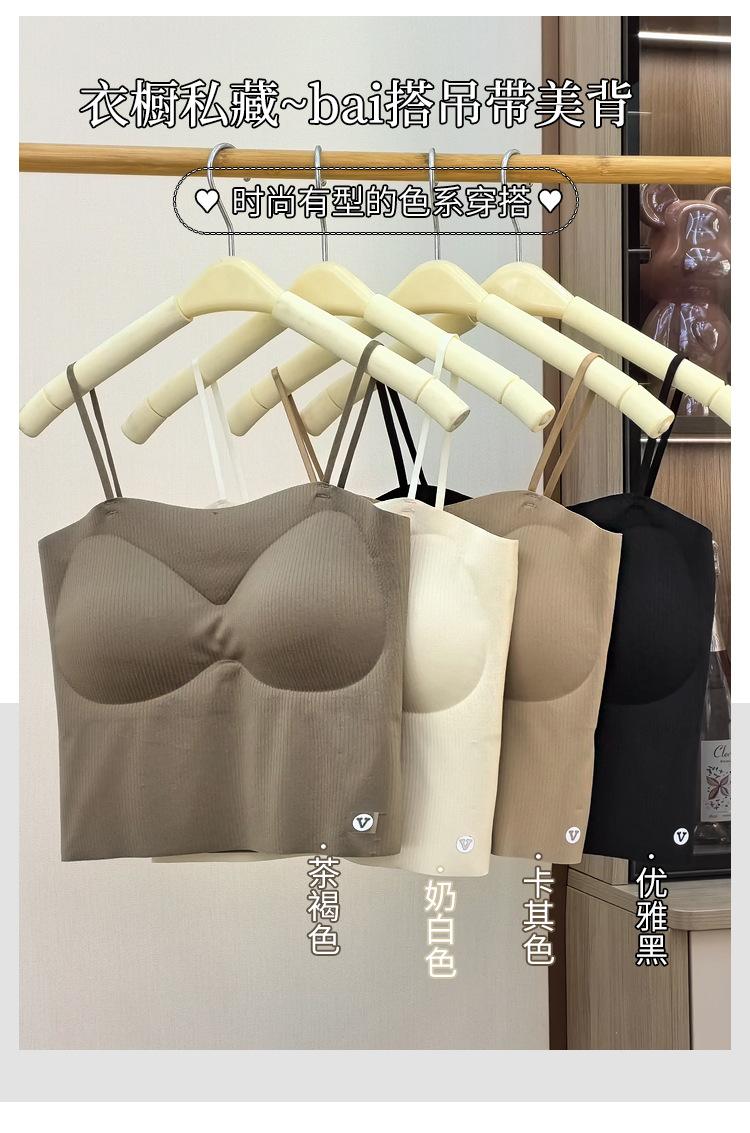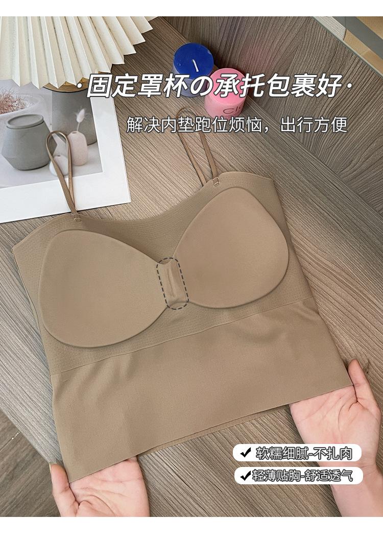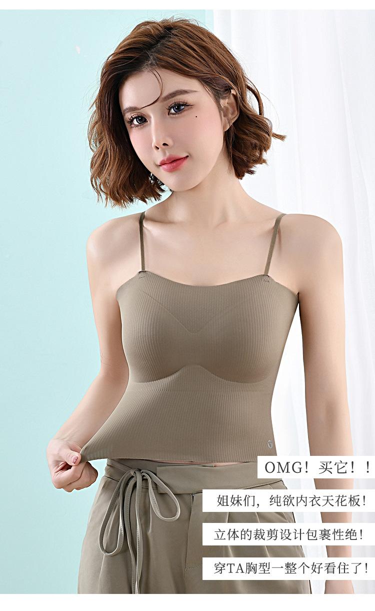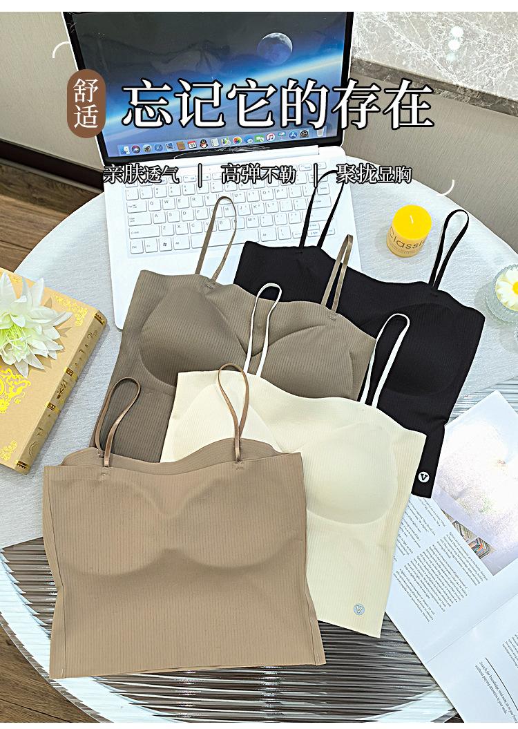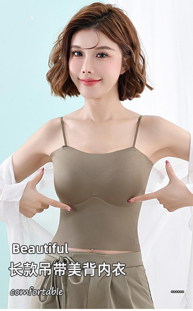 Camisola fina y pequeña con realce, sin costuras, con tirantes largos y espalda descubierta, para uso exterior