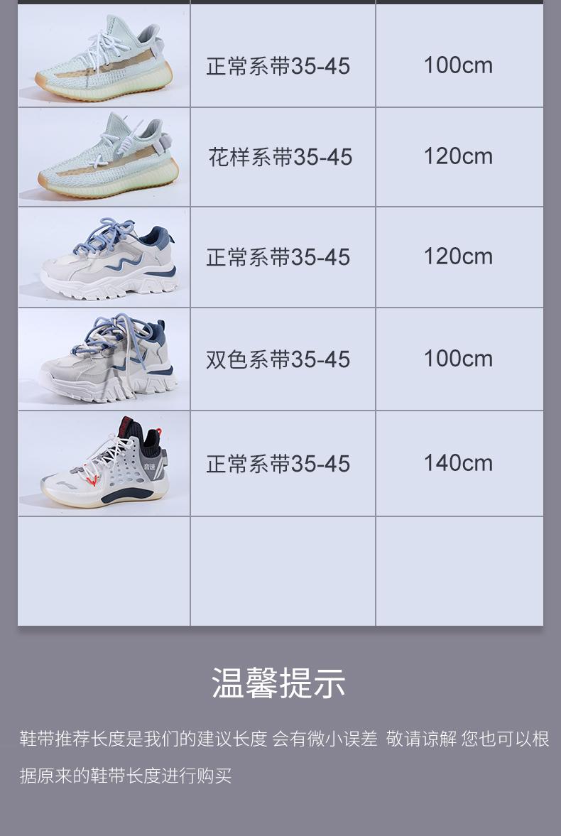 1. Los cordones no vienen con embalaje independiente. Si necesita embalaje, contacte con el servicio de atención al cliente en línea para una consulta. 2. El precio del producto incluye los gastos de envío. Si el producto ya se ha recogido y enviado, se descontará un cargo de gestión y un cargo de mensajería de 5 yuanes. 3. Longitudes disponibles: 120/140/160 cm/180 cm. Se pueden personalizar otras longitudes contactando con atención al cliente. 4. Debido a que los cordones son ligeramente elásticos, puede haber un margen de error de 1 a 5 cm en la longitud real. Si le importa, no los compre. |