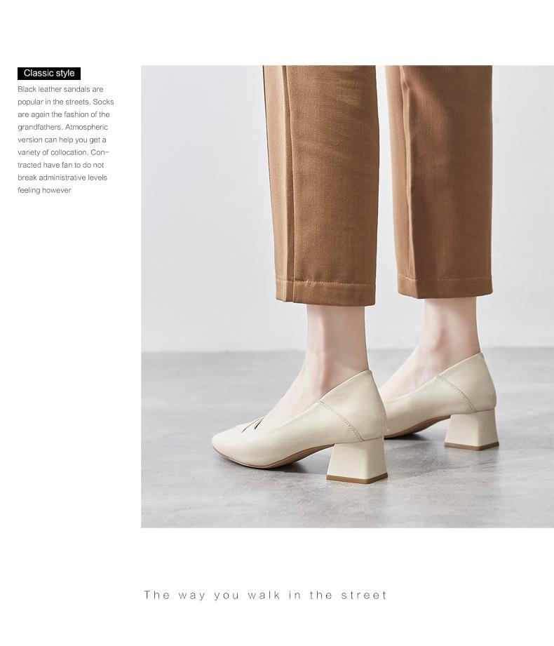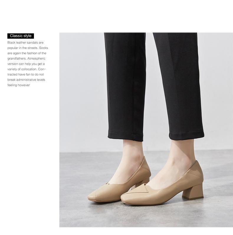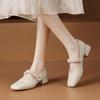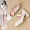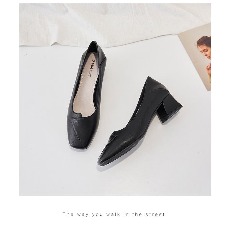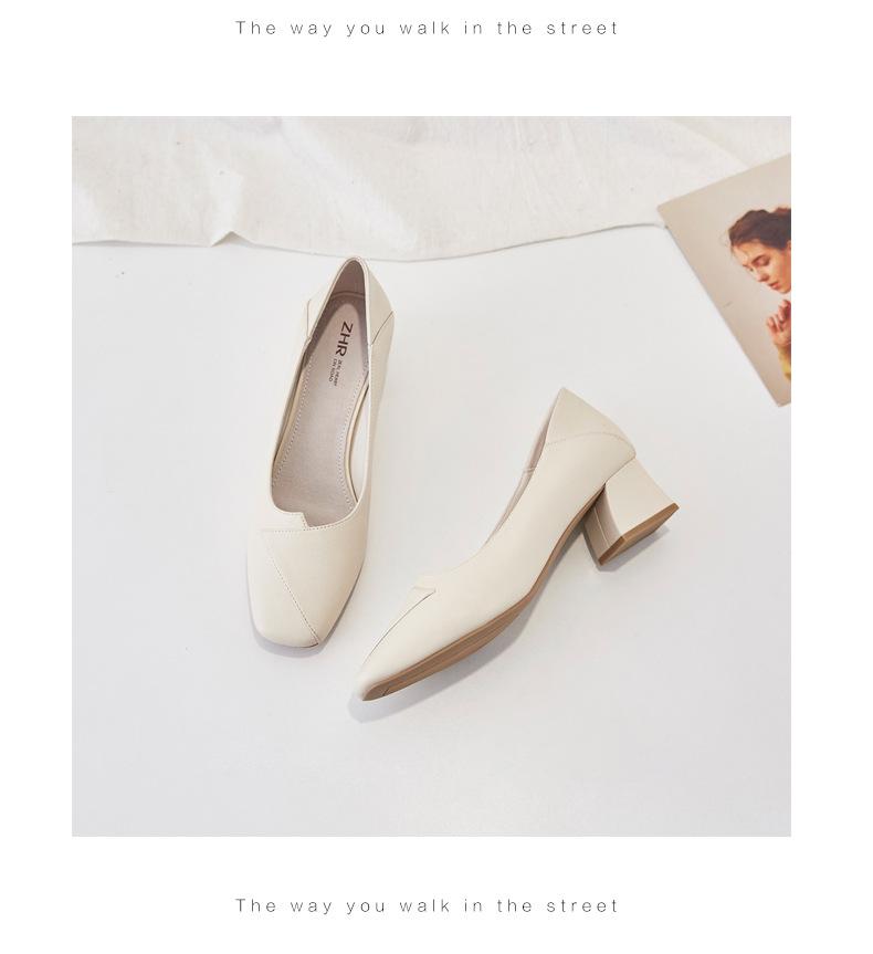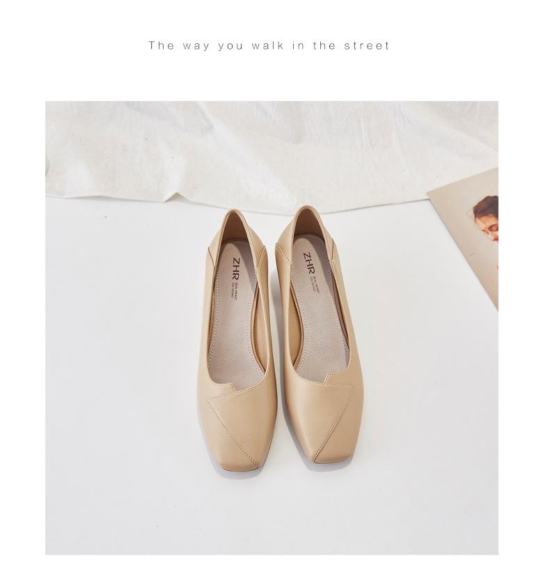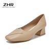Zapatos de mujer ZHR, primavera 2023, nuevos zapatos Mary Jane transpirables de tacón grueso, boca baja, tacón medio, punta cuadrada, sin cordones
