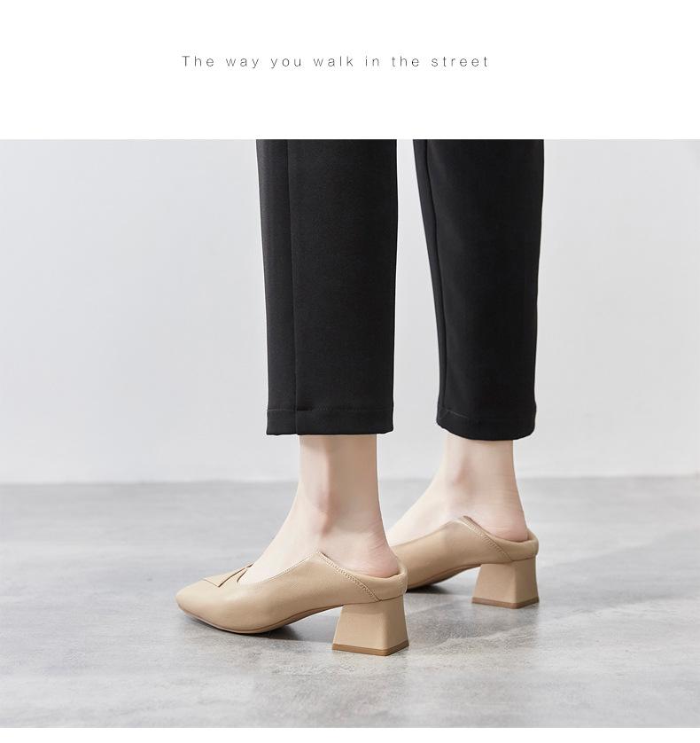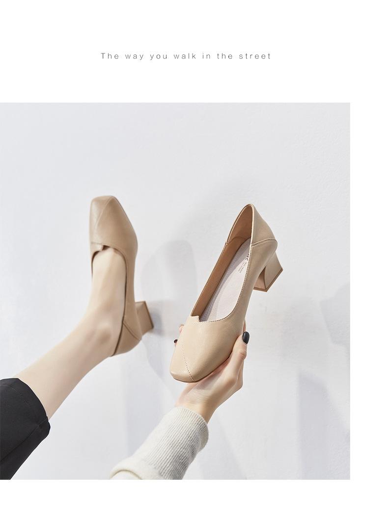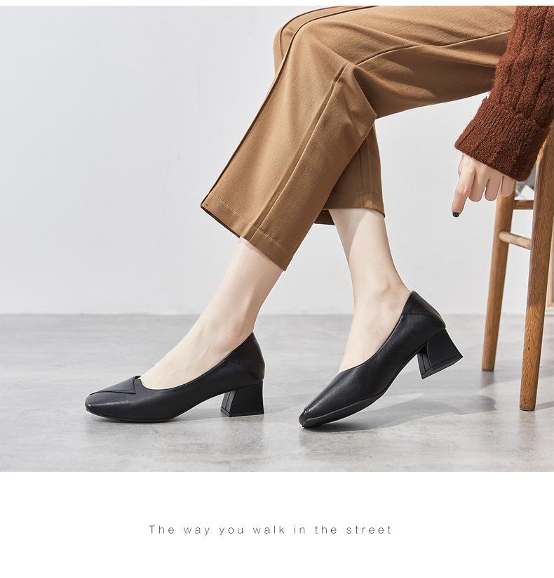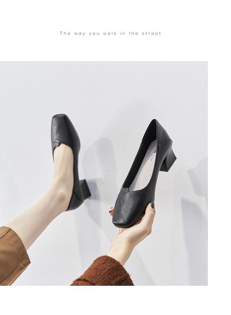 Zapatos de mujer ZHR, primavera 2023, nuevos zapatos Mary Jane transpirables de tacón grueso, boca baja, tacón medio, punta cuadrada, sin cordones