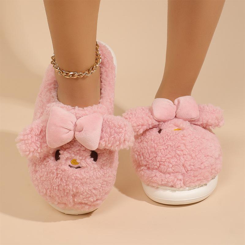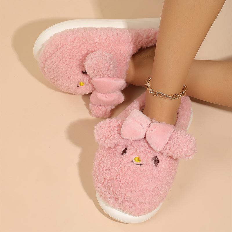 Pantuflas de algodón suaves y lindas de conejito para dormitorio de niñas de invierno, antideslizantes para el hogar, zapatos peludos cálidos, zapatos de confinamiento