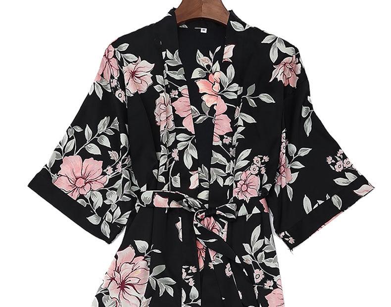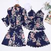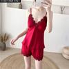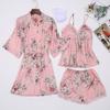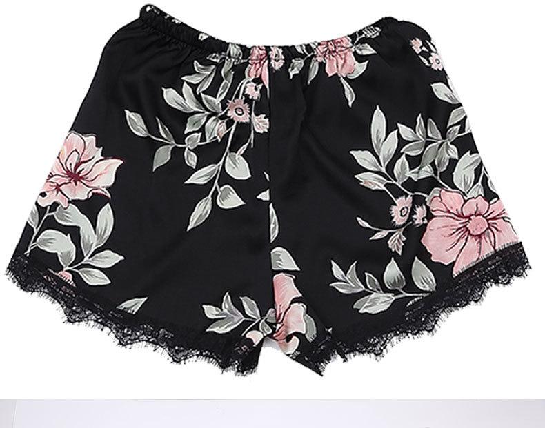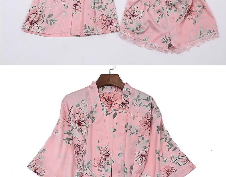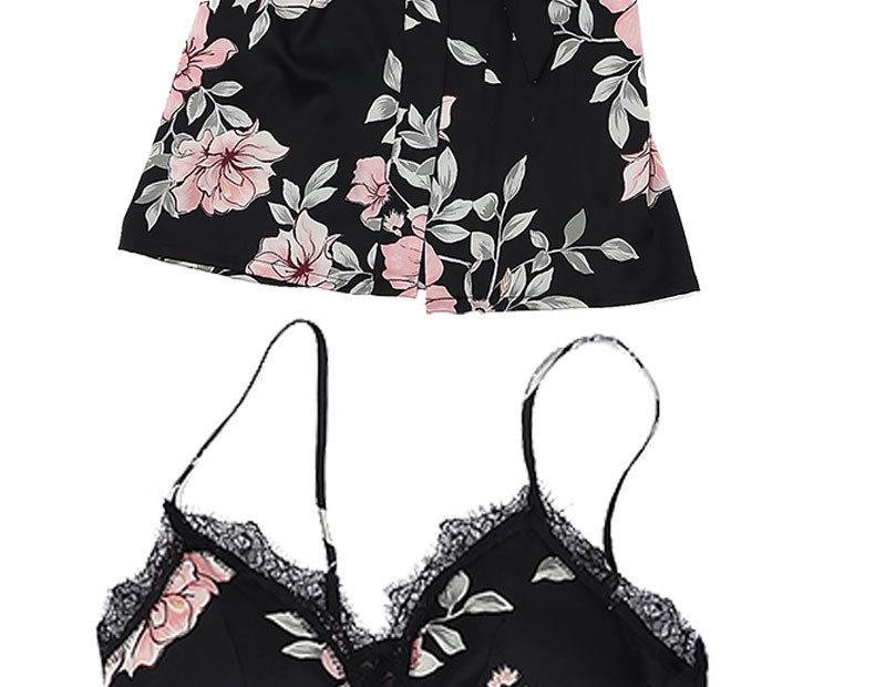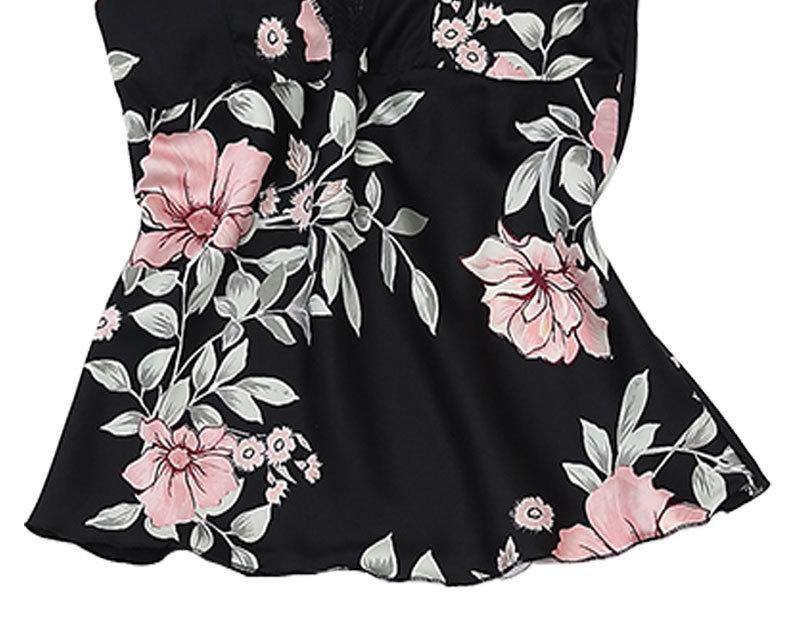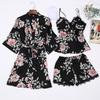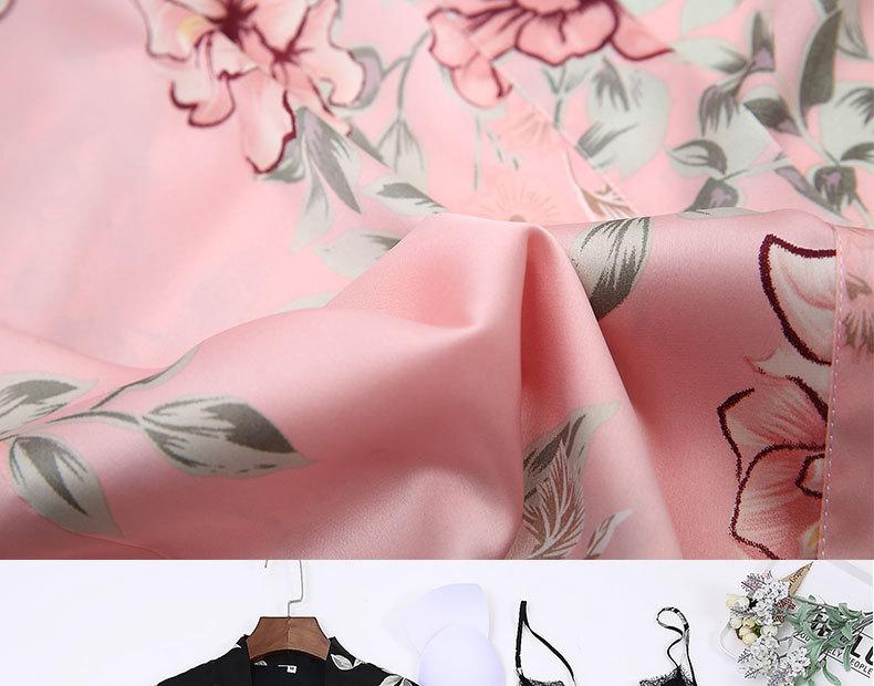 Pijama Nuevo Floral Tipo Seda para Mujer Sexy Encaje Cinturón Almohadilla Pecho Top Sling Pantalones Conjunto de Tres Piezas Venta al por Mayor