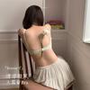 Ropa interior francesa sexy de copa triangular sin aro de acero, sujetador de copa fina y pequeña con pecho grande, conjunto de sujetador con espalda hueca y hermoso |