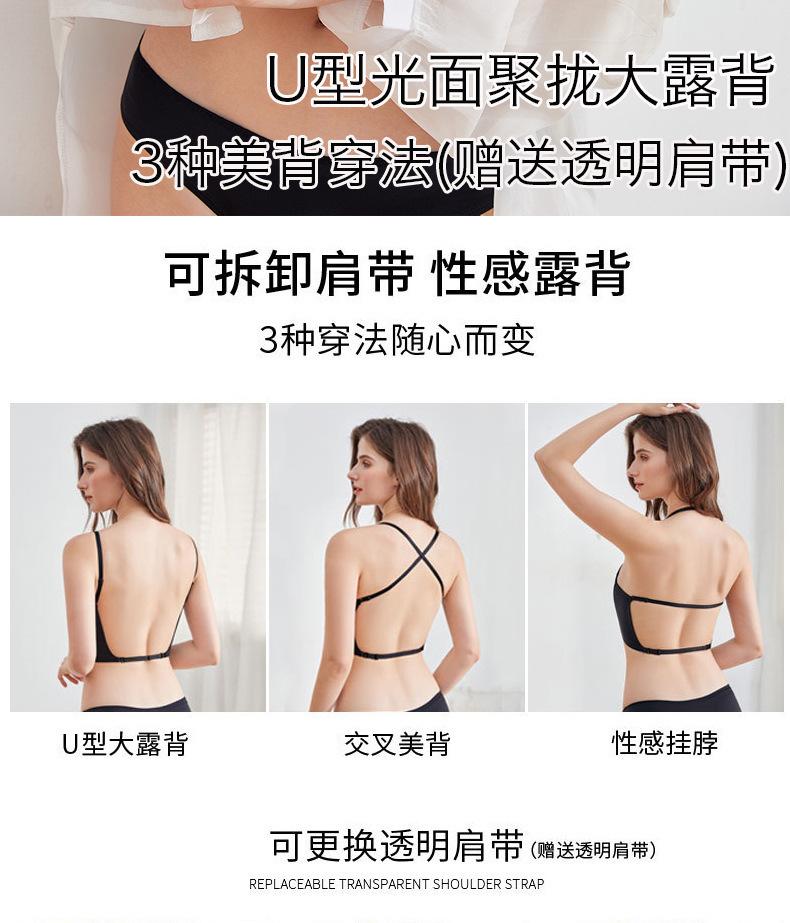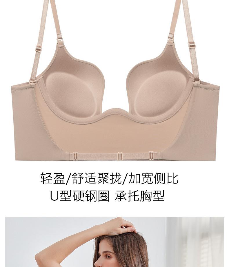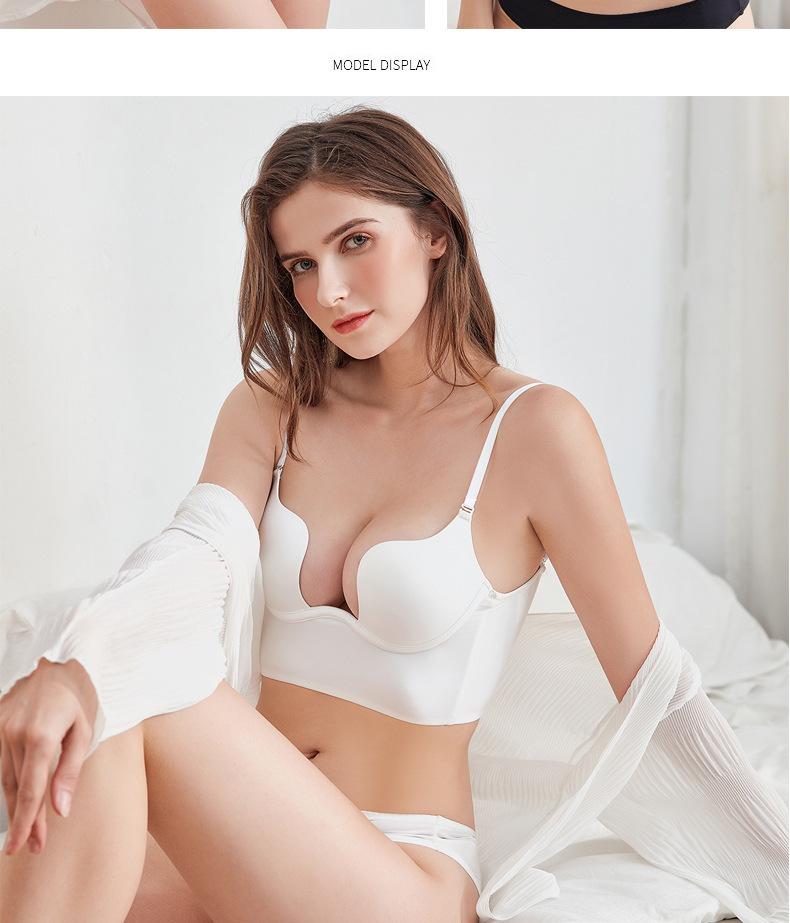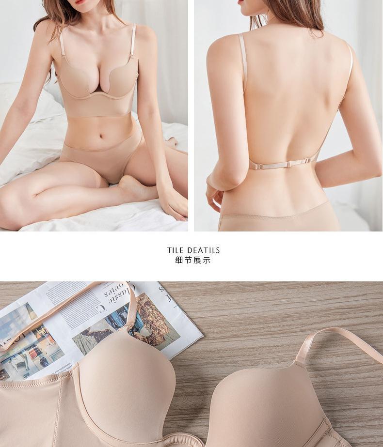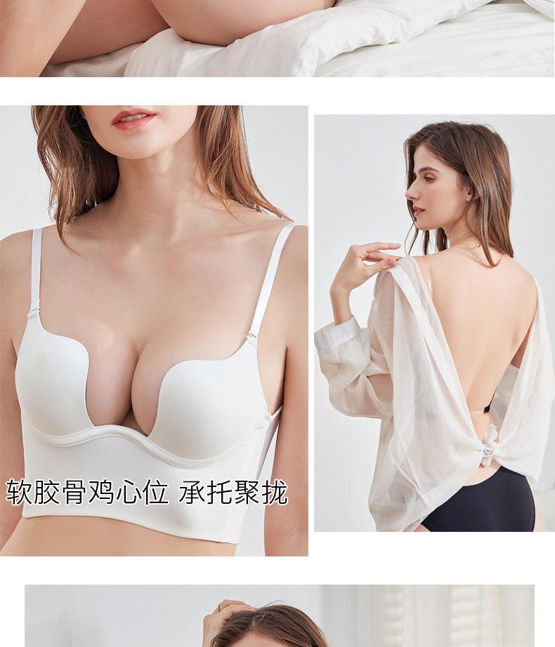 Nueva ropa interior con forma de U, grande, sin espalda, hermosa espalda, suave, sin costuras, sexy, con pechos grandes que muestran los pechos pequeños en los lados. |