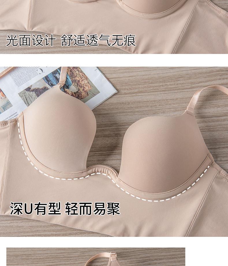 Nuevo conjunto de sujetador con forma de U, sin costuras y espalda hermosa, sexy, suave y fruncido, antiflacidez para realzar los senos |