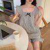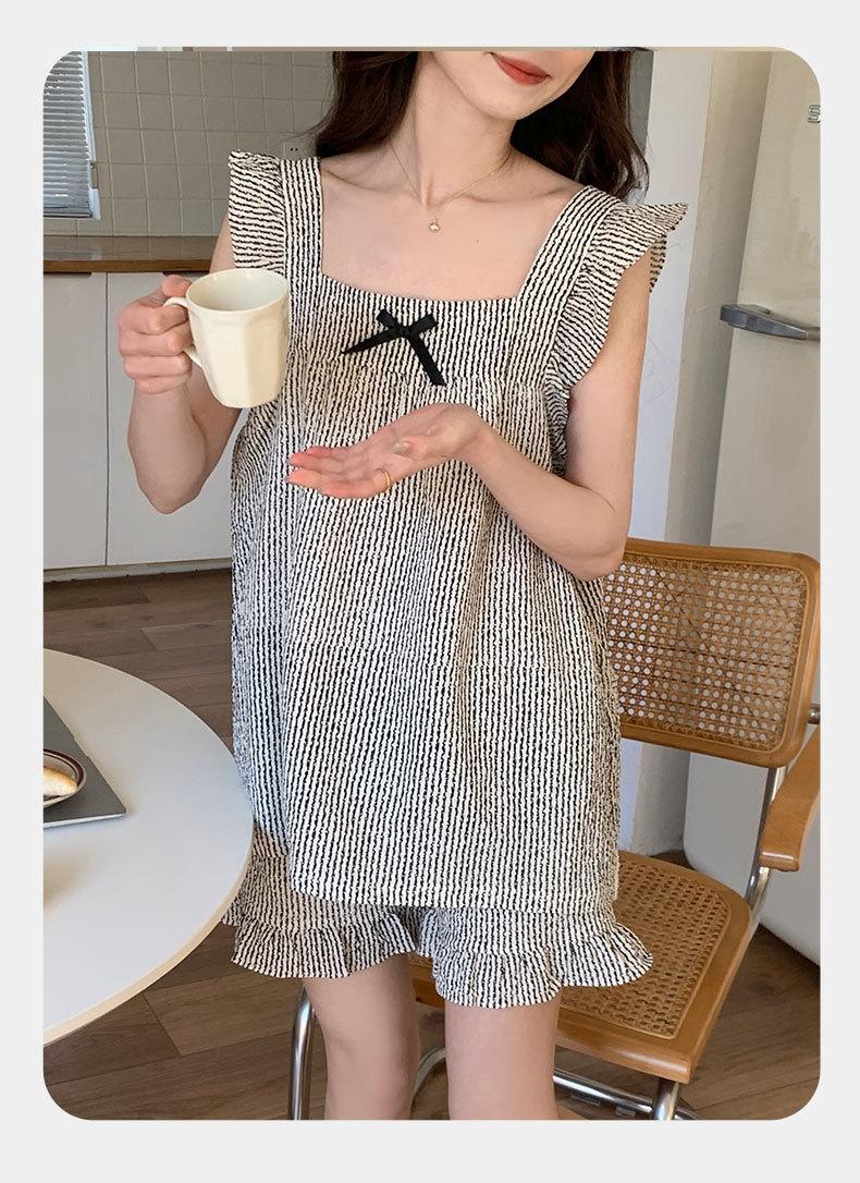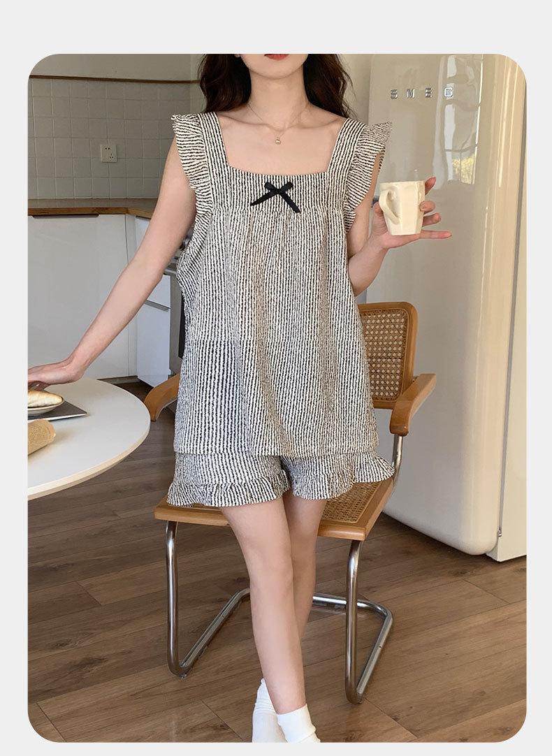 Pijama para mujer con almohadilla en el pecho Verano 2024 nuevo traje de ropa para el hogar con volantes de manga corta, dulce y lindo, celebridad de Internet