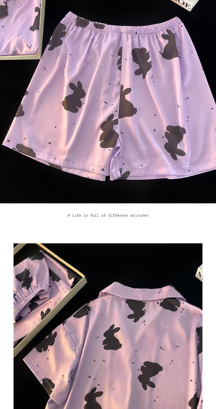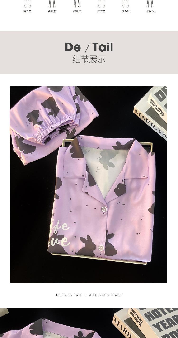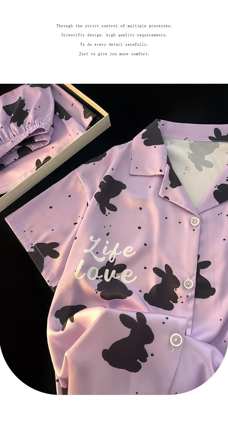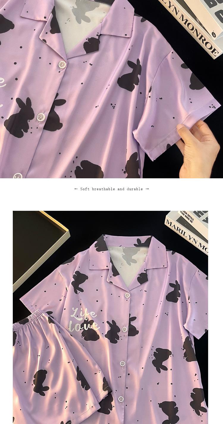 Pijamas morados informales con estampado de conejo de dibujos animados para niñas, bonitos pijamas de manga corta para mujer, ropa de verano nueva para el hogar, venta al por mayor.