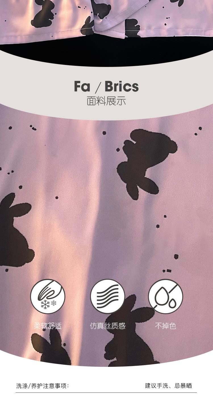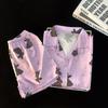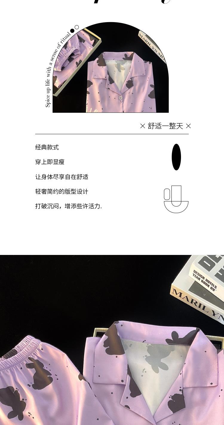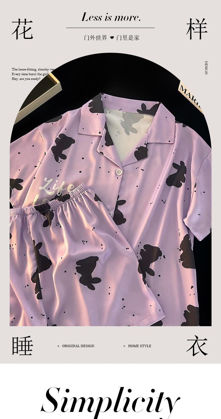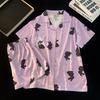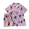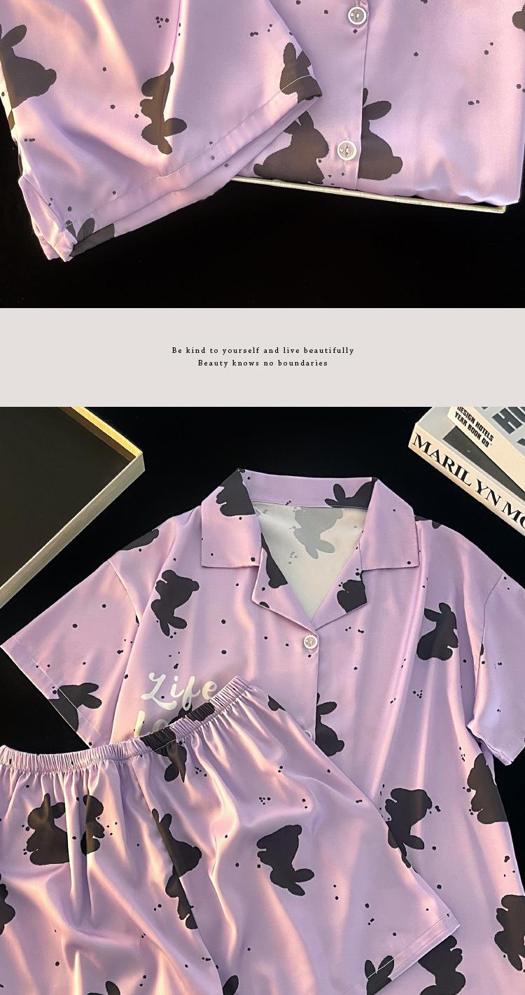Pijamas morados informales con estampado de conejo de dibujos animados para niñas, bonitos pijamas de manga corta para mujer, ropa de verano nueva para el hogar, venta al por mayor.