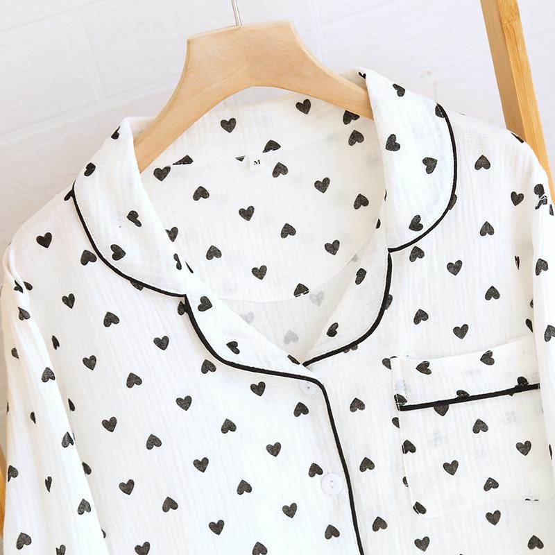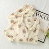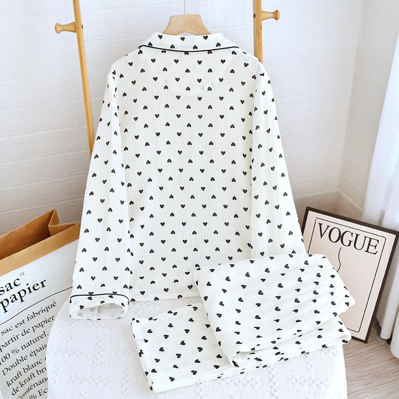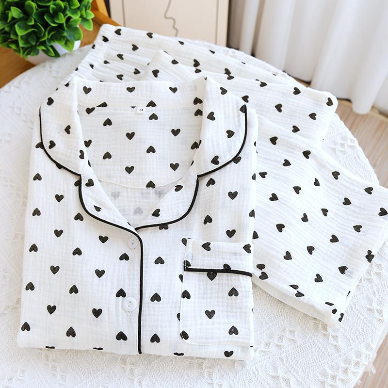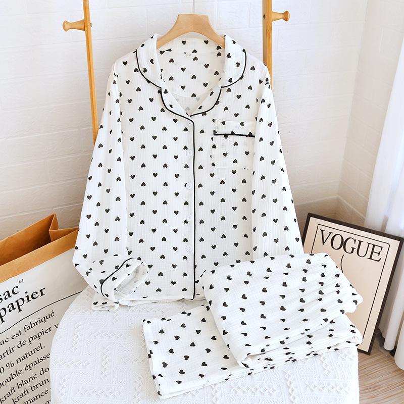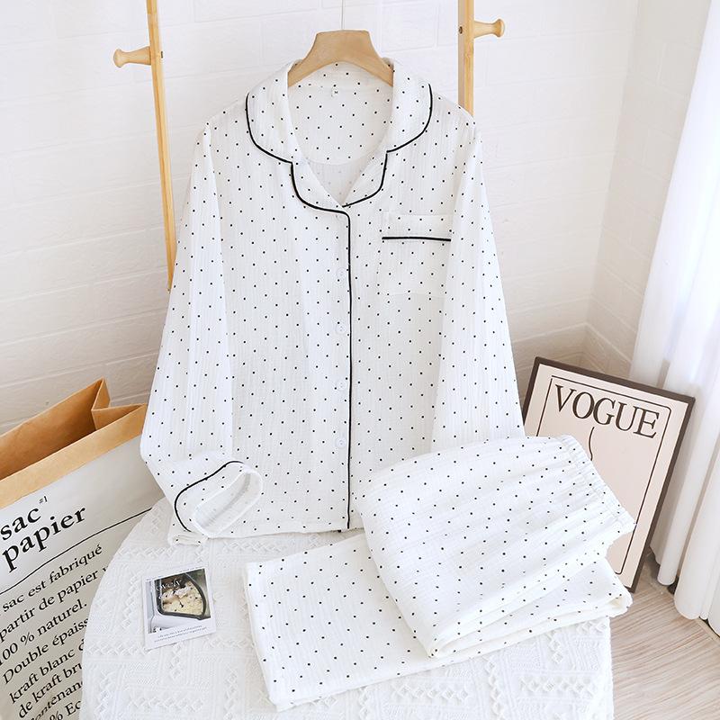 Pijamas de crepé de algodón de primavera y verano para mujer, finos, de manga larga, de dos piezas, estilo coreano, de gasa de doble capa, para el hogar, para las cuatro estaciones