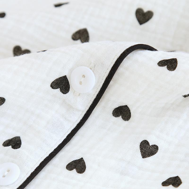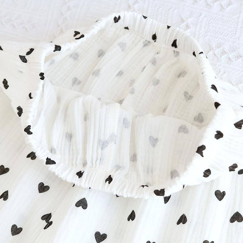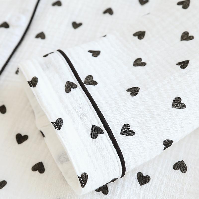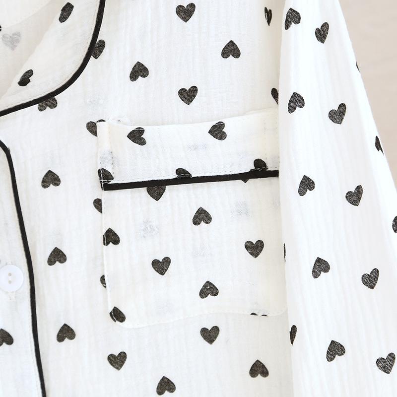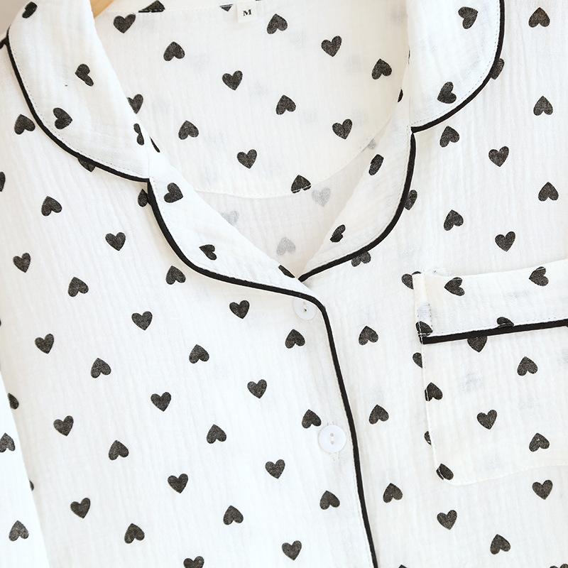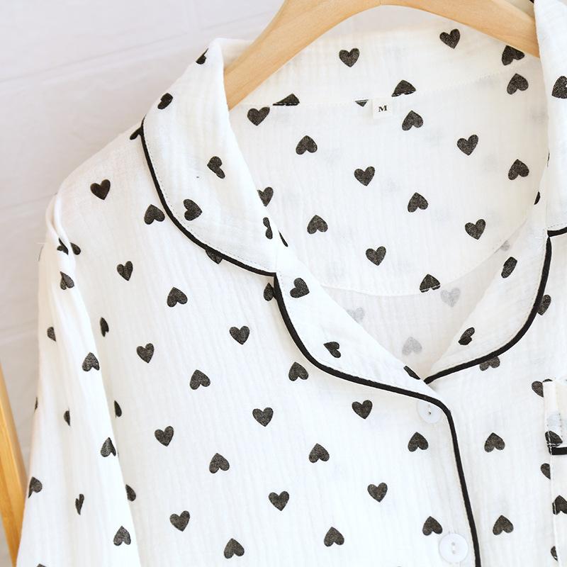 Pijamas de crepé de algodón de primavera y verano para mujer, finos, de manga larga, de dos piezas, estilo coreano, de gasa de doble capa, para el hogar, para las cuatro estaciones