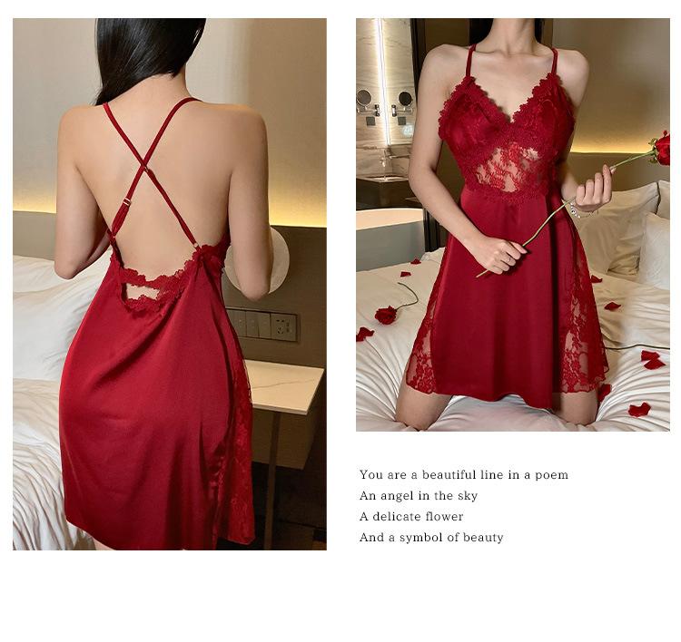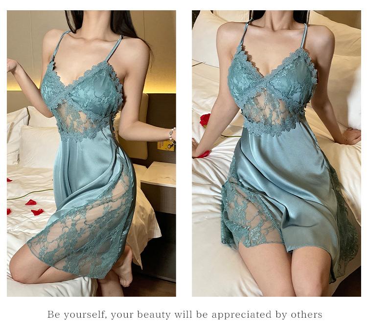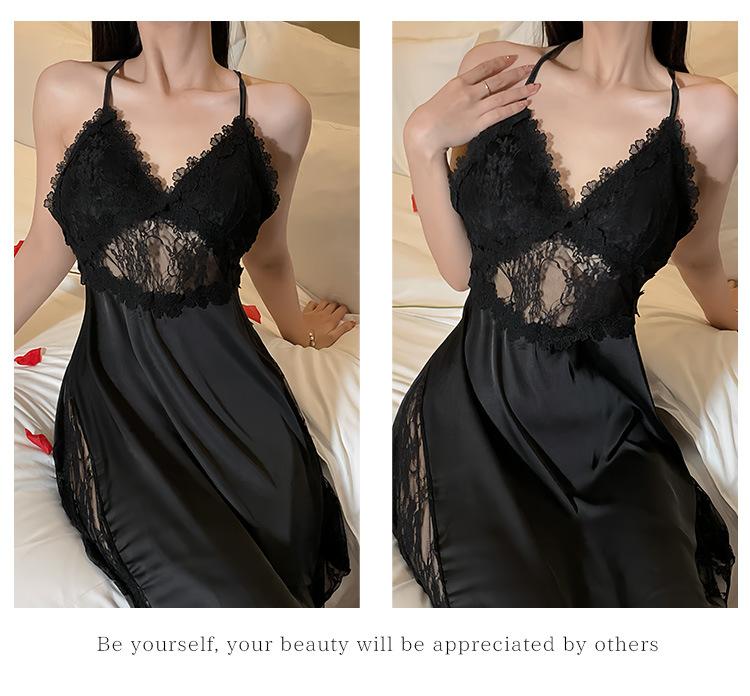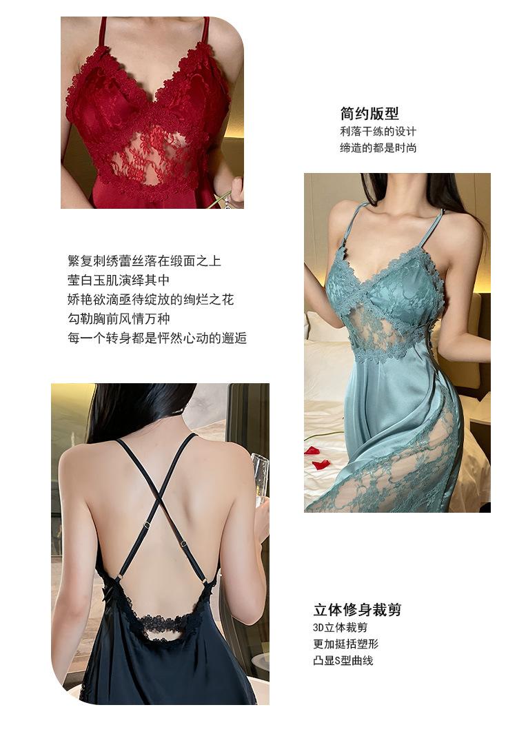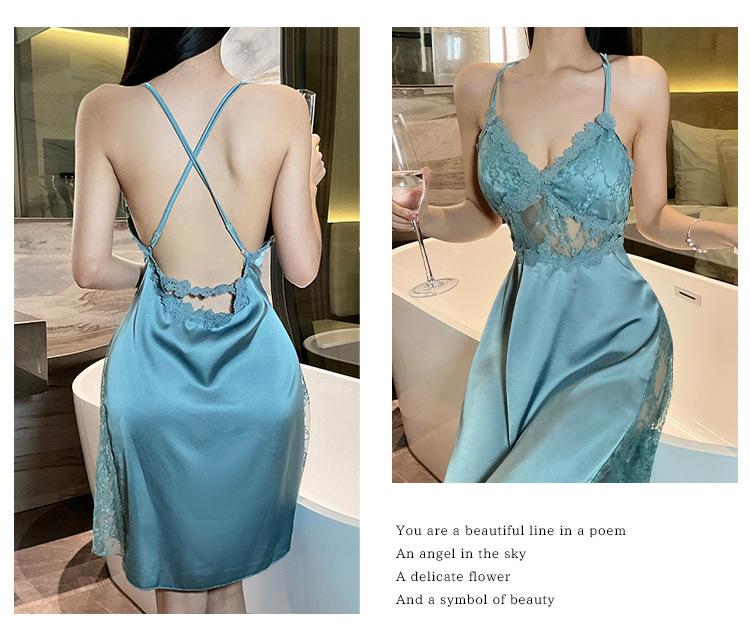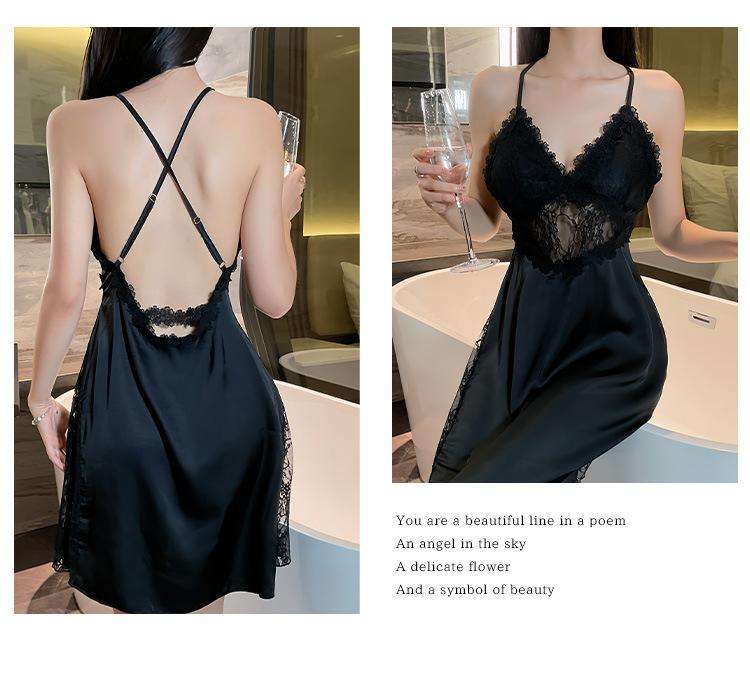 Hermoso camisón sexy de encaje para mujer, nuevo, de satén, con escote en V profundo y espalda descubierta, de lujo.