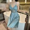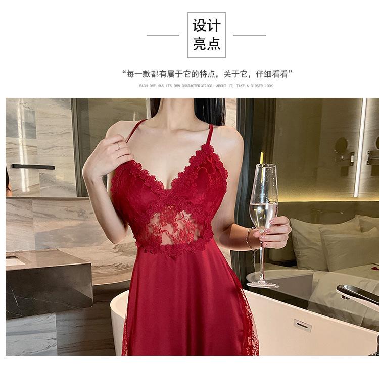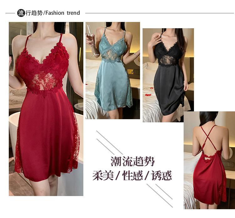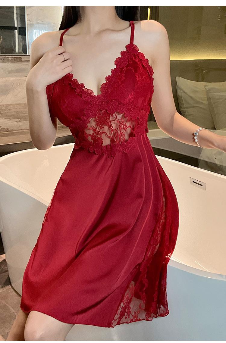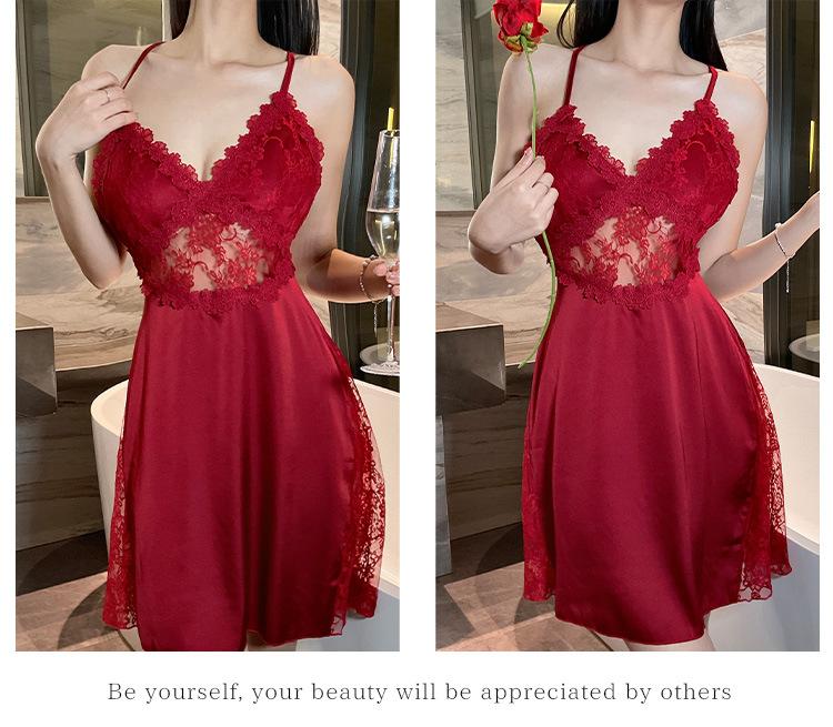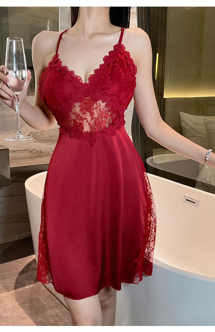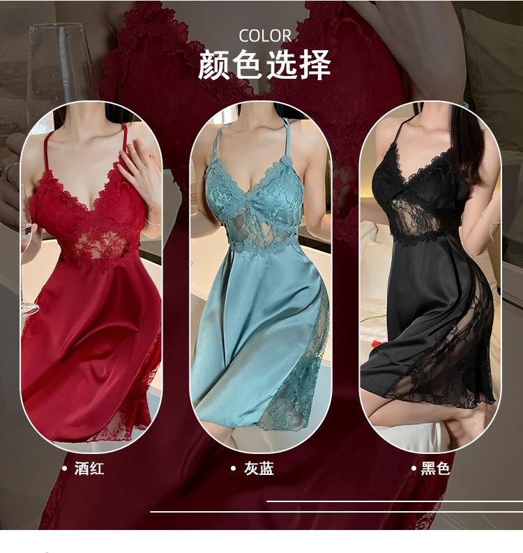 Hermoso camisón sexy de encaje para mujer, nuevo, de satén, con escote en V profundo y espalda descubierta, de lujo.