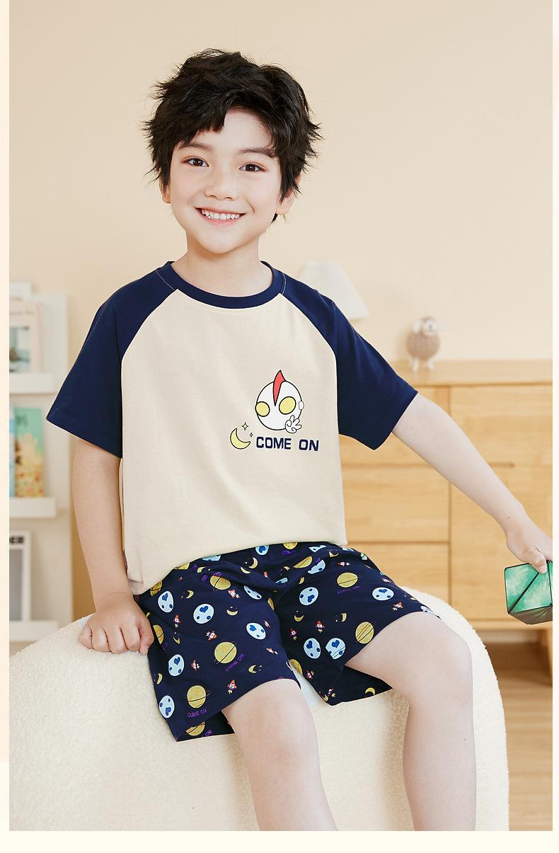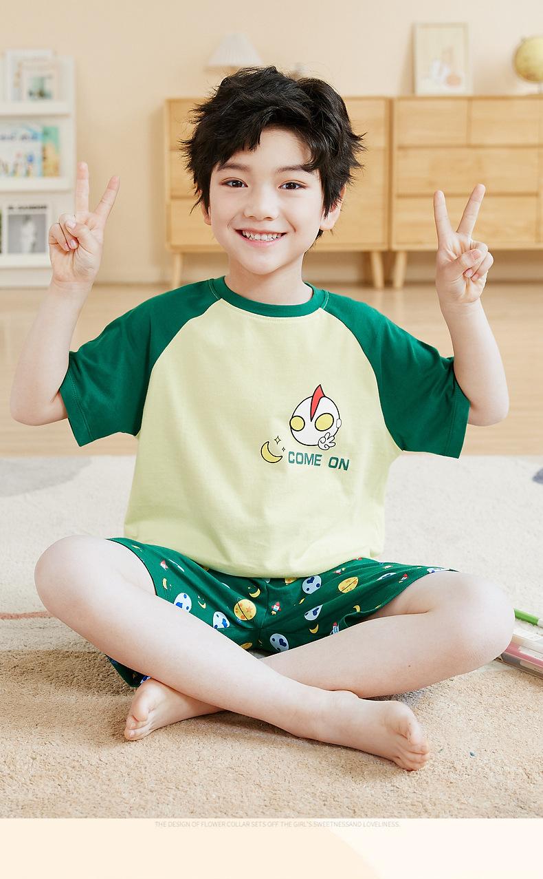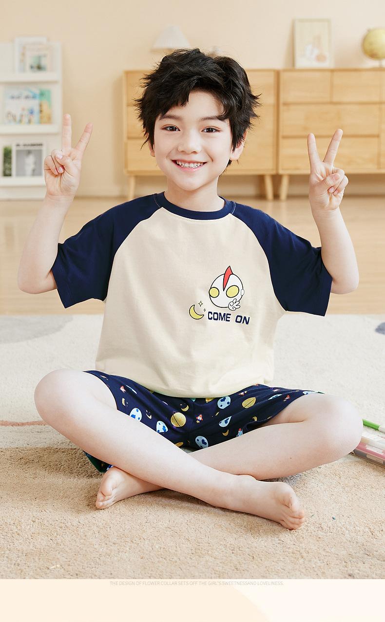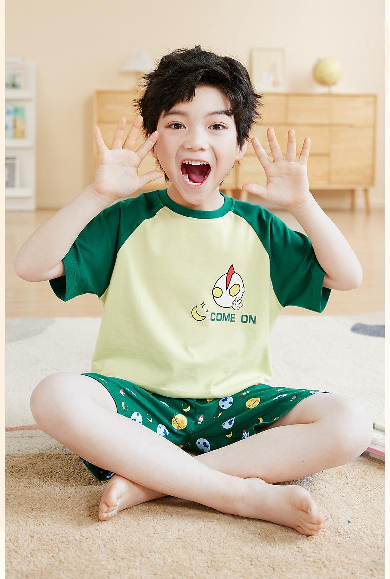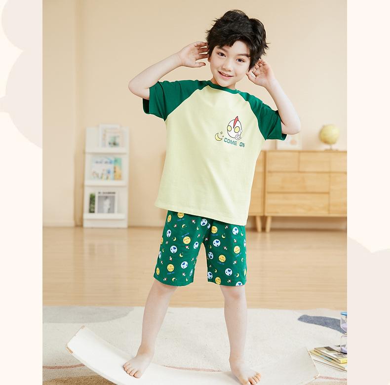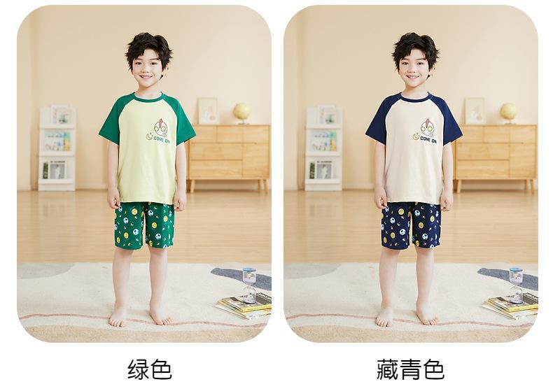 Pijamas de algodón puro para niños, finos, de verano, de manga corta, para hombre, de manga corta, para niños grandes, con aire acondicionado, ropa de hogar, conjunto de pijamas