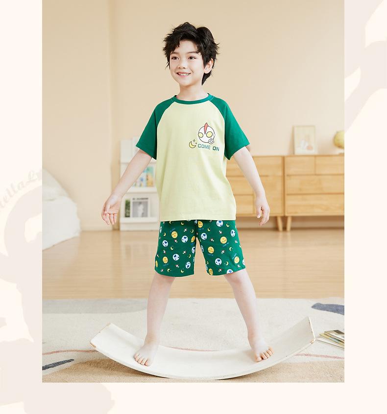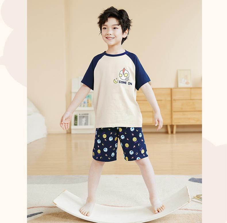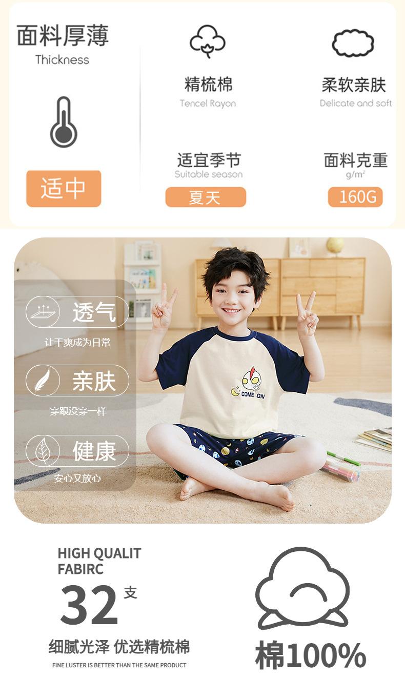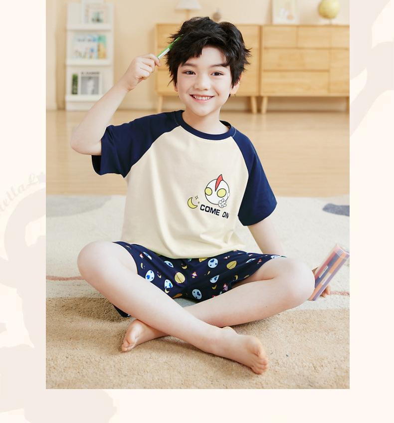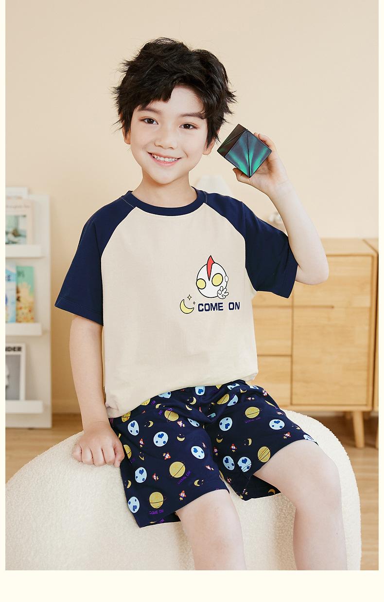 Pijamas de algodón puro para niños, finos, de verano, de manga corta, para hombre, de manga corta, para niños grandes, con aire acondicionado, ropa de hogar, conjunto de pijamas