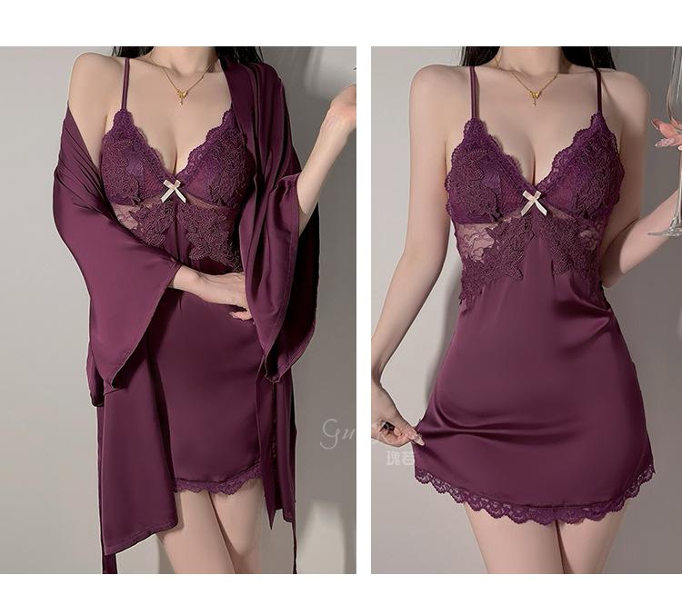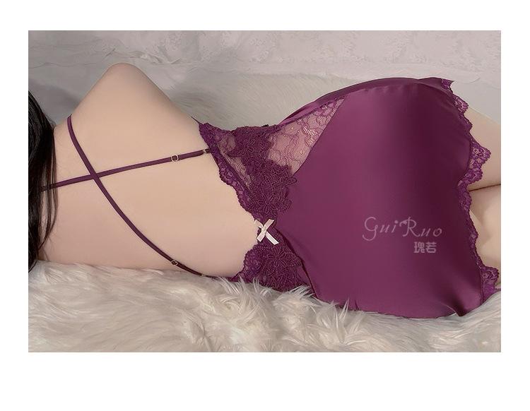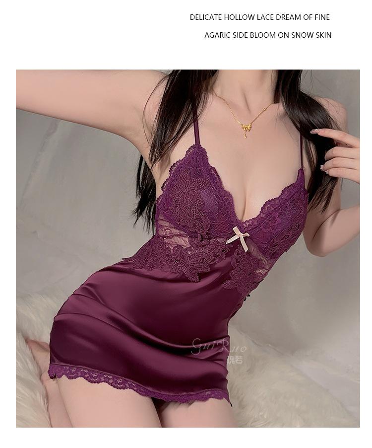 Dz Guiruo Sexy Encaje Escote en V Profundo con Almohadilla para el Busto Espalda Descubierta Satén Talla Grande Camisón con Tirantes Bata Exterior Traje para Casa 1170