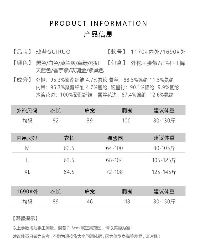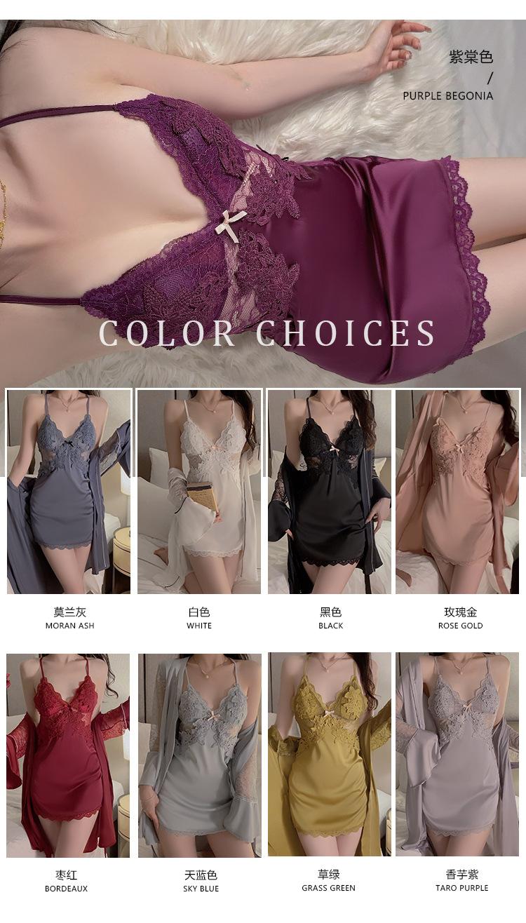 White (nightdress + t pants), White (Robe + Belt), Black (nightdress + t pants), Black (Robe + Belt), Moran Gr...
